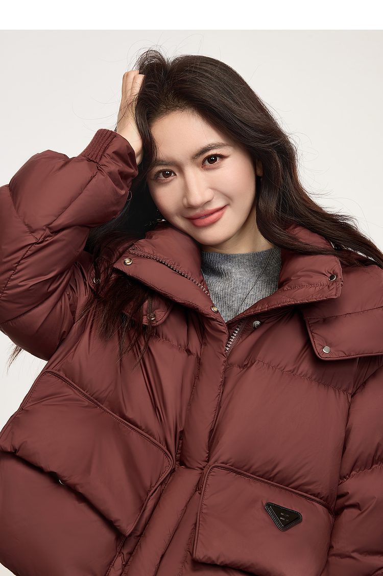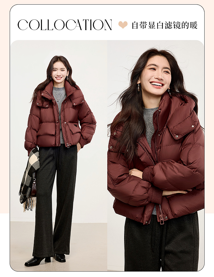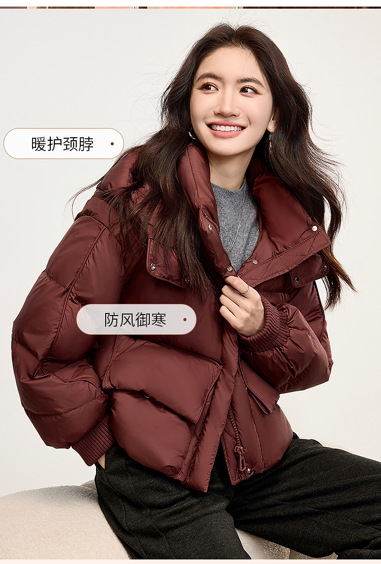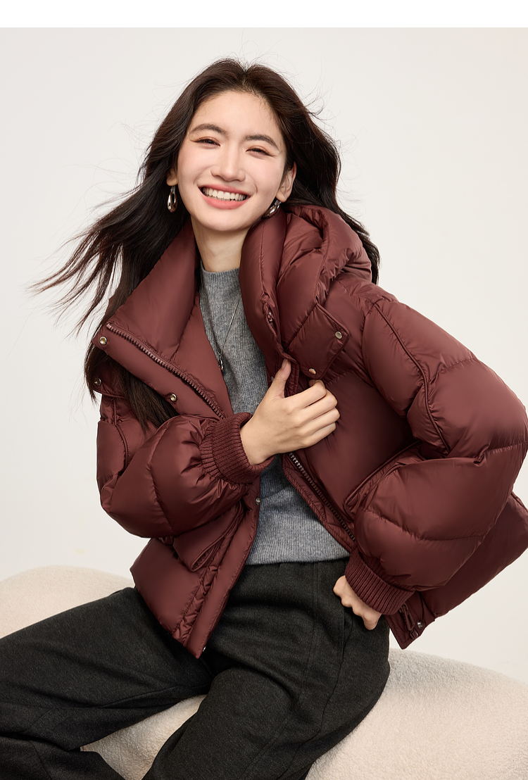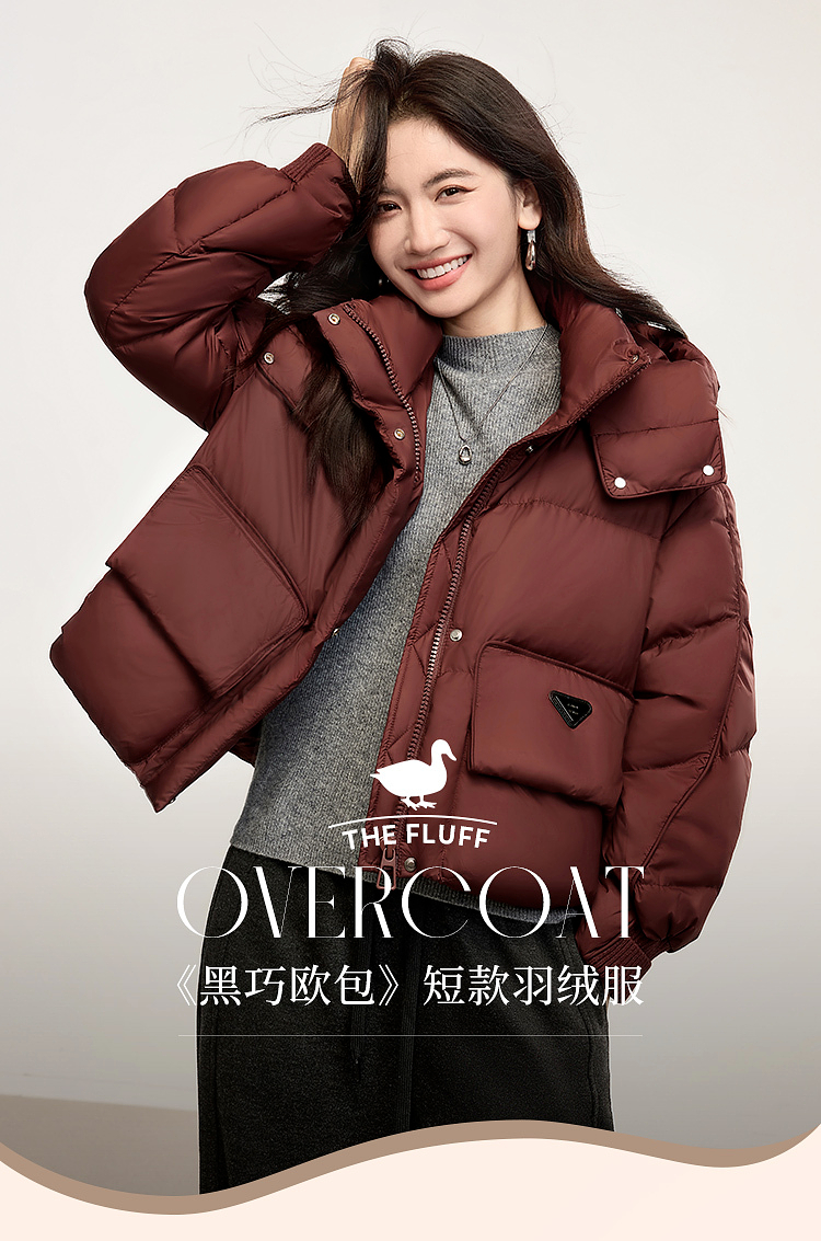 【年终特卖】熙世界短款羽绒服女冬季2025年新款小个子90白鸭绒外套连帽面包服