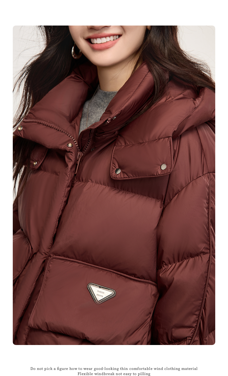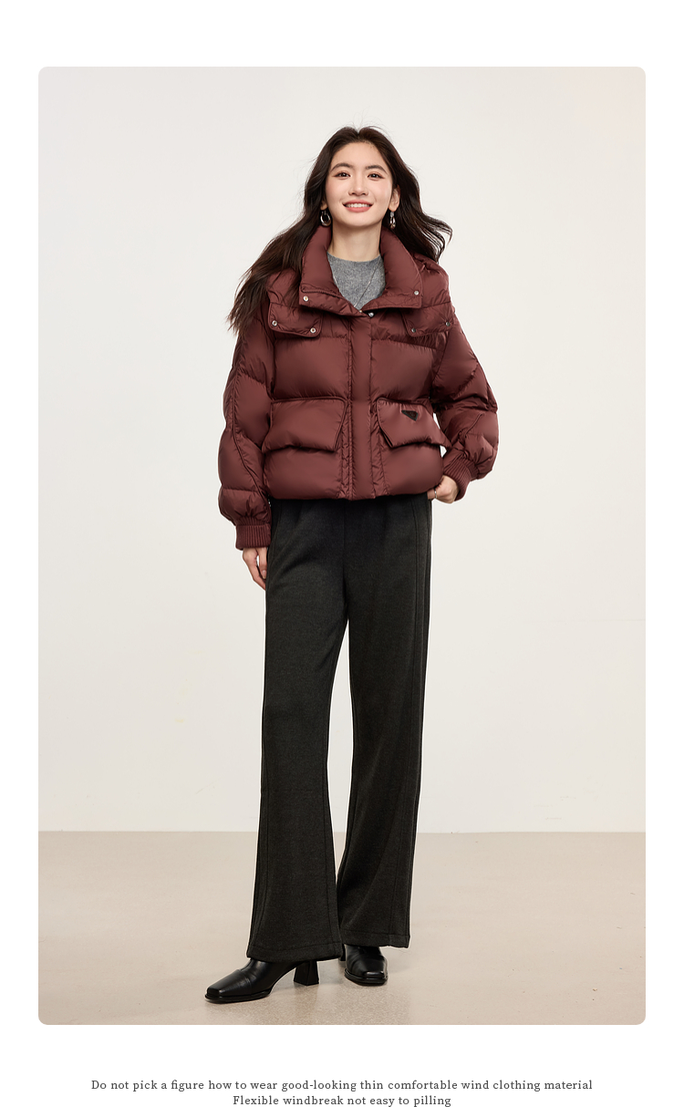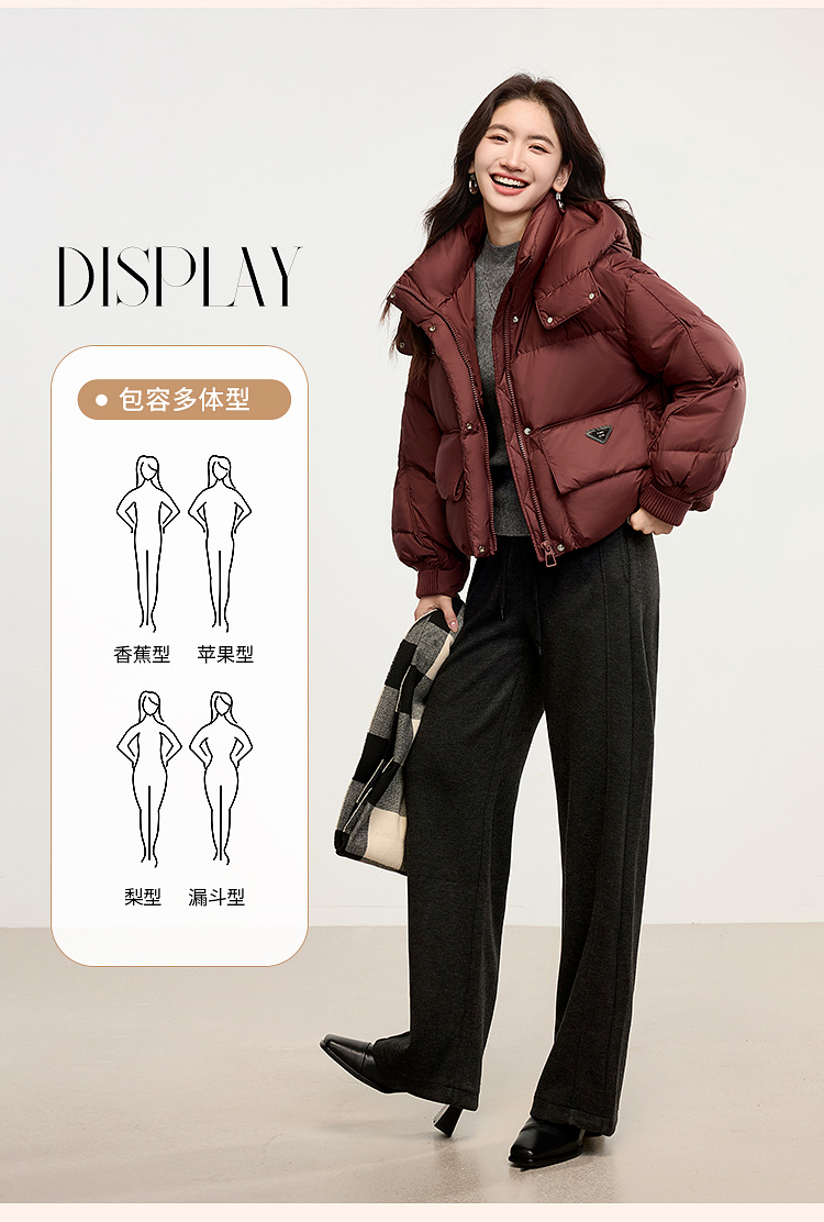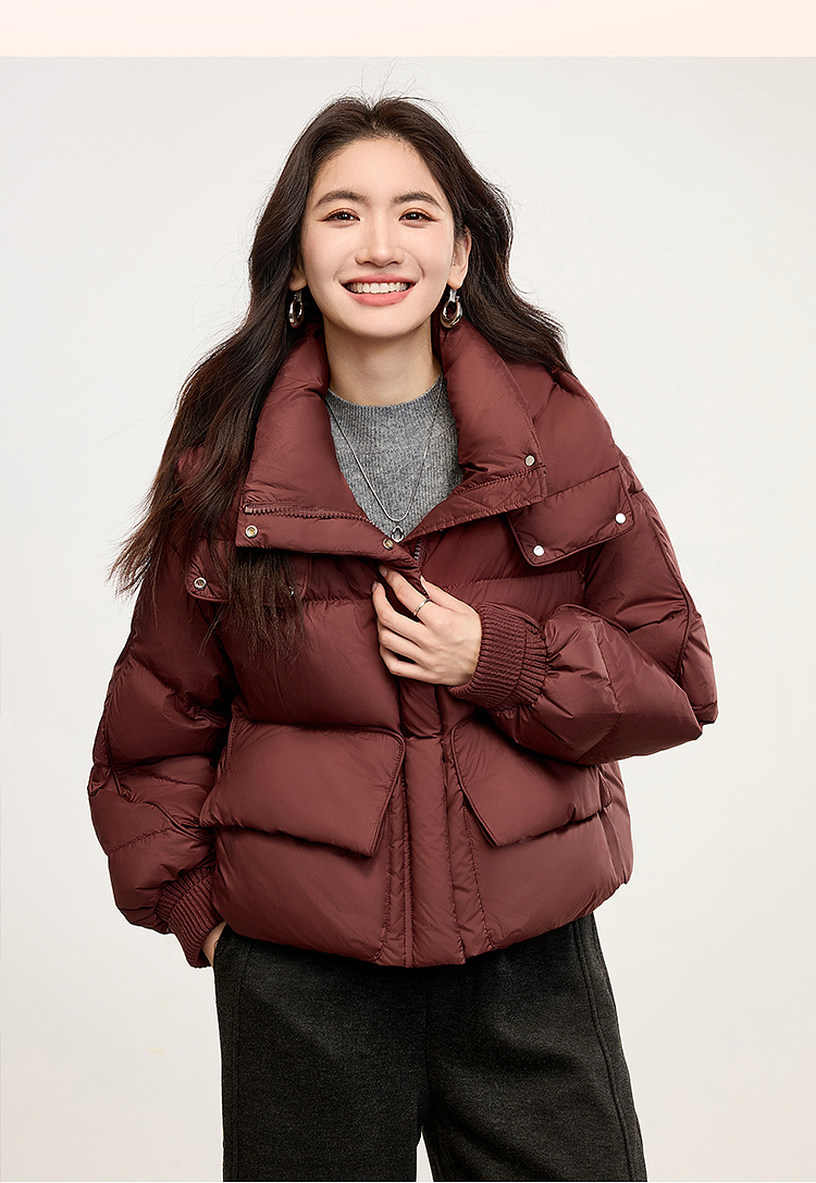 【年终特卖】熙世界短款羽绒服女冬季2025年新款小个子90白鸭绒外套连帽面包服