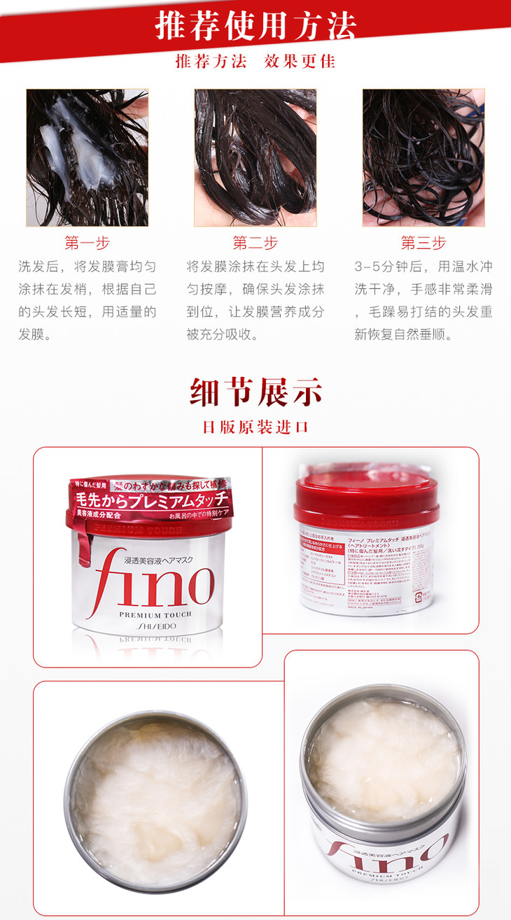 资生堂Fino发膜渗透修复干枯滋养受损发质护发素230g