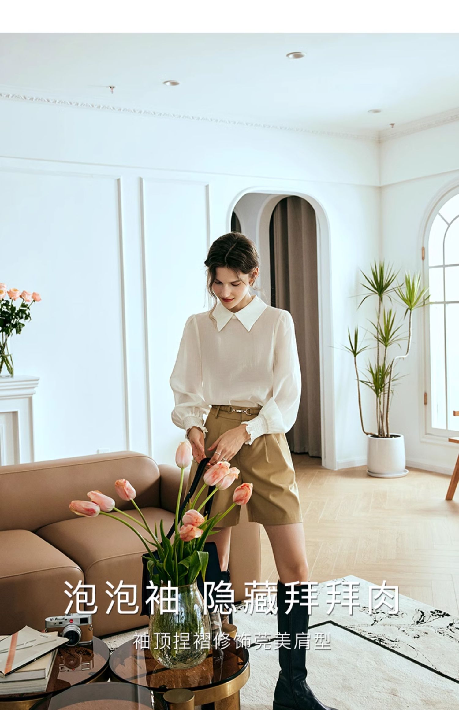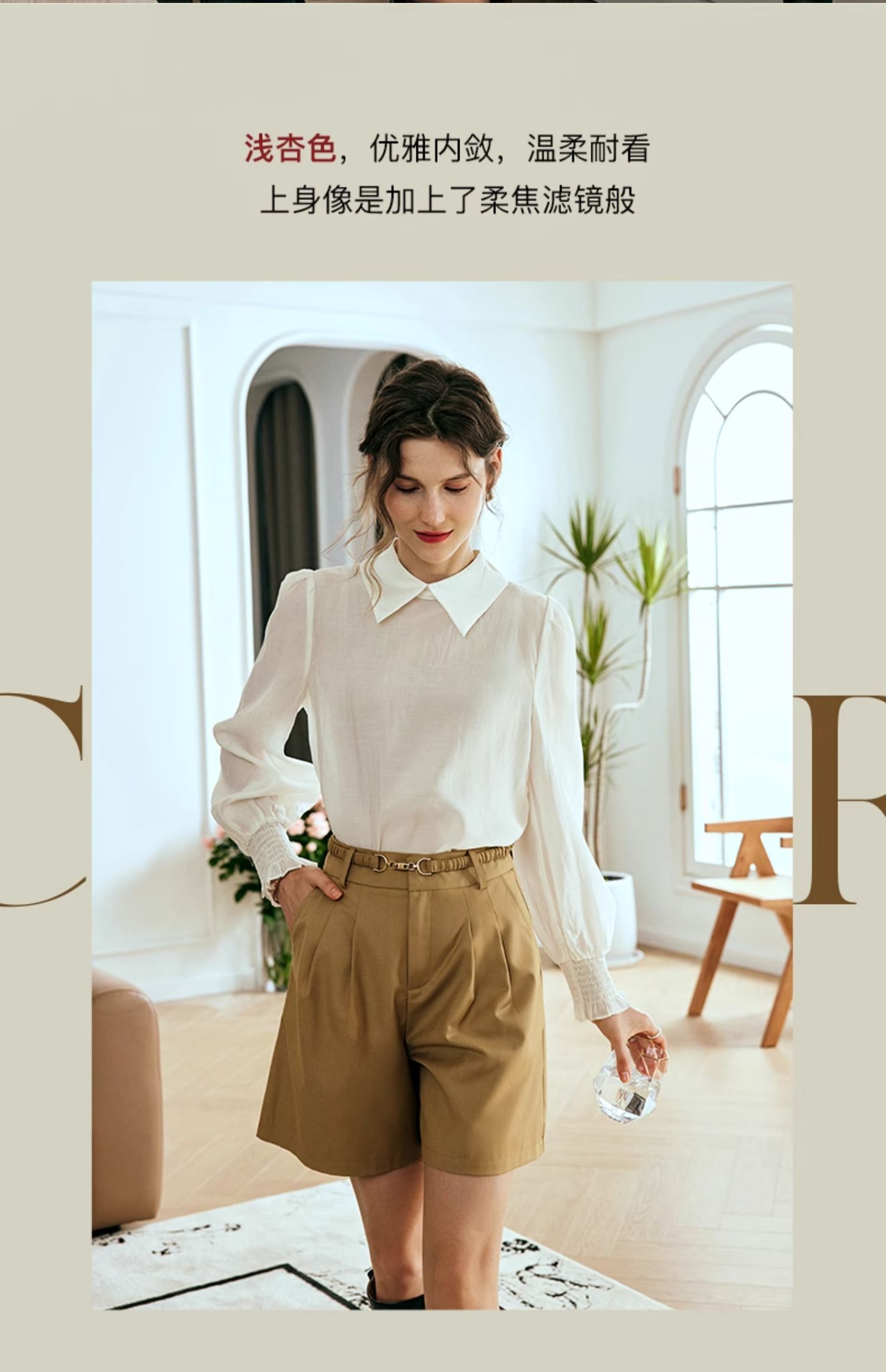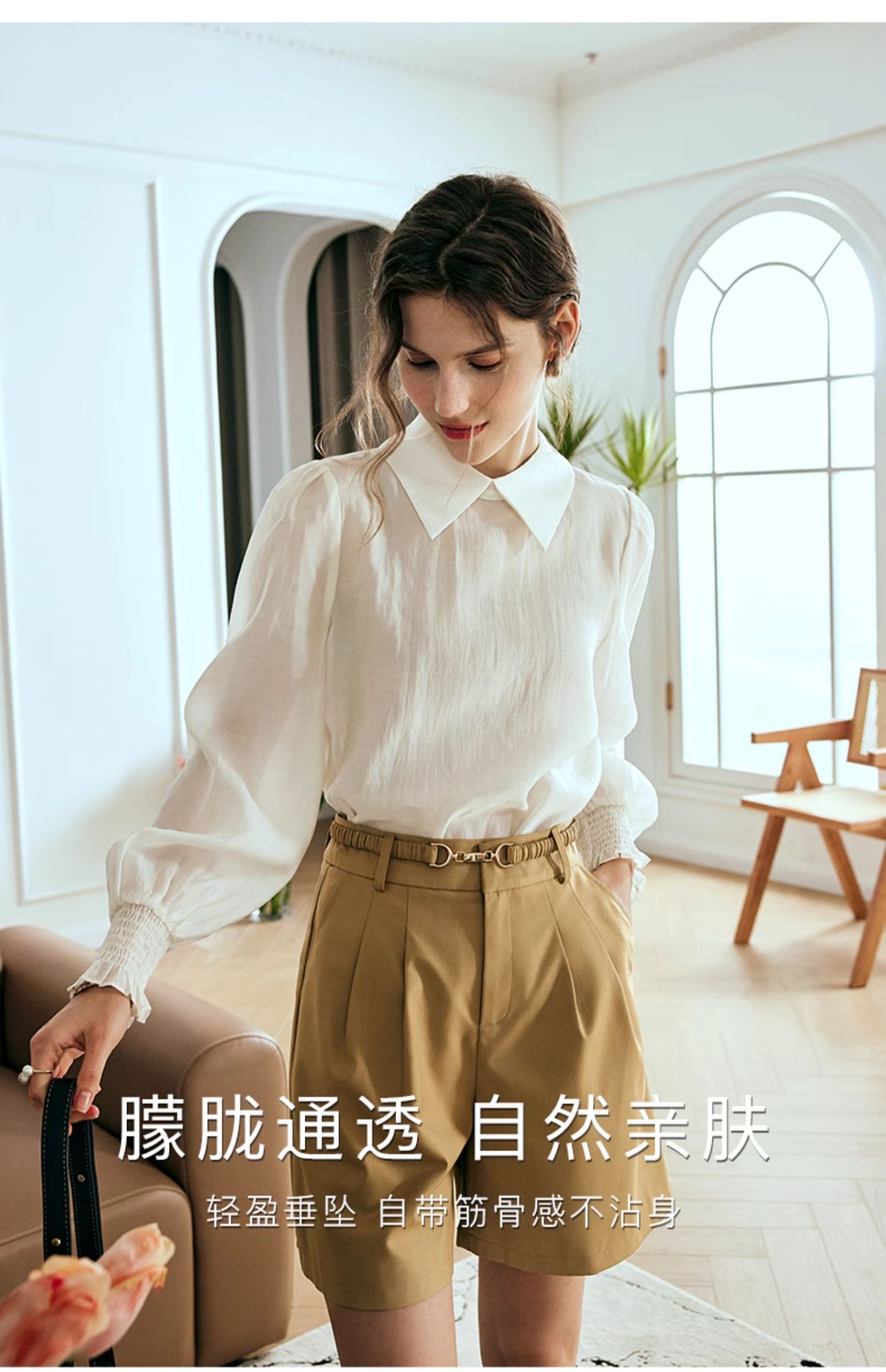 OLrain欧芮儿法式杏色雪纺衫女春季2024年新款时尚简约百搭衬衫