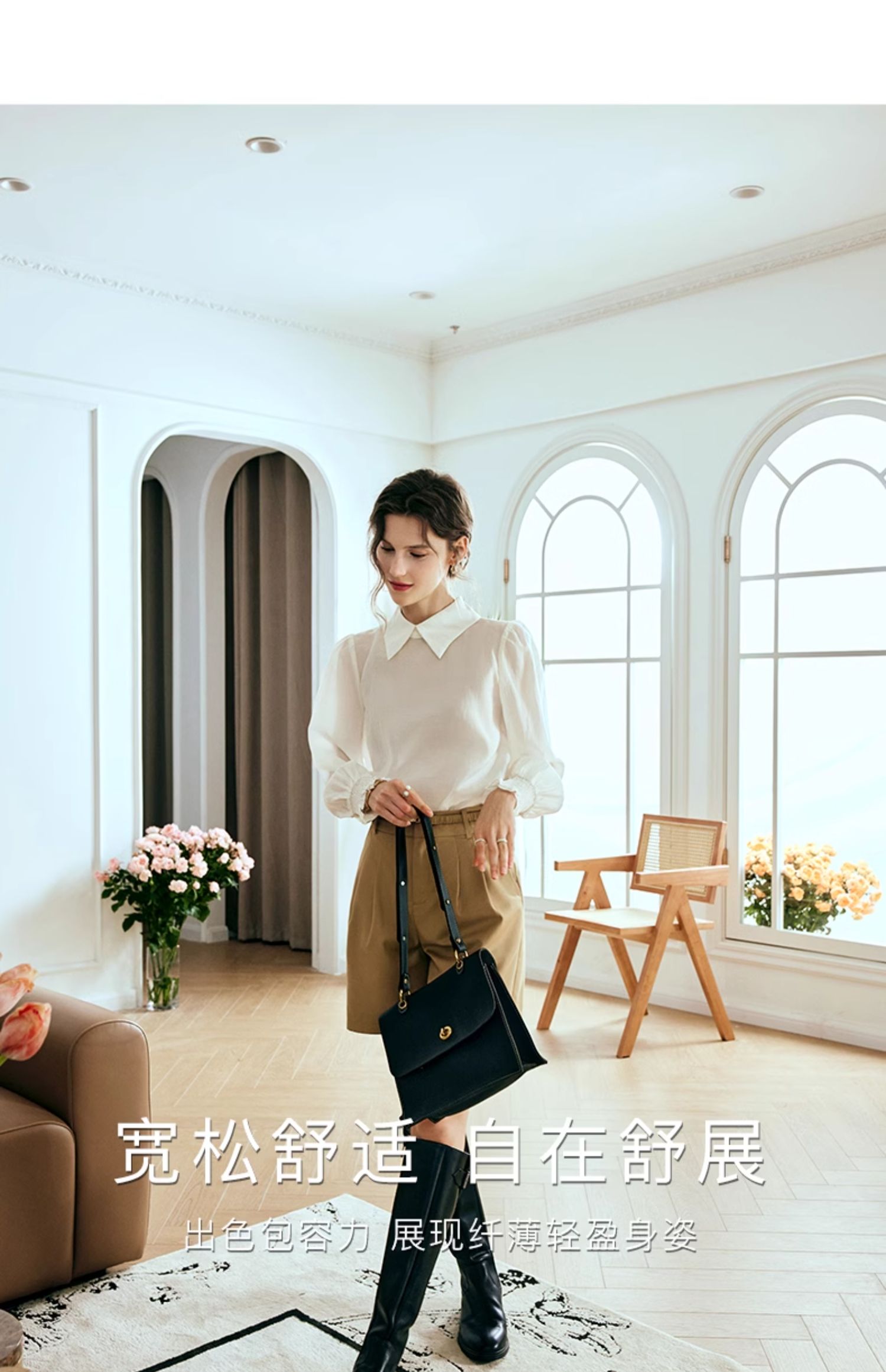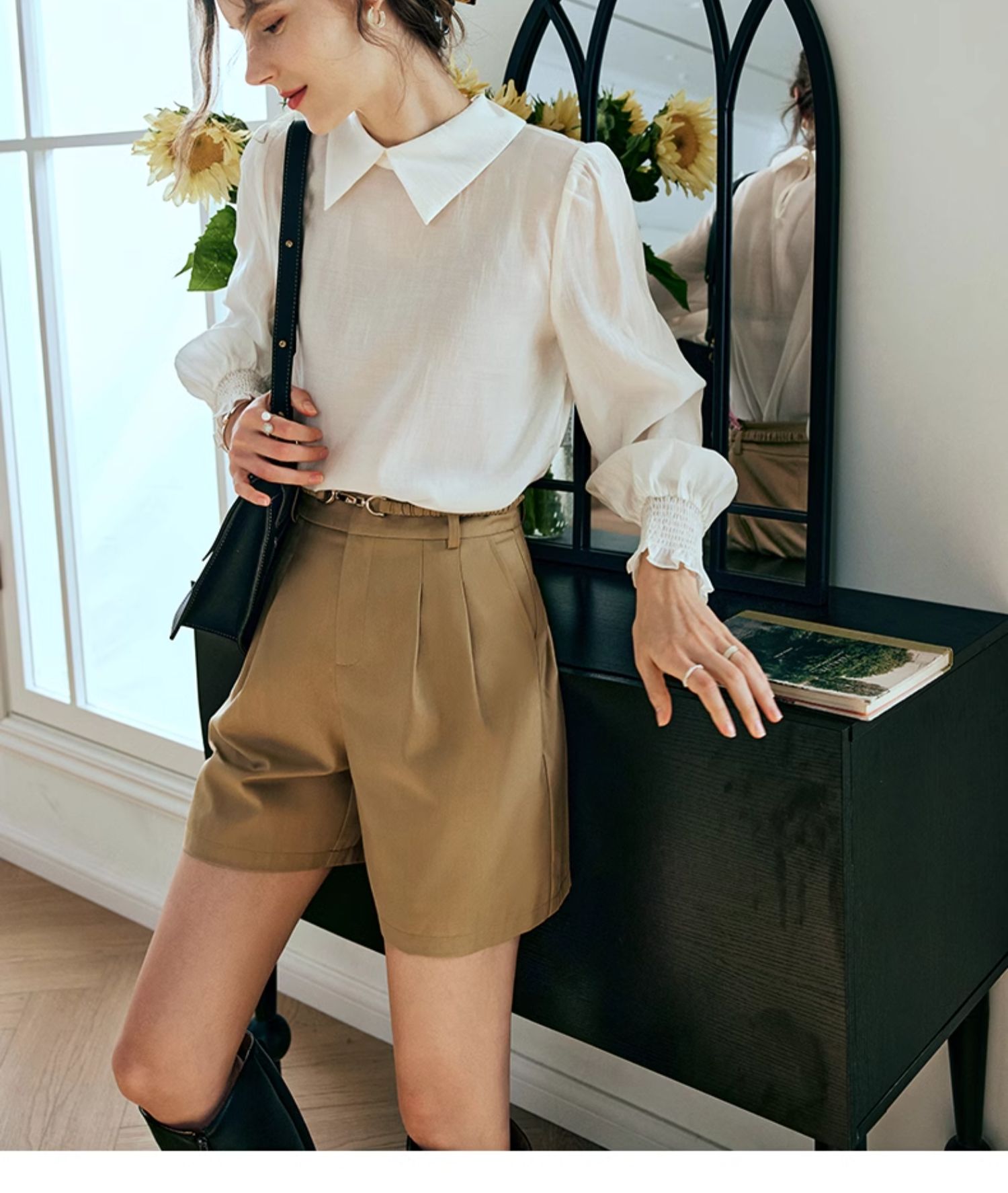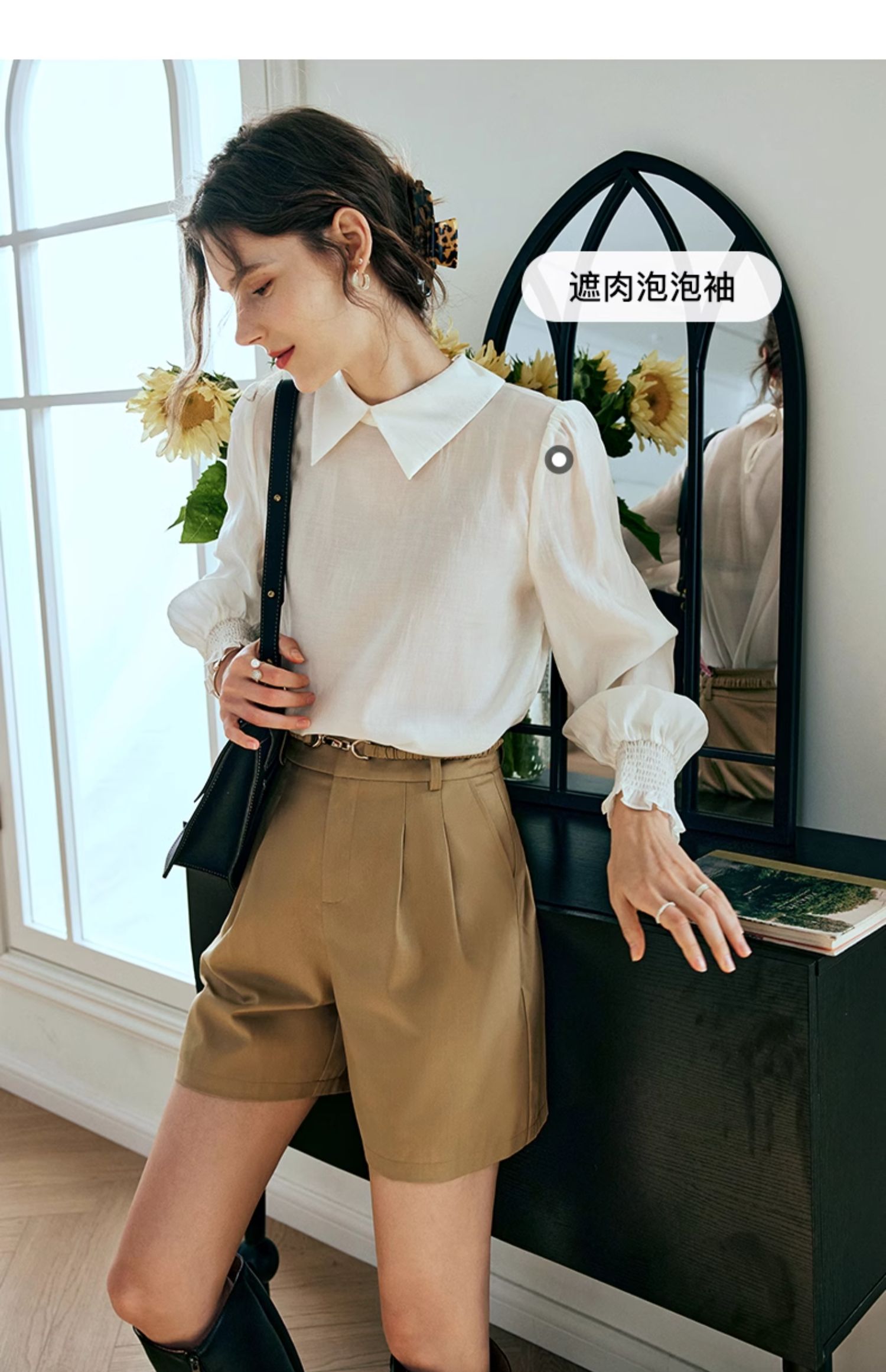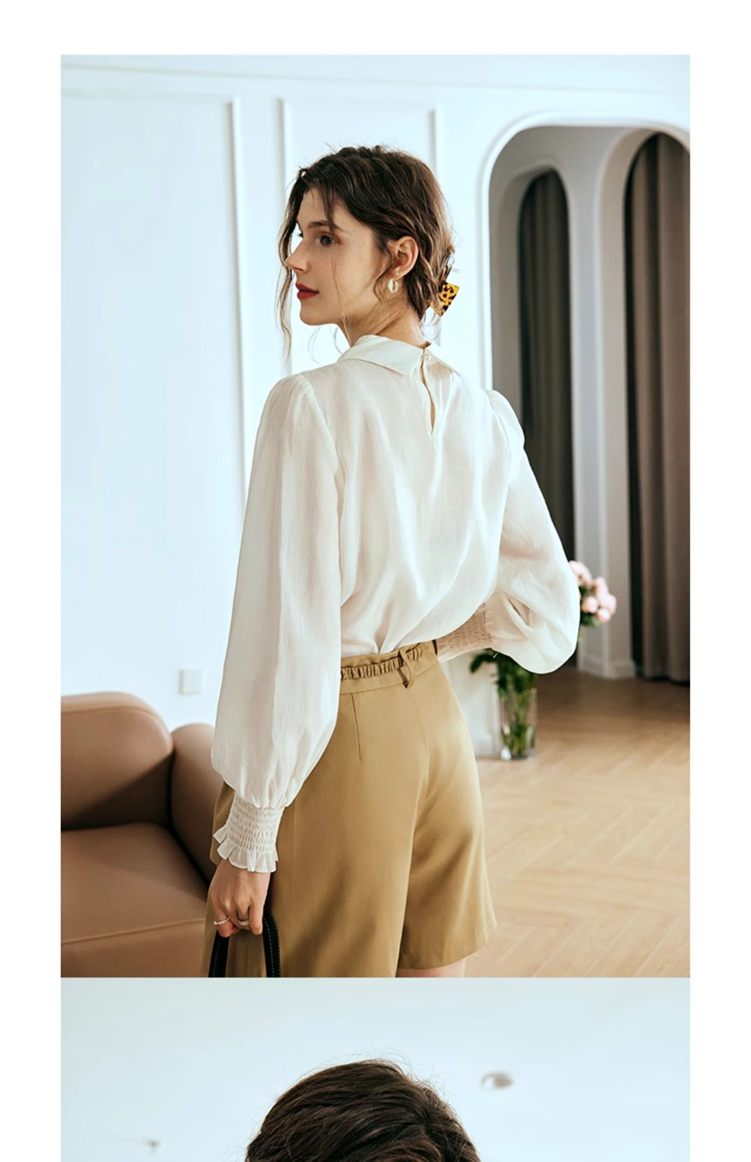 OLrain欧芮儿法式杏色雪纺衫女春季2024年新款时尚简约百搭衬衫