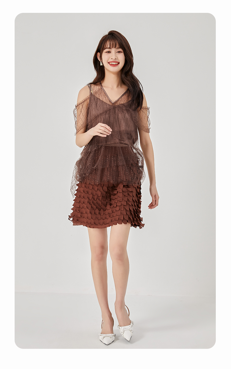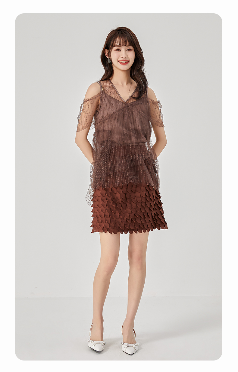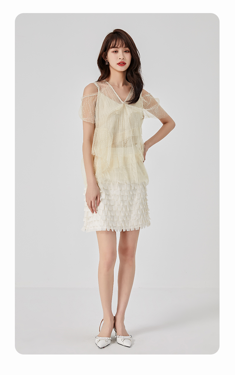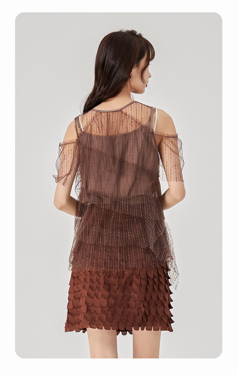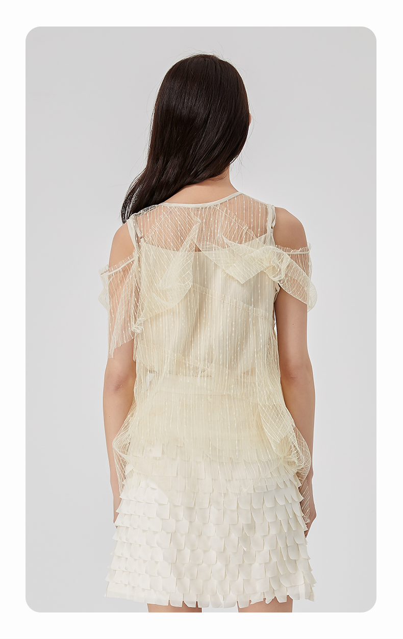 oldcolour夏新款设计感小众网纱V领套头衫两件套女O21011173