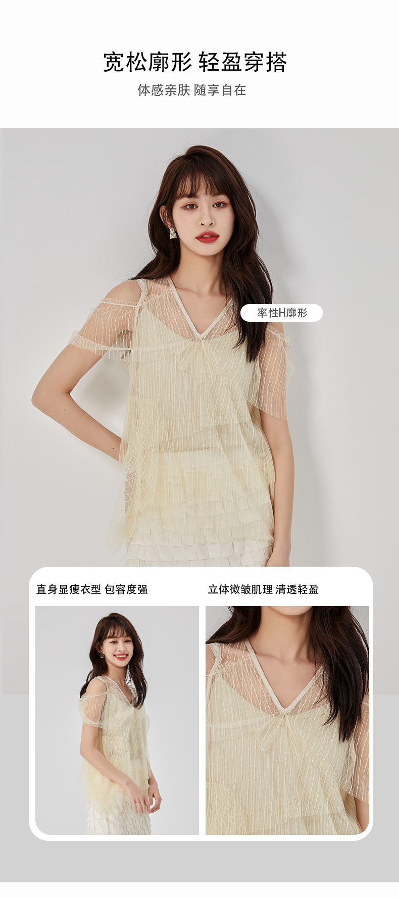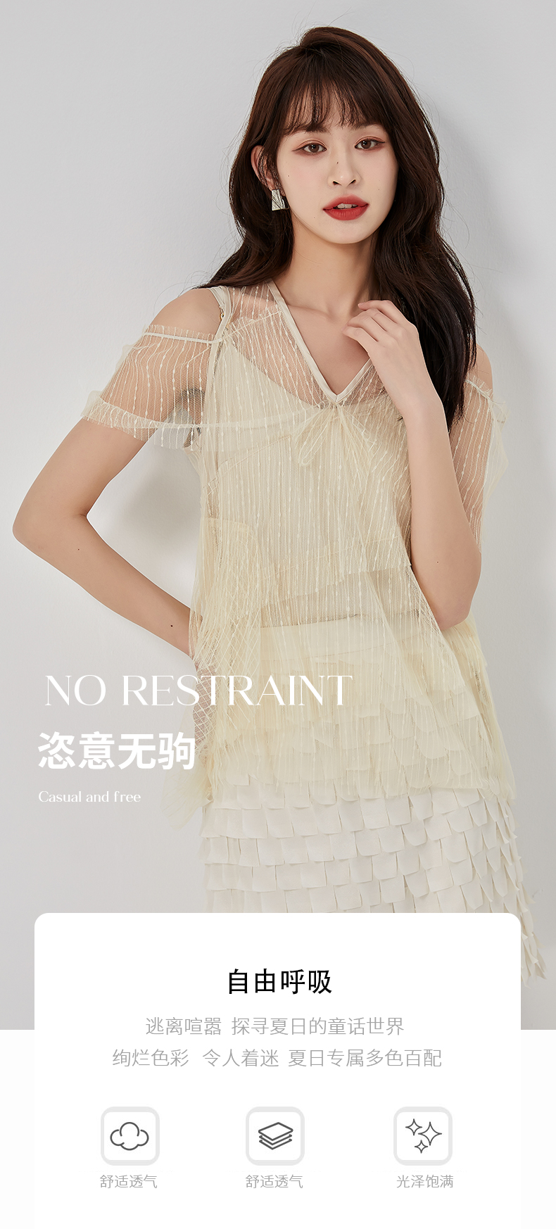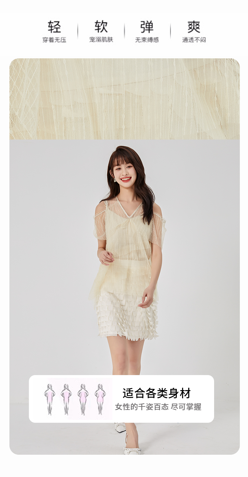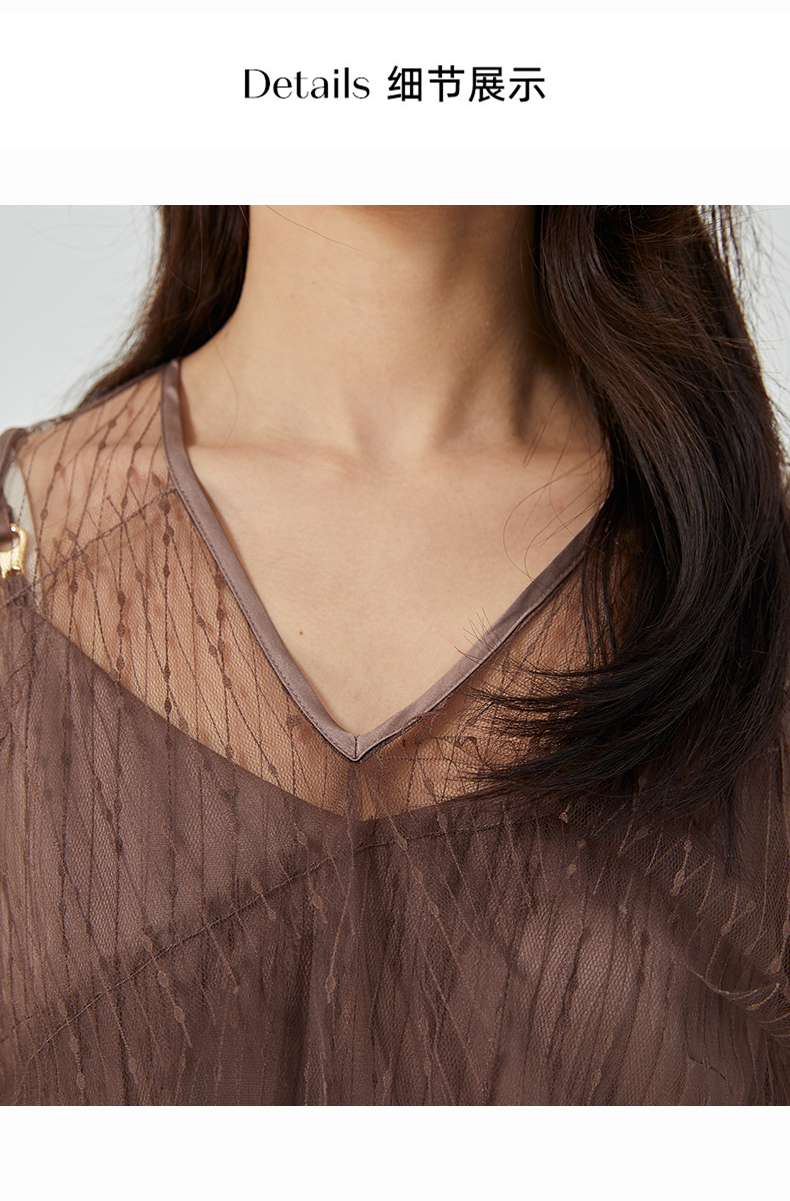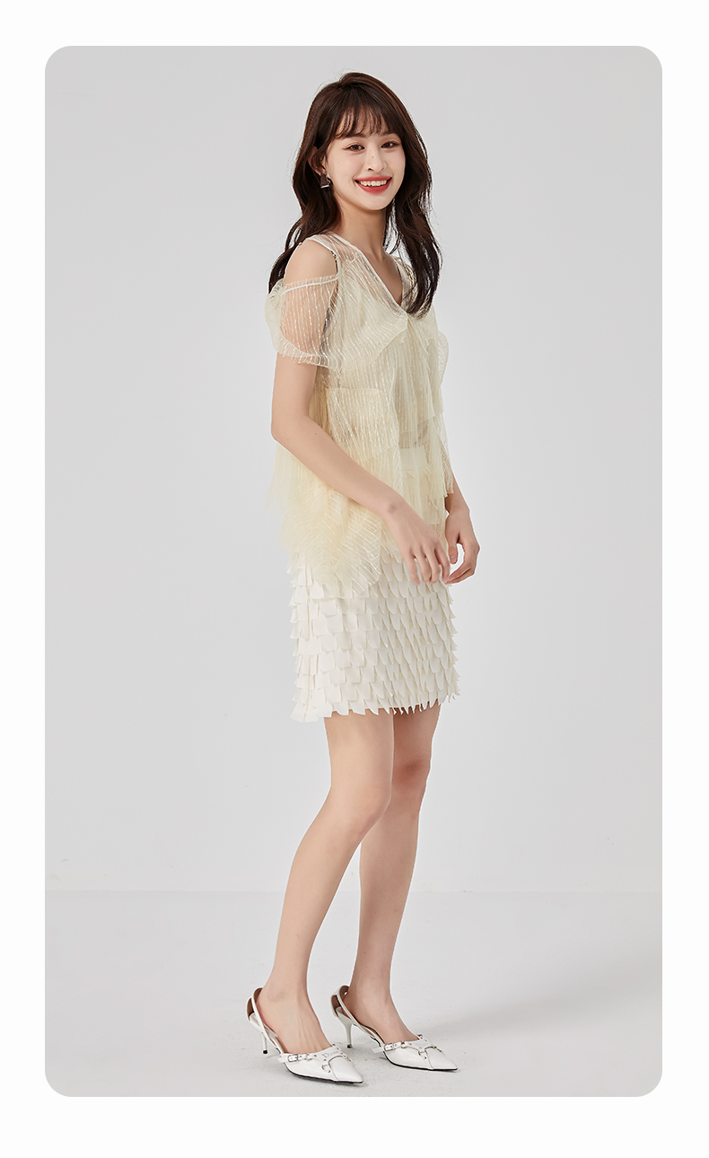 oldcolour夏新款设计感小众网纱V领套头衫两件套女O21011173