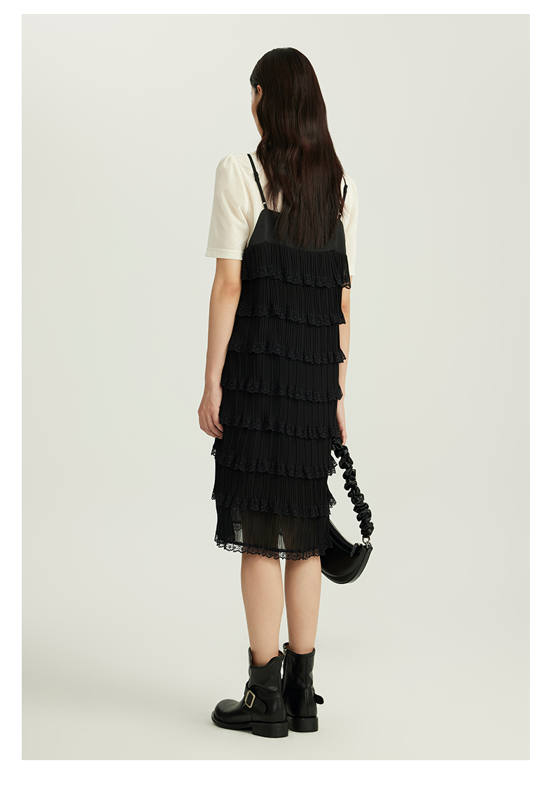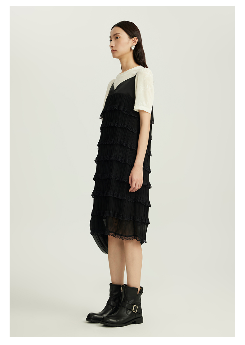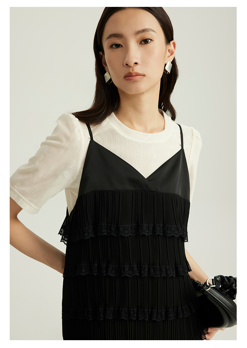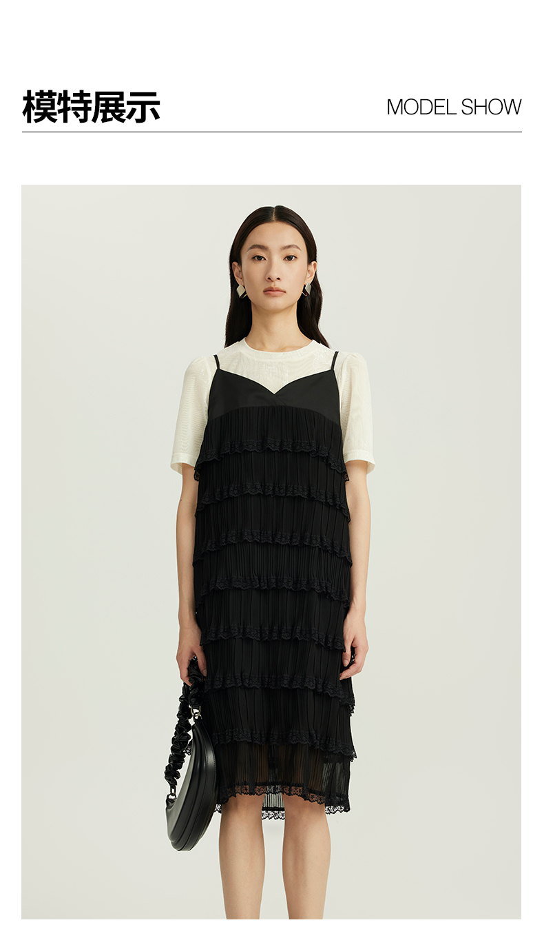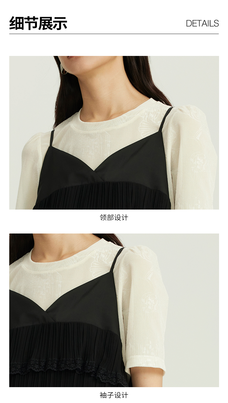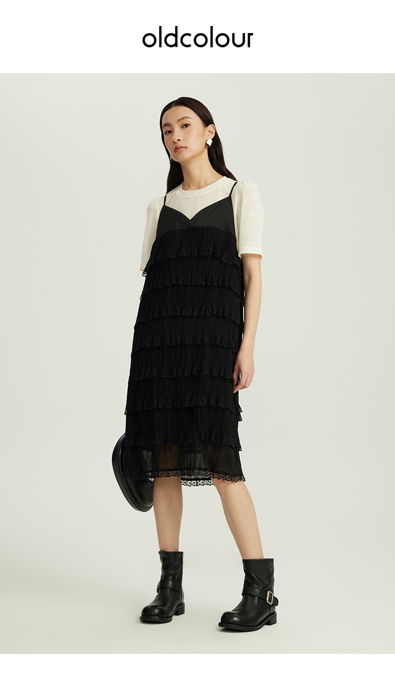 oldcolour夏季新品圆领黑白撞色时尚气质蛋糕裙套装女Q311005A1