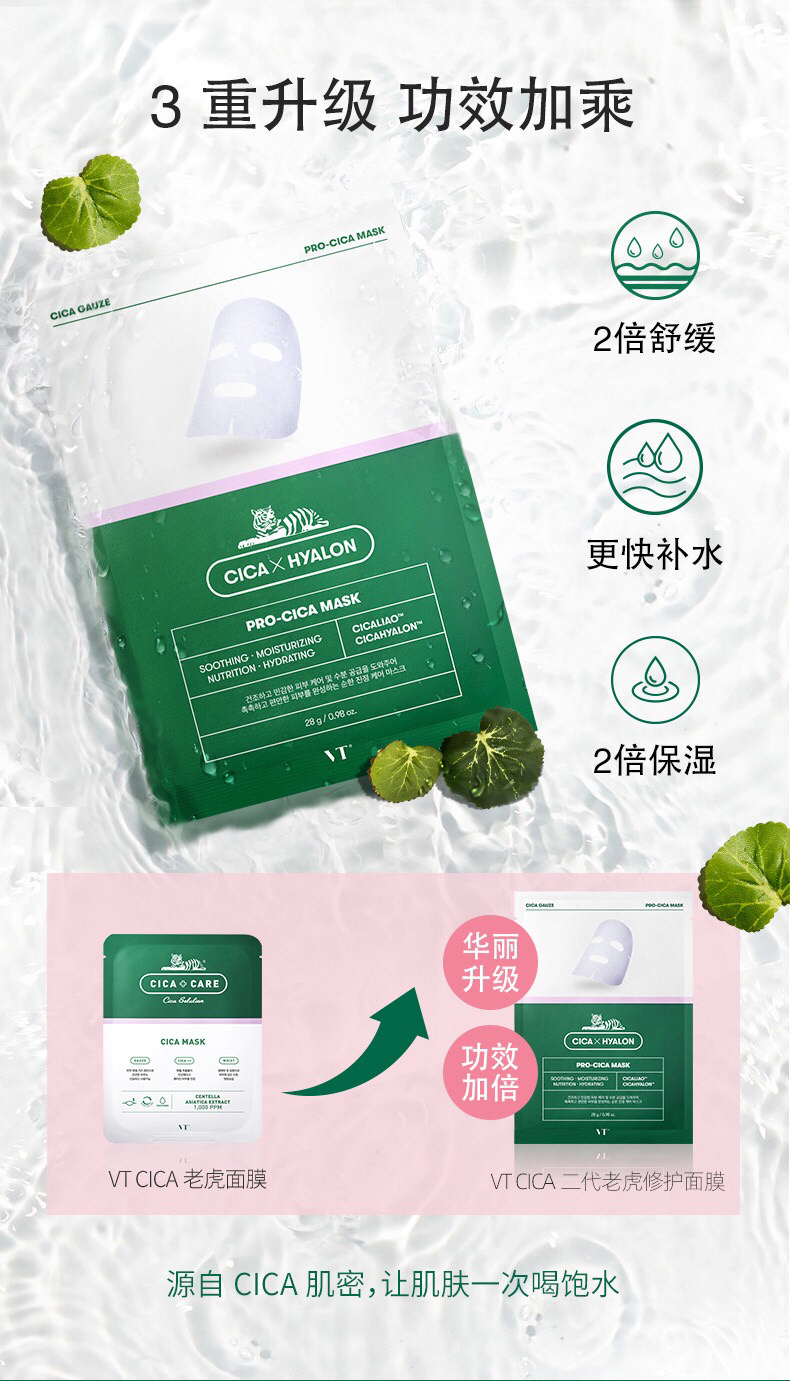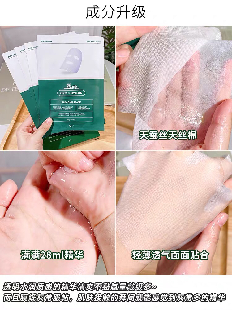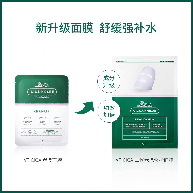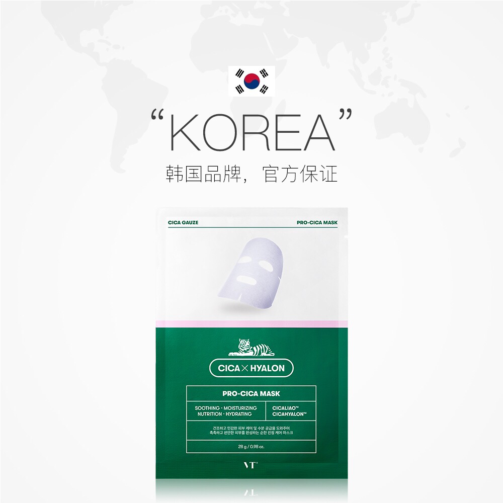 韩国VT老虎祛痘面膜-积雪草补水去痘收缩毛孔淡化痘印修复6片-会员6折