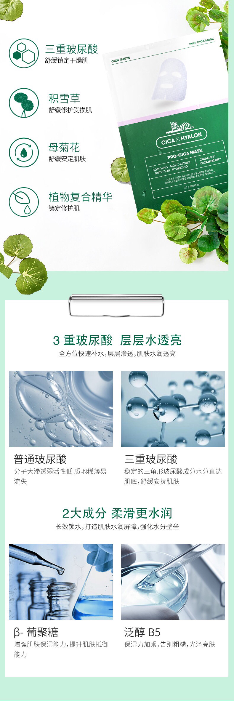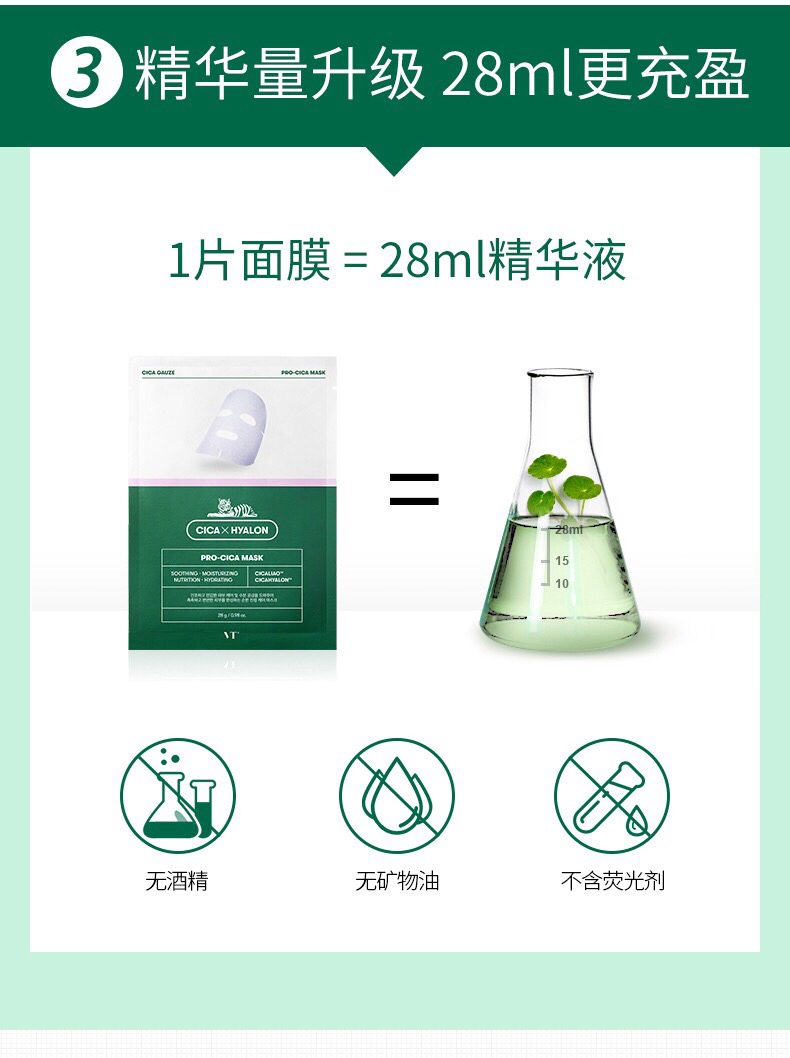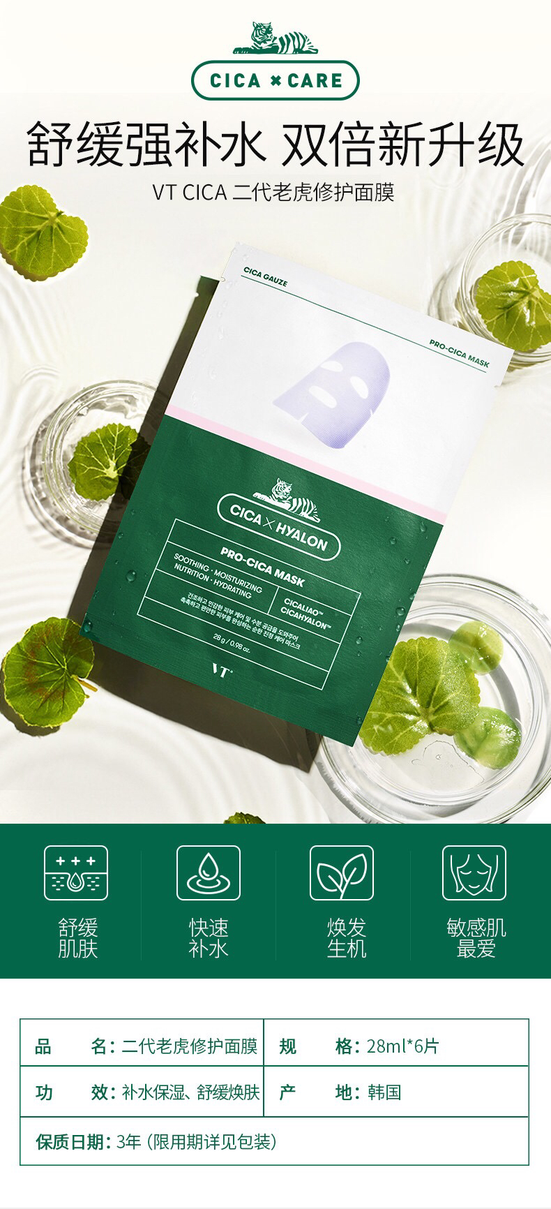 韩国VT老虎祛痘面膜-积雪草补水去痘收缩毛孔淡化痘印修复6片-会员6折