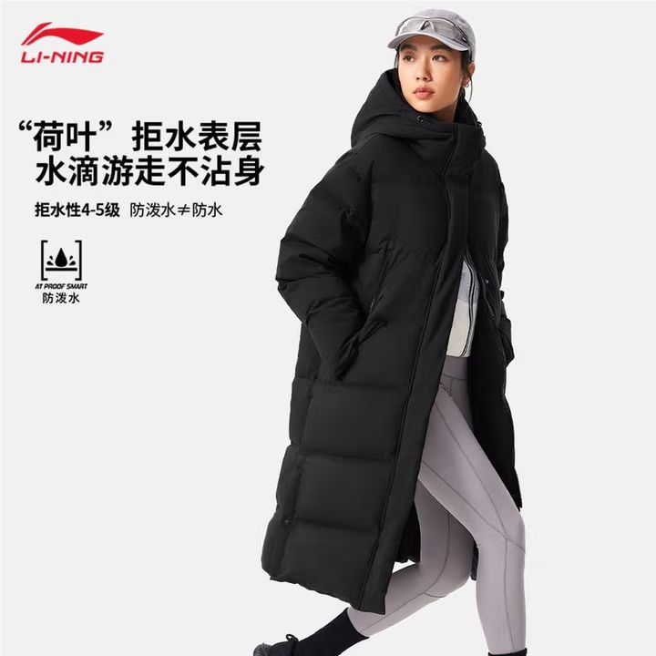 李宁女子冬季鸭绒长款羽绒服外套AYMU110-2