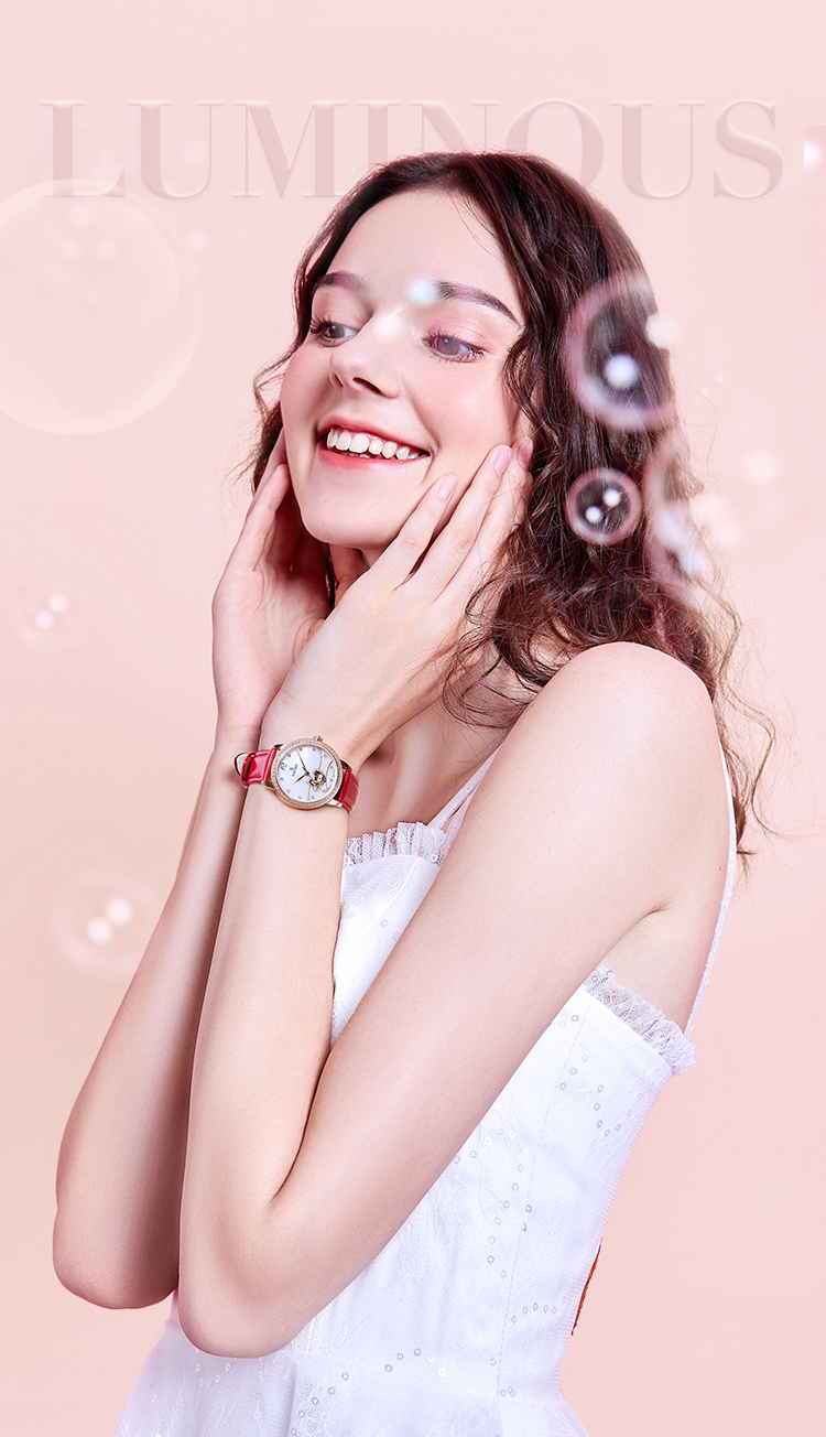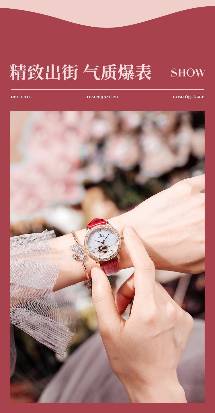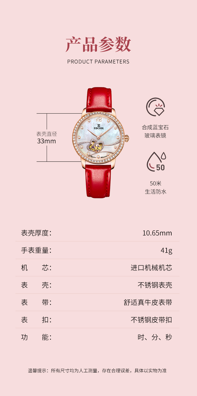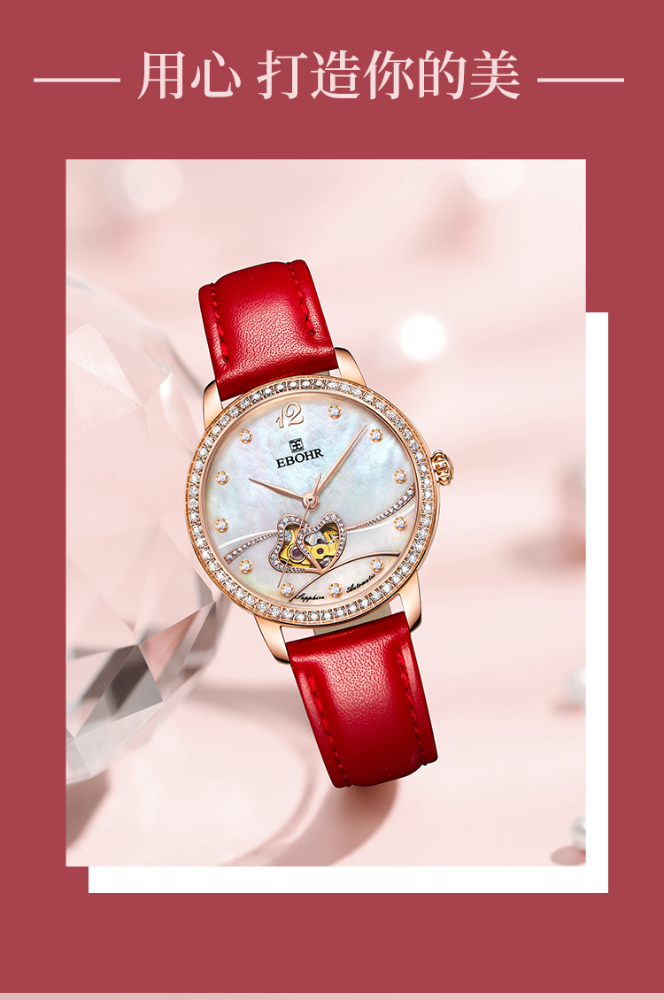 依波(EBOHR)手表七夕情人节简约女士气质生日情侣男款防水送老婆520礼物女友钢带镂空自动机械腕表 双心镂空机械女表 51050344