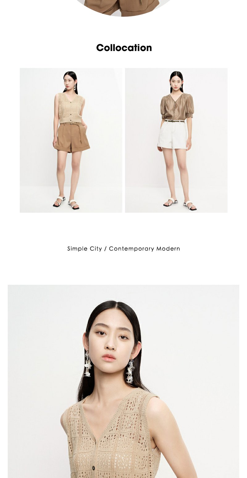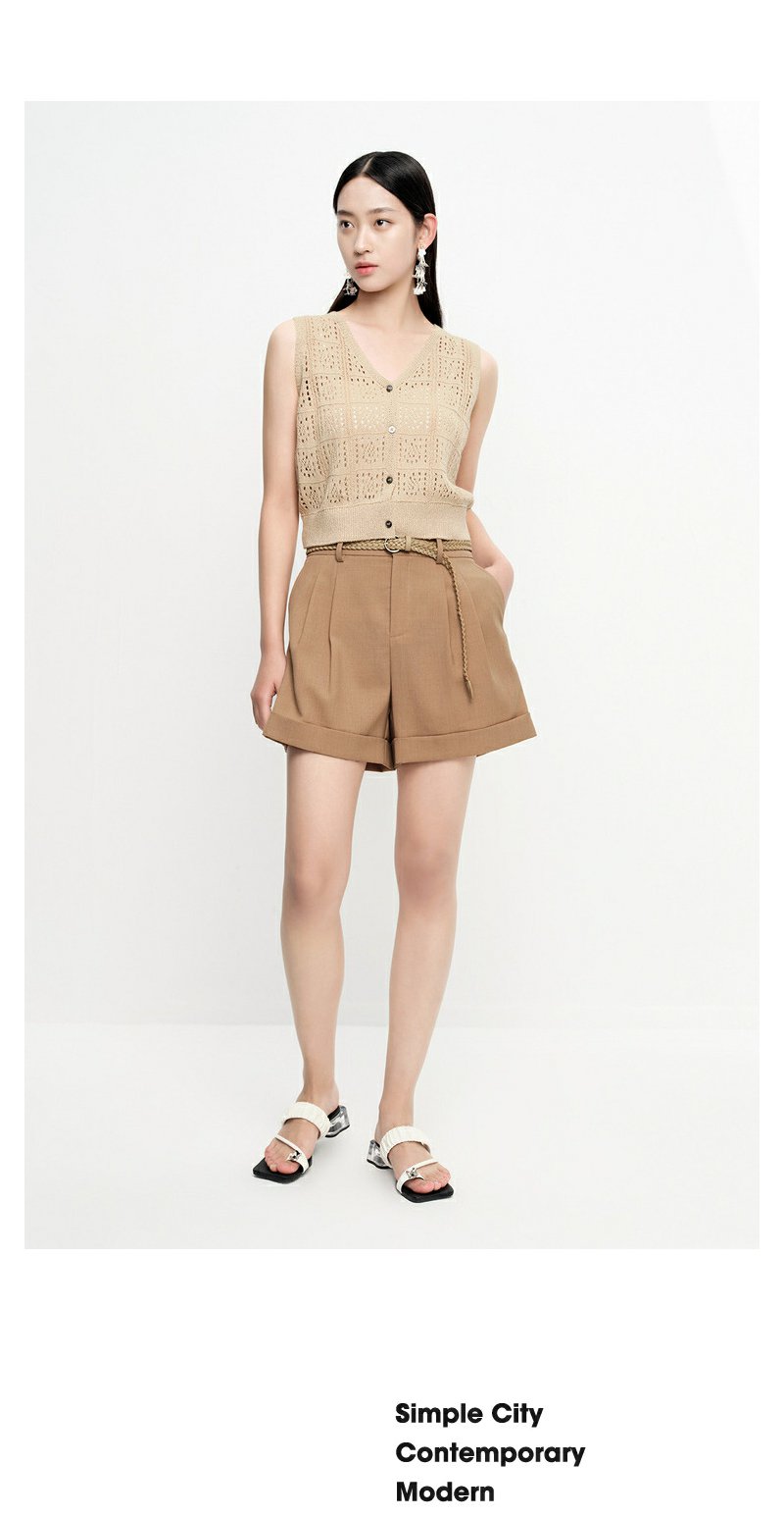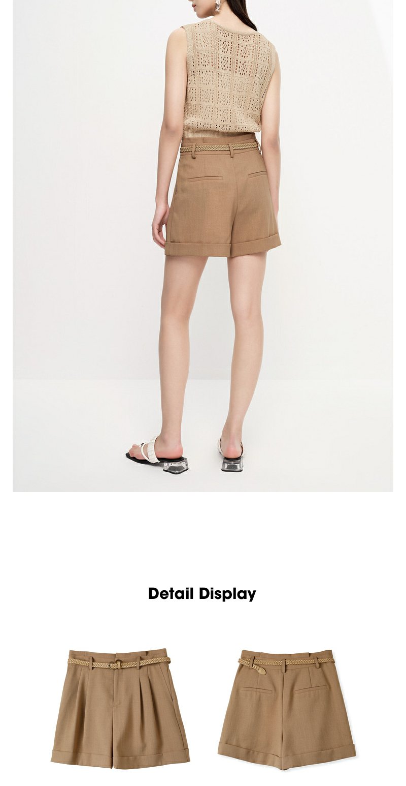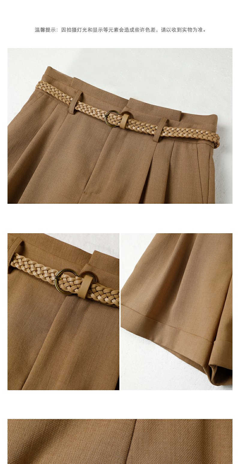 NEELLY纳俪商场同款夏季西装短裤女翻边休闲阔腿直筒裤百搭时尚N23061H01206