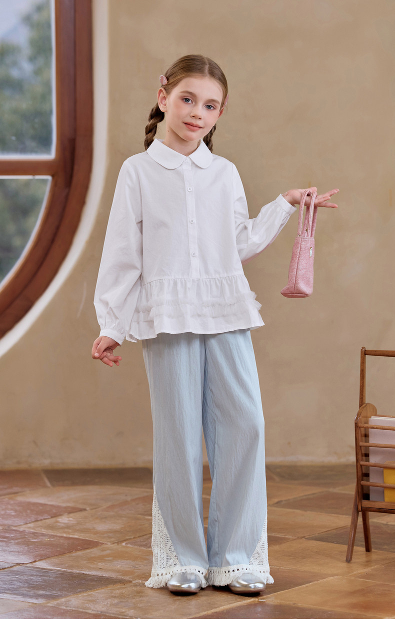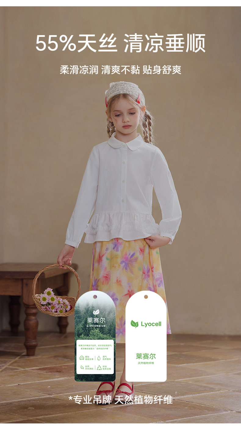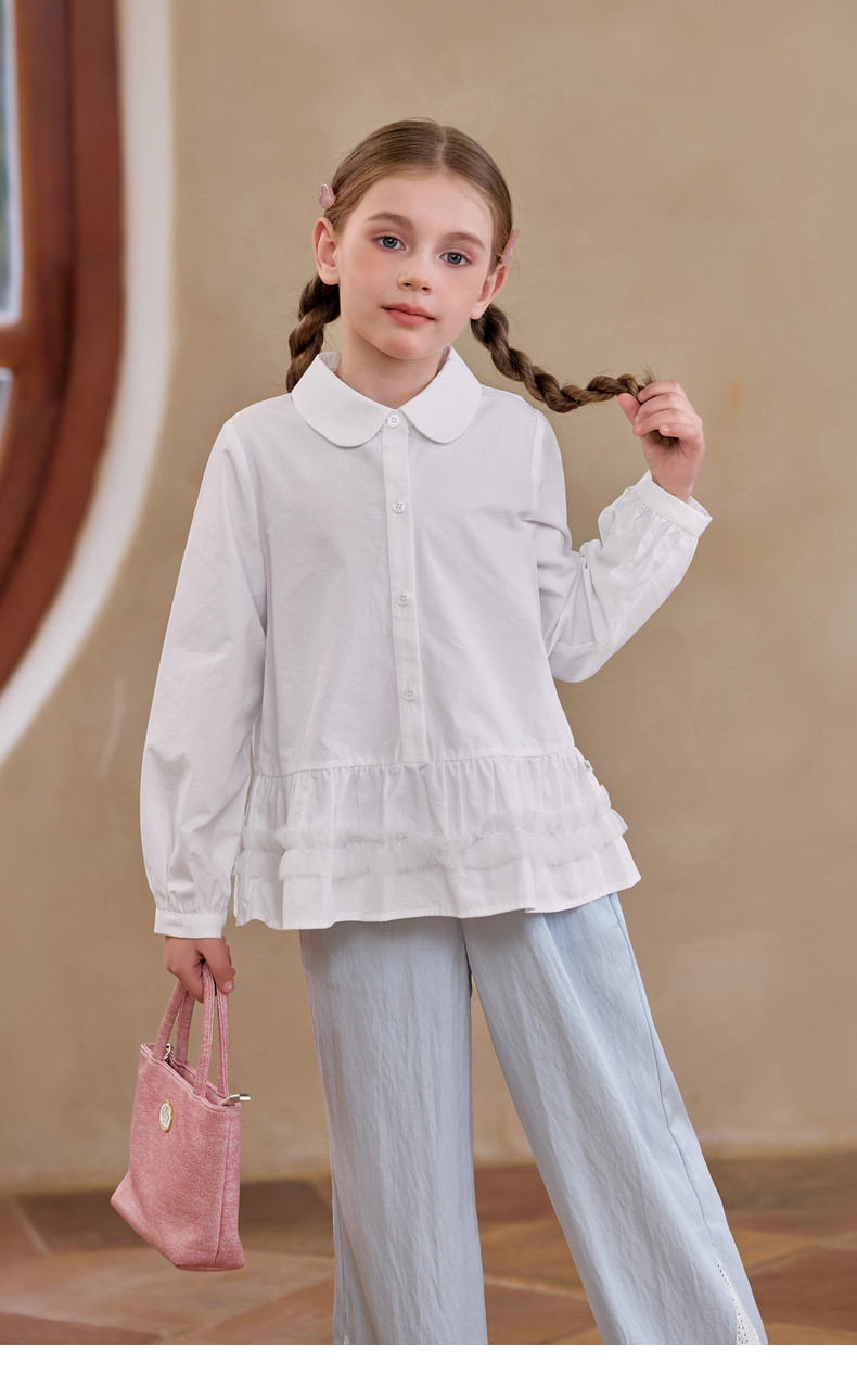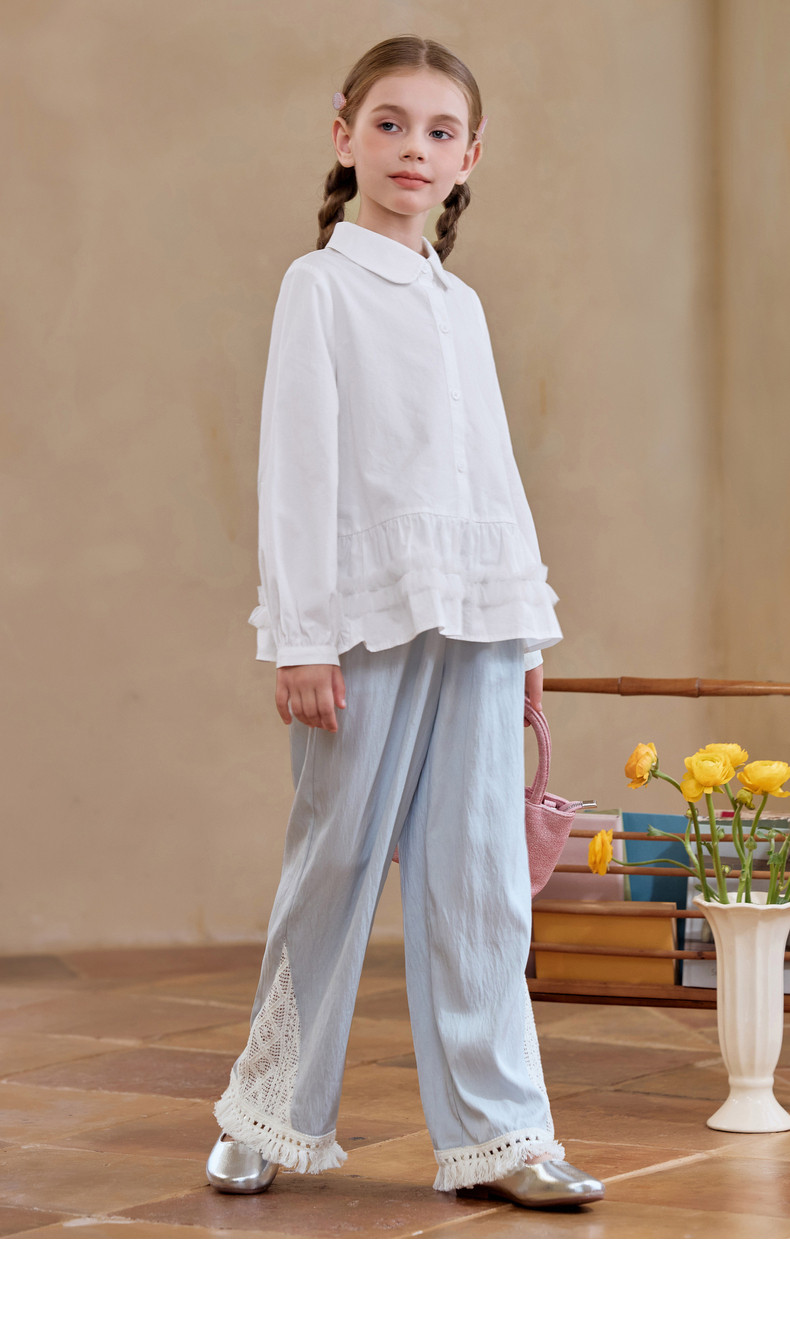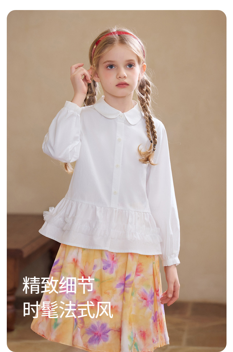 【云优选】Little Naive女童娃娃领衬衣春季新款荷叶边上衣儿童莱赛尔衬衫