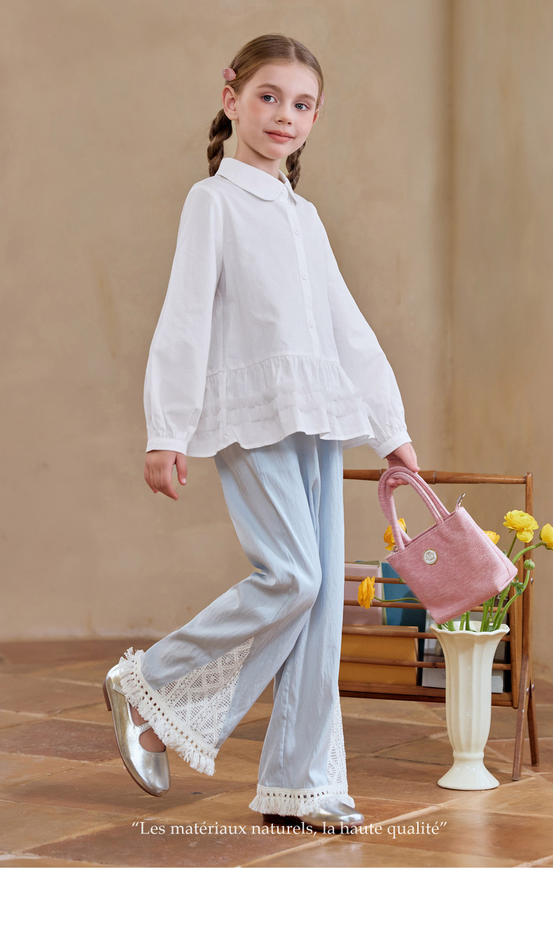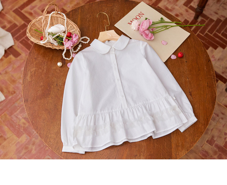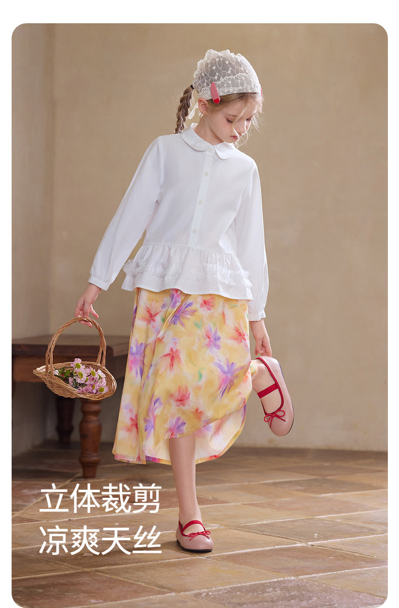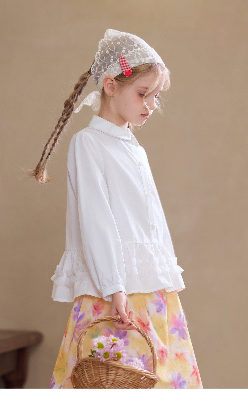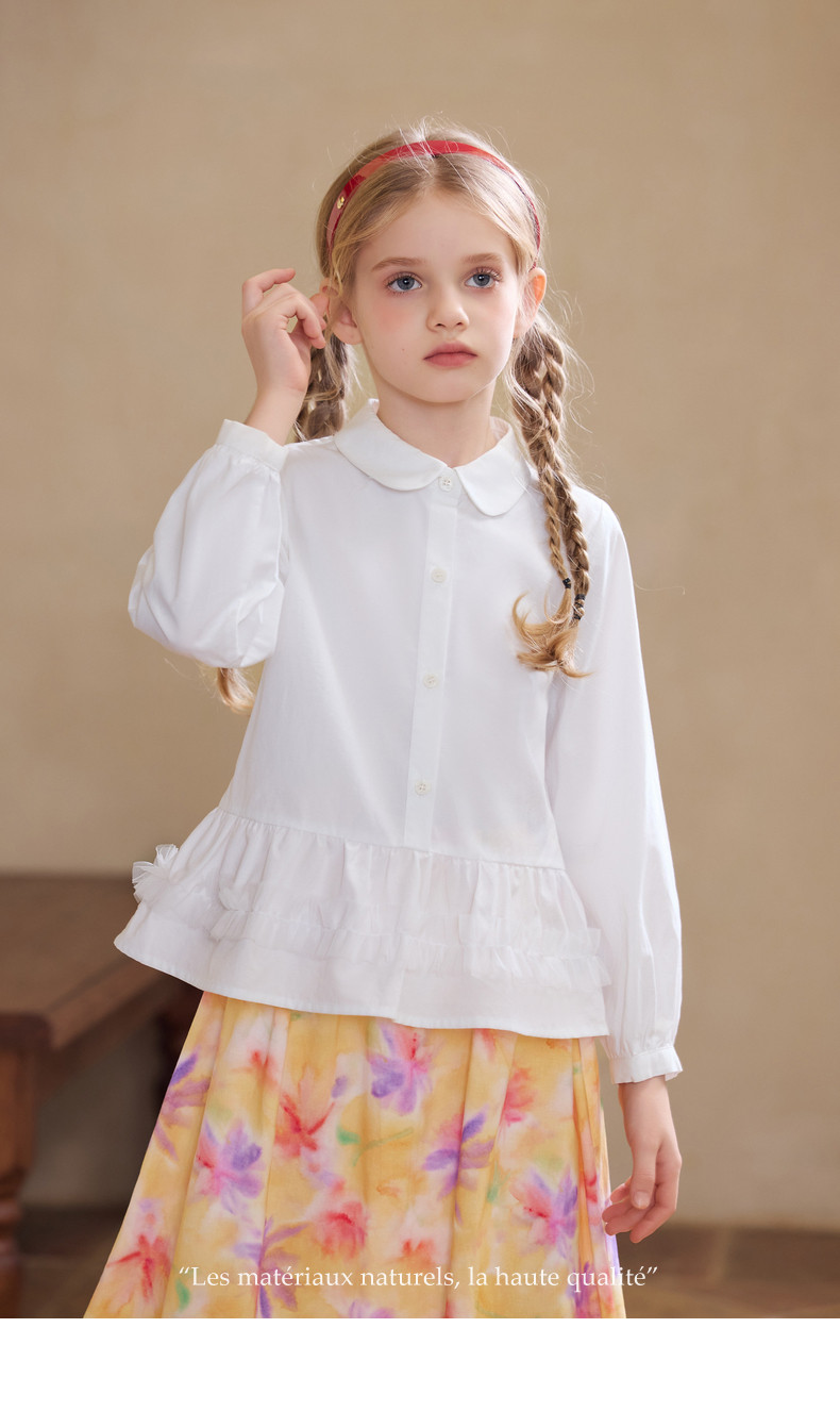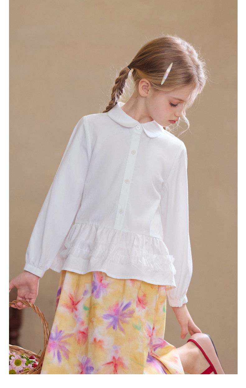 【云优选】Little Naive女童娃娃领衬衣春季新款荷叶边上衣儿童莱赛尔衬衫