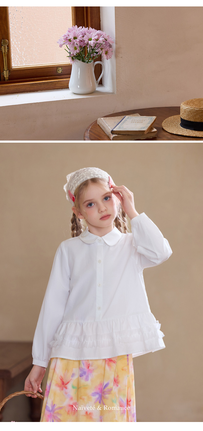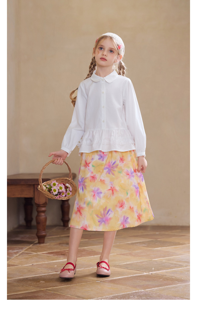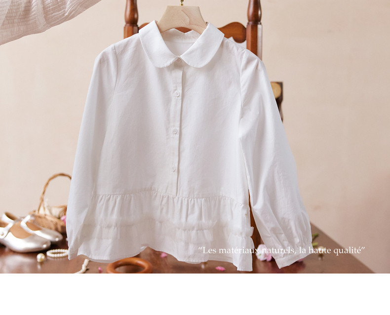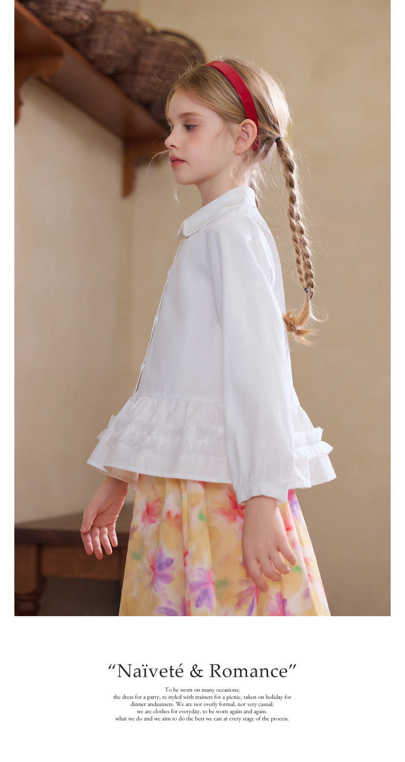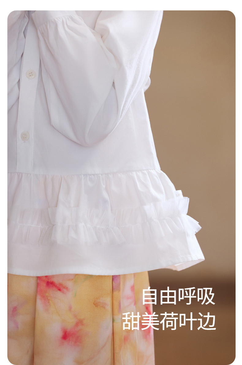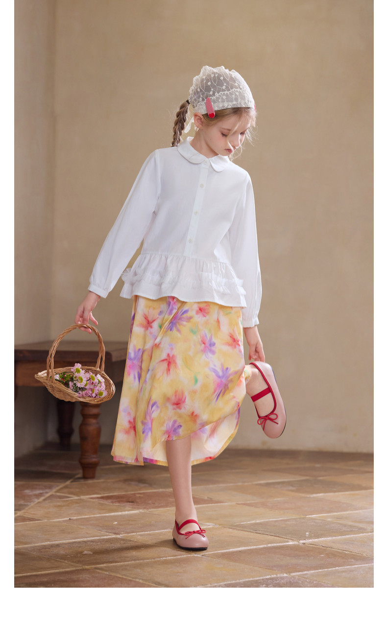 【云优选】Little Naive女童娃娃领衬衣春季新款荷叶边上衣儿童莱赛尔衬衫