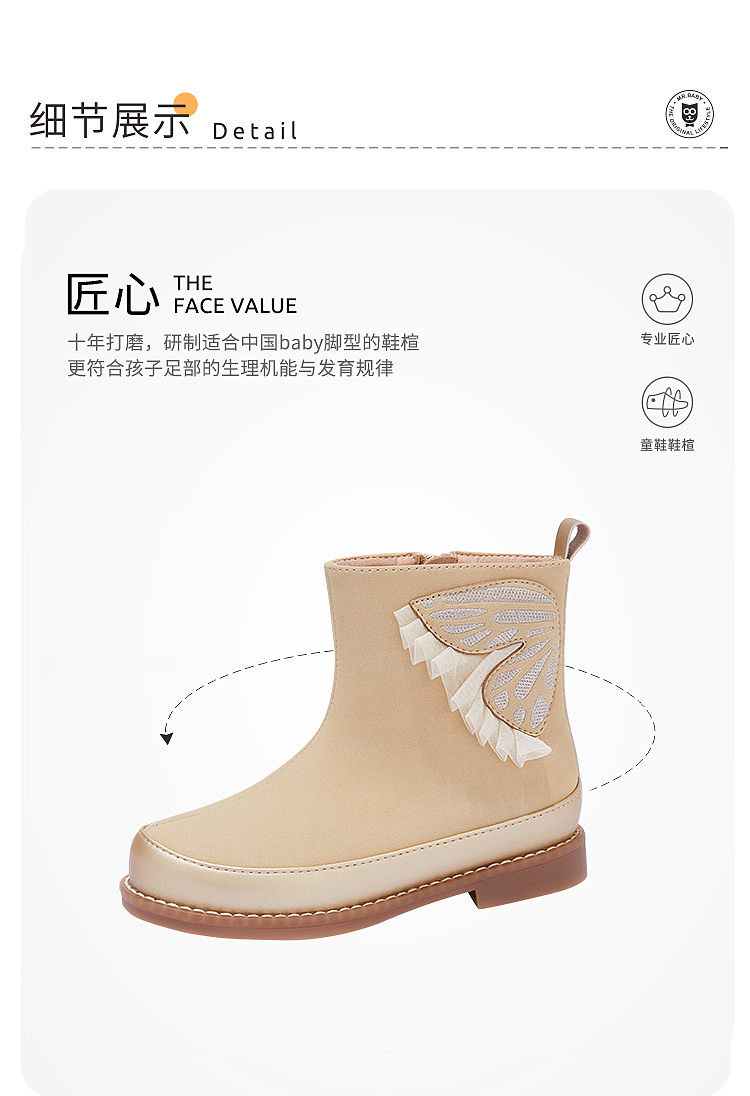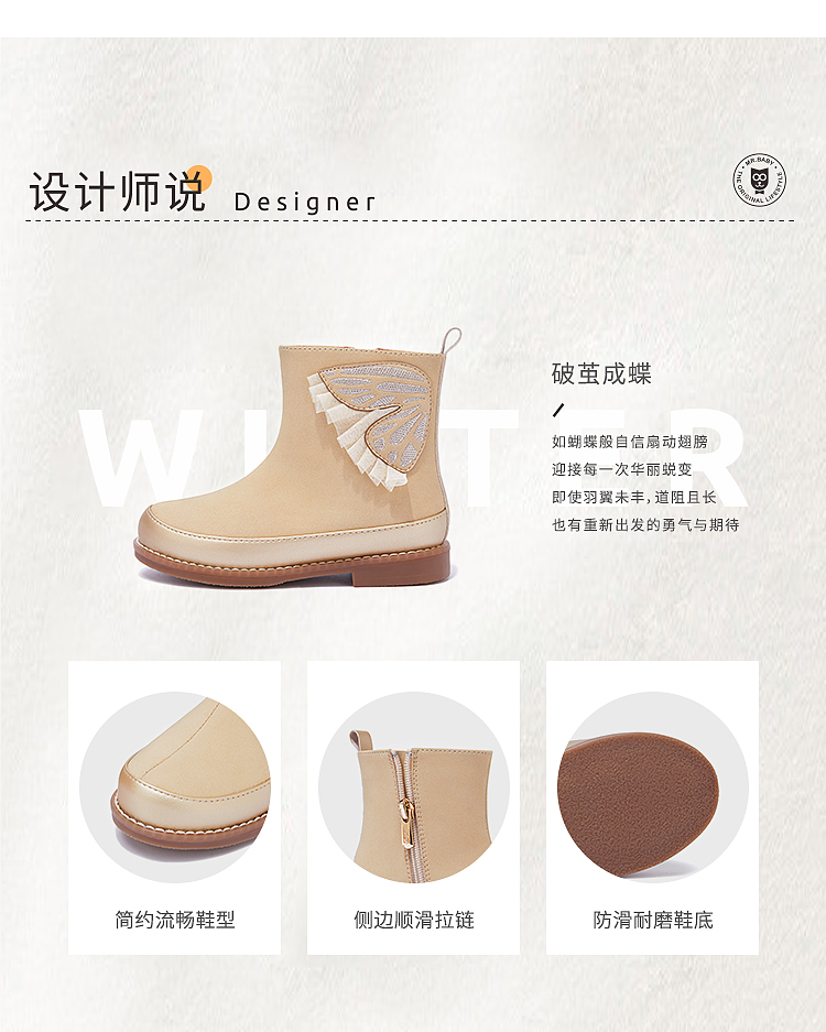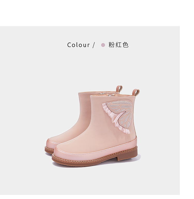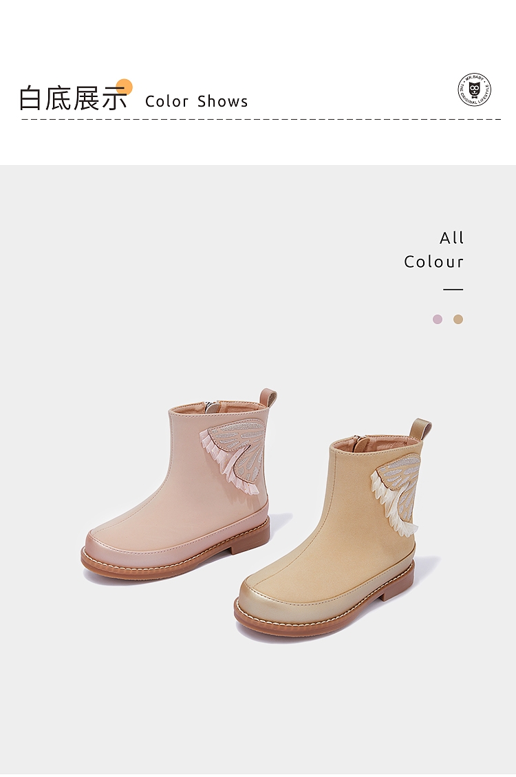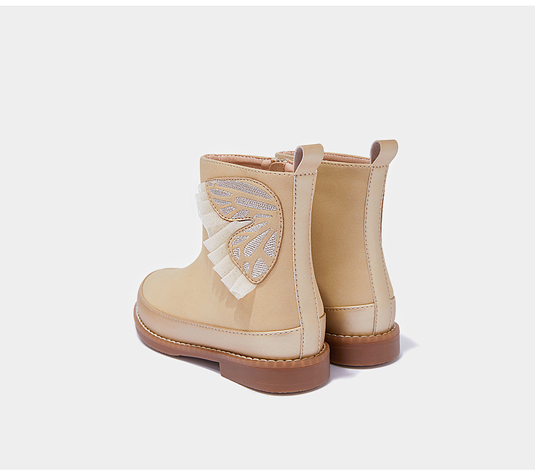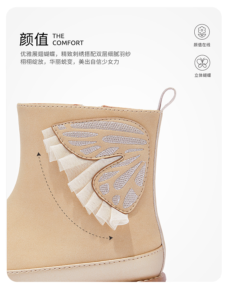 mrbaby儿童靴女童公主鞋2022秋冬新款电绣蝴蝶翅膀气质中大童靴子
