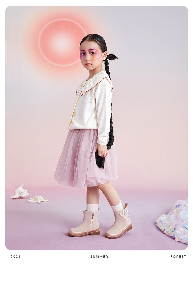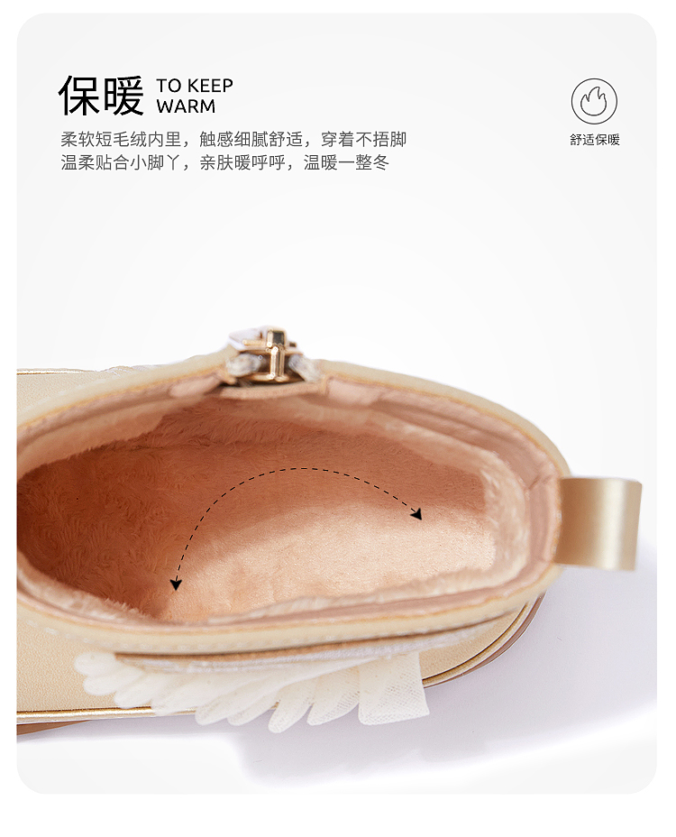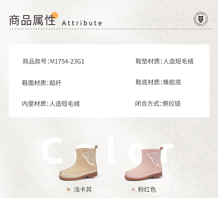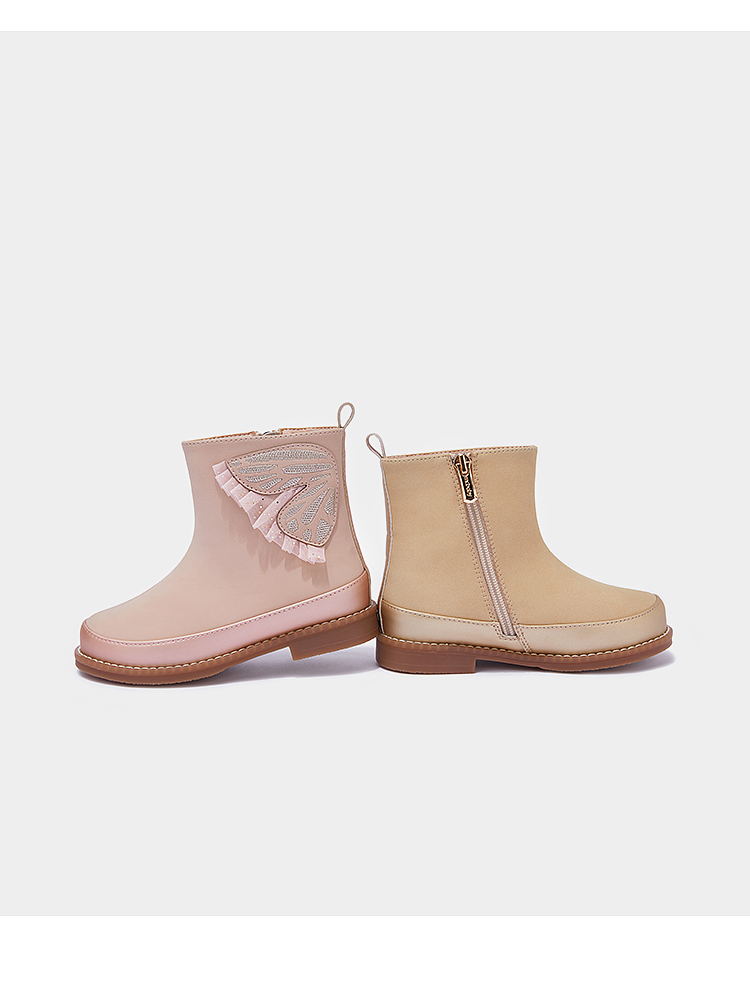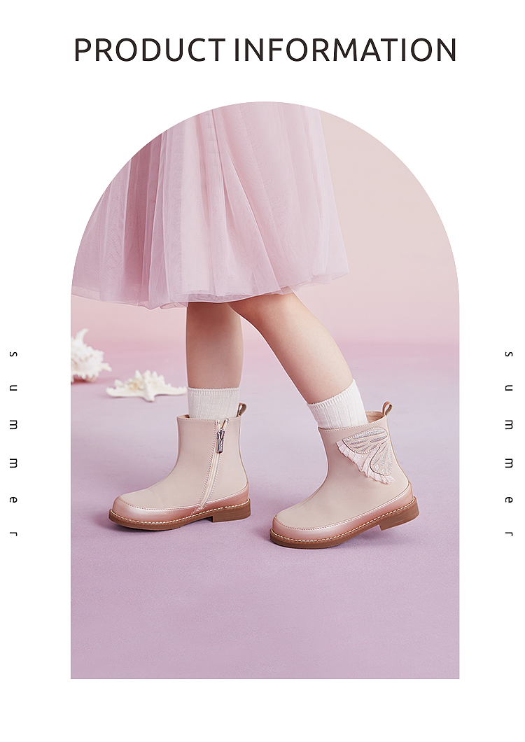 mrbaby儿童靴女童公主鞋2022秋冬新款电绣蝴蝶翅膀气质中大童靴子