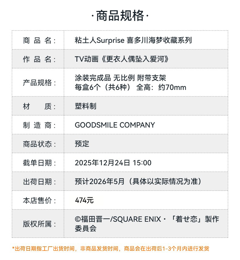 【GSC预售定金】粘土人Surprise 喜多川海梦收藏系列 TV动画《更衣人偶坠入爱河》附官方限定特典