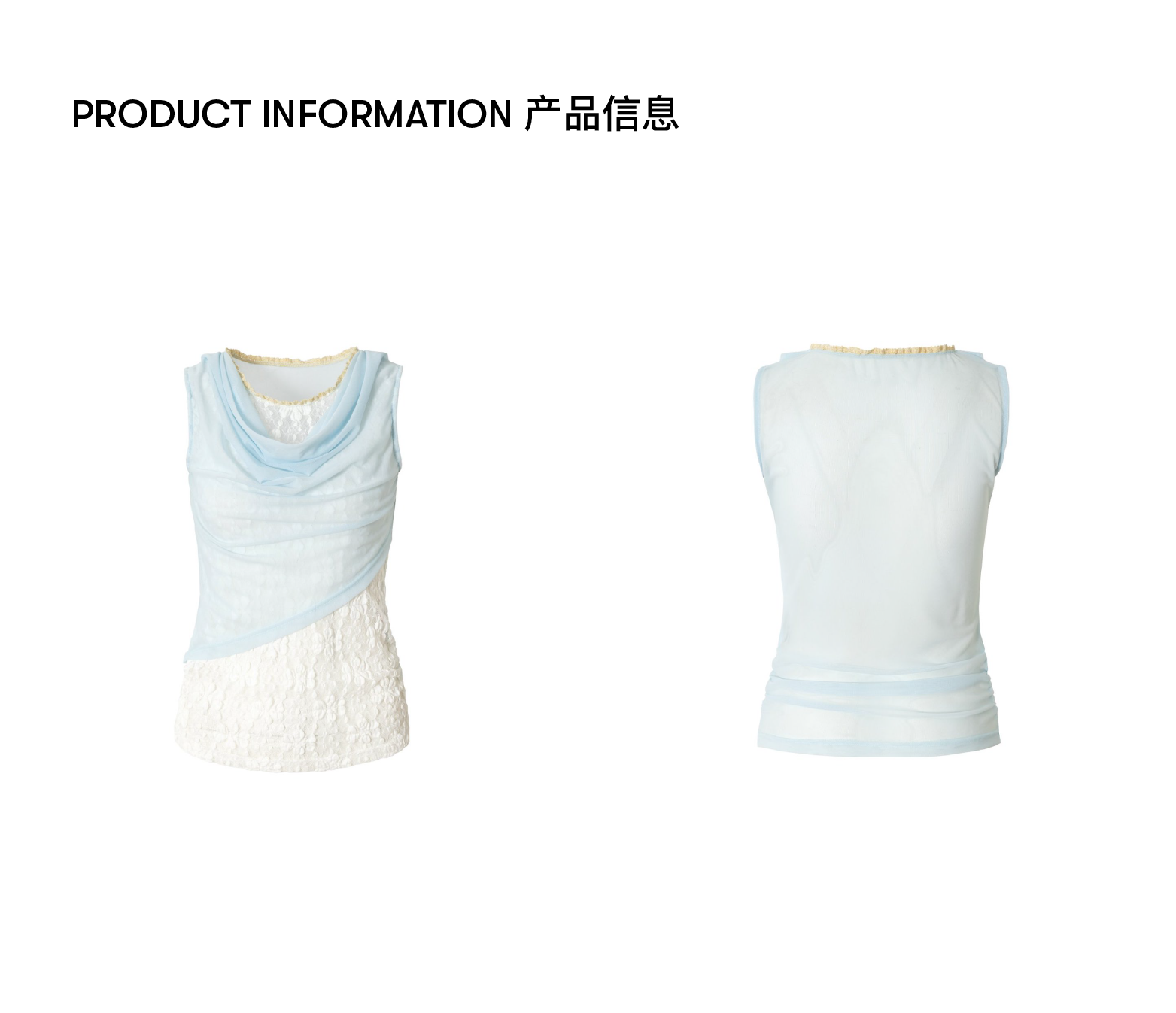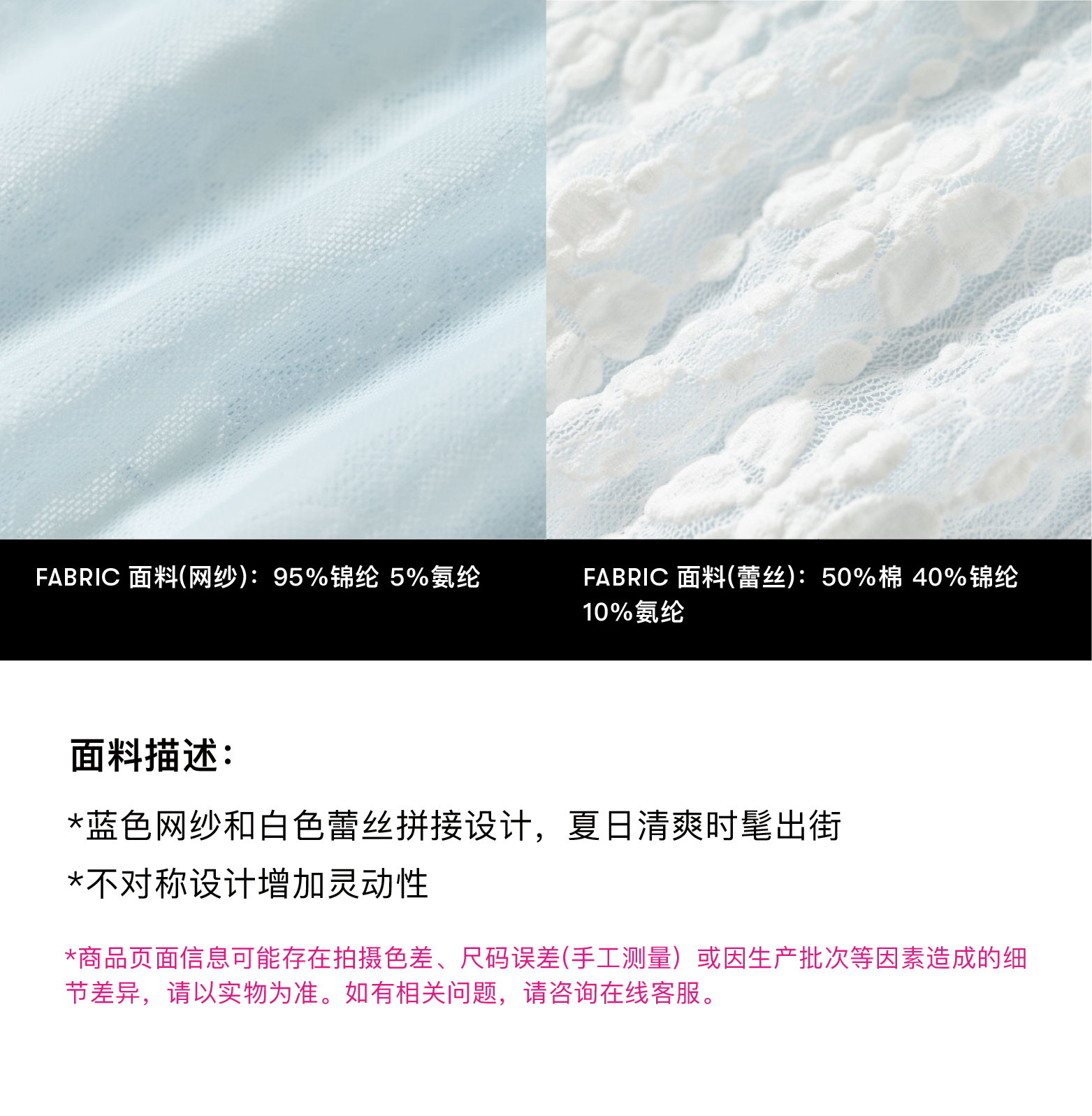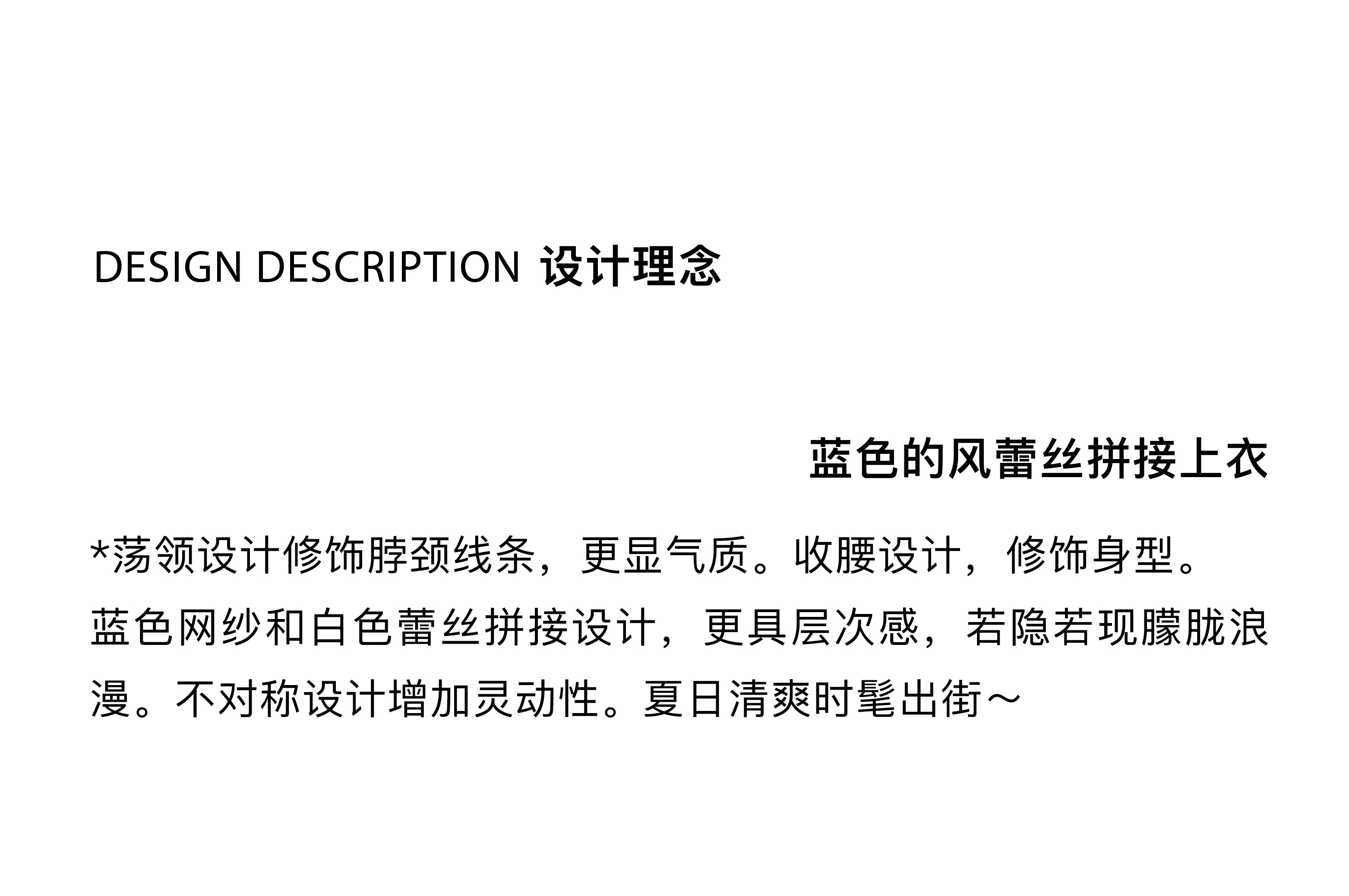 local tag/It25ssk49/蓝色的风蕾丝拼接上衣