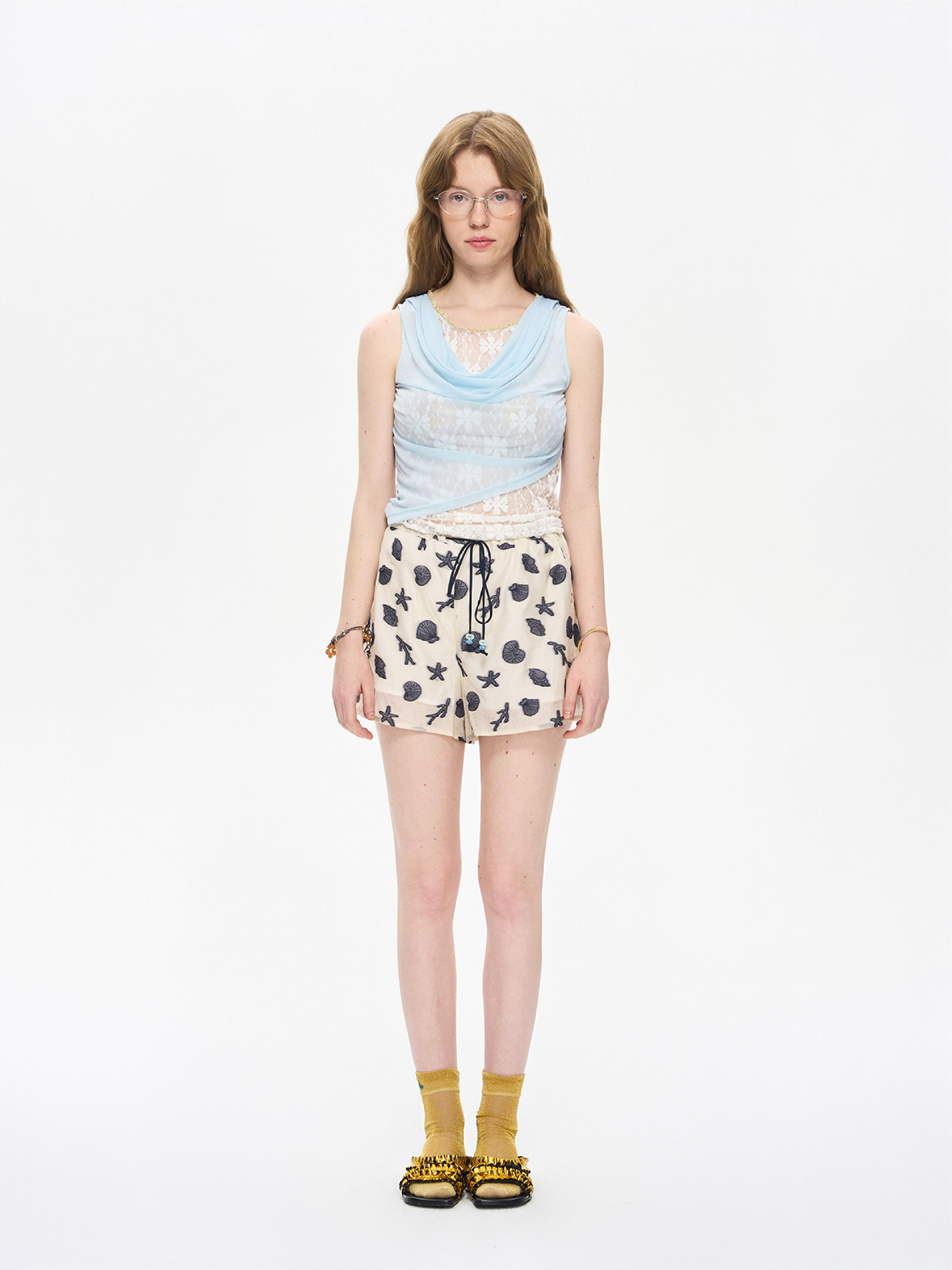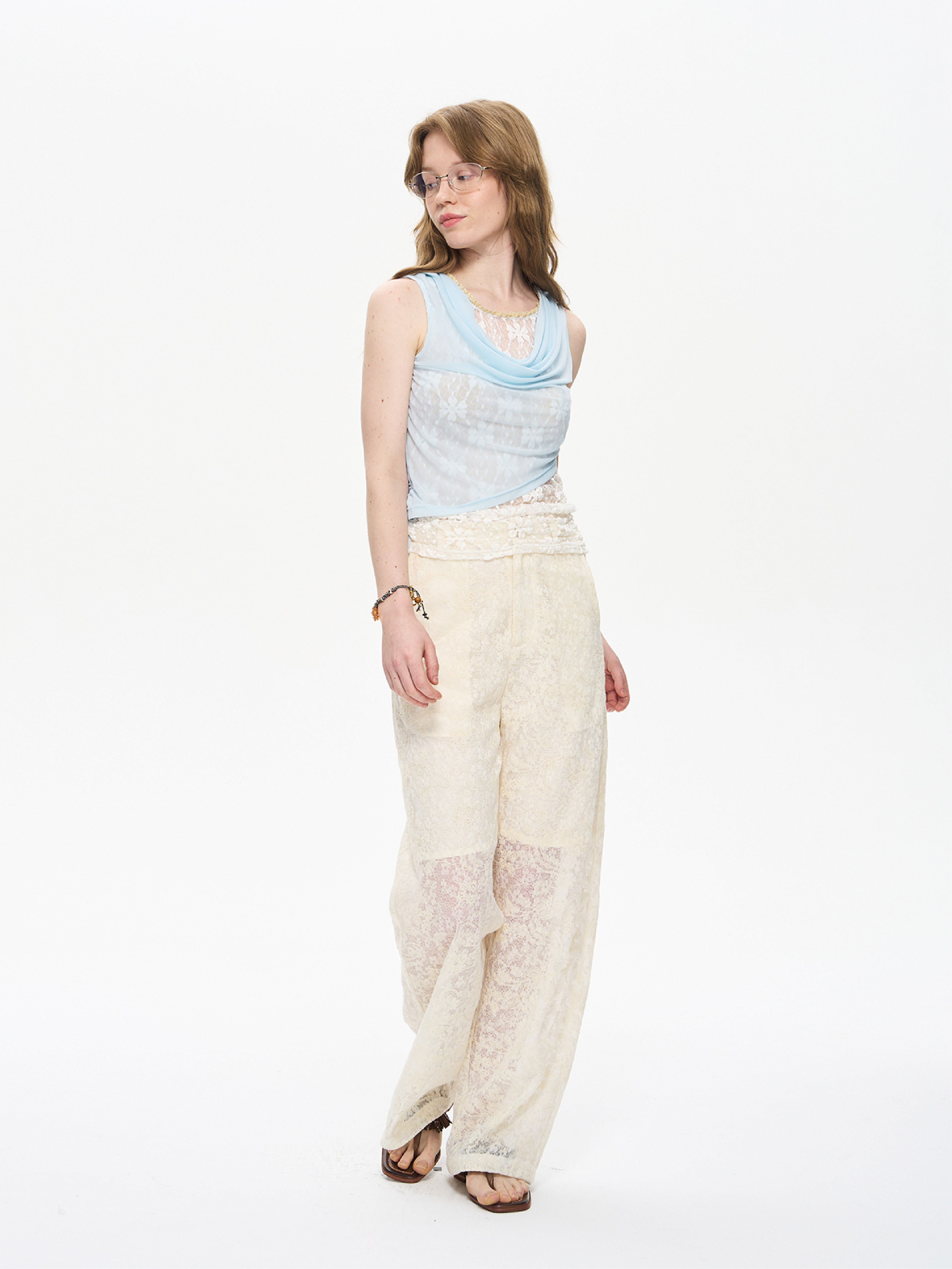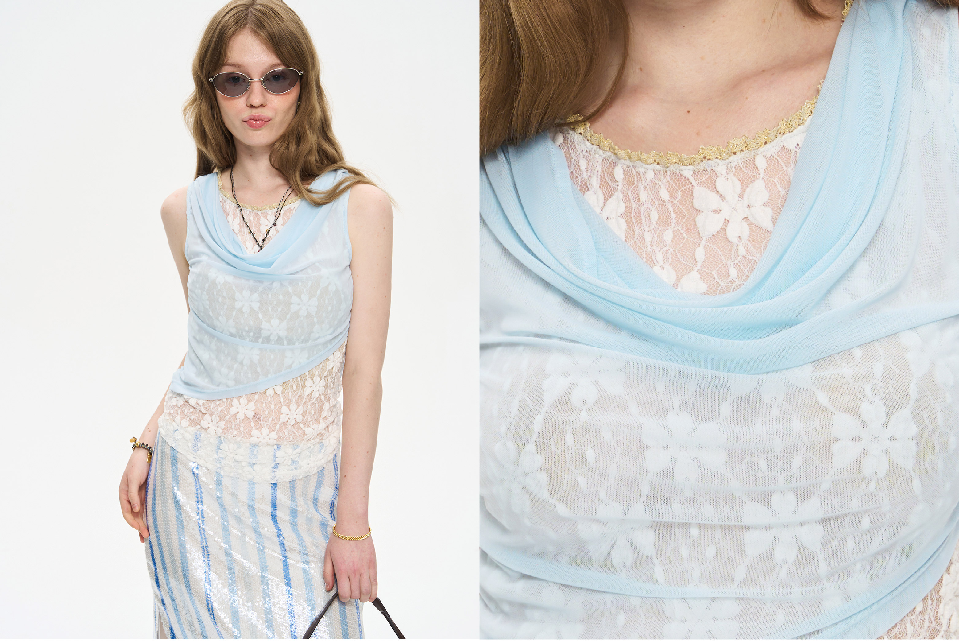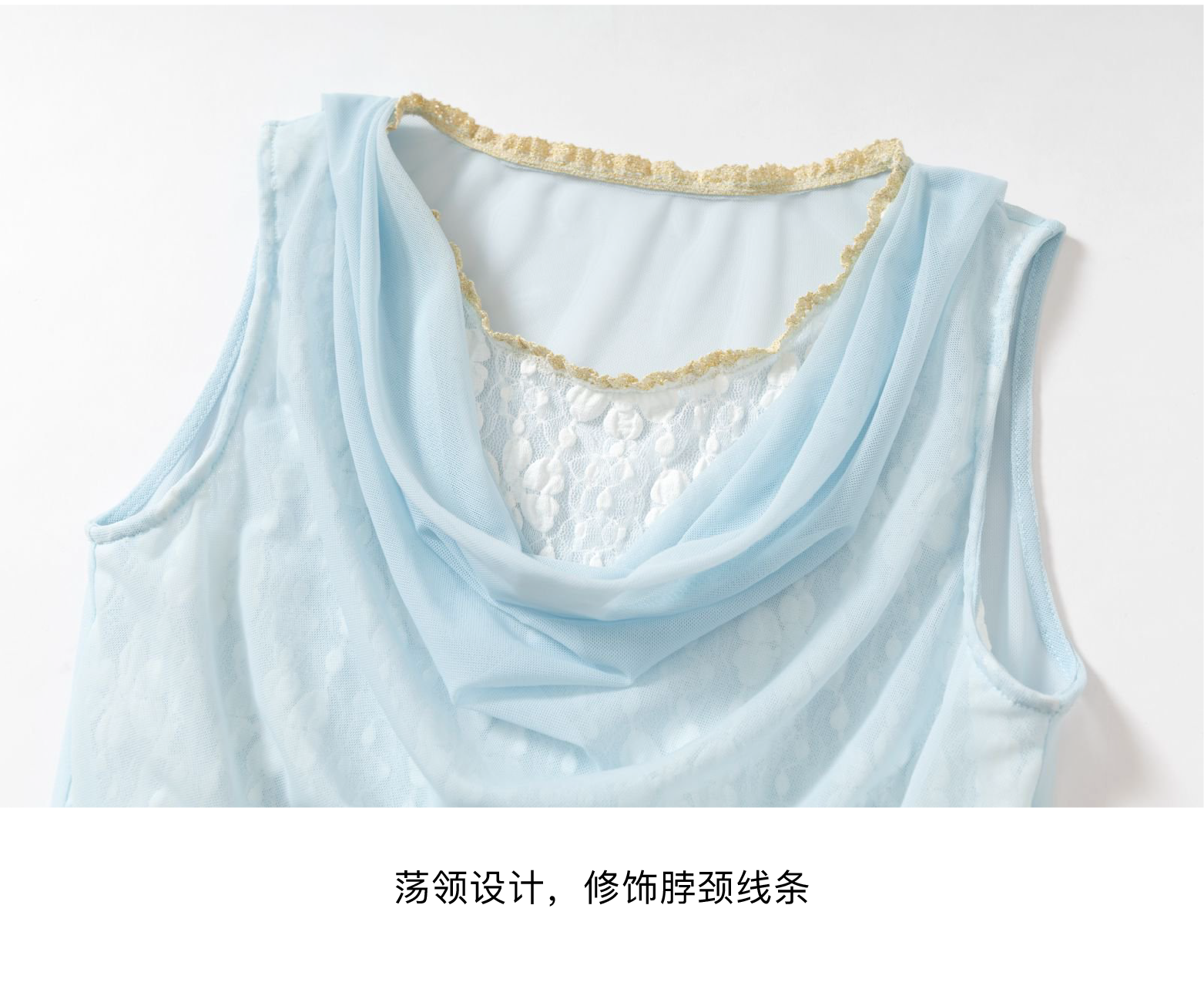 local tag/It25ssk49/蓝色的风蕾丝拼接上衣