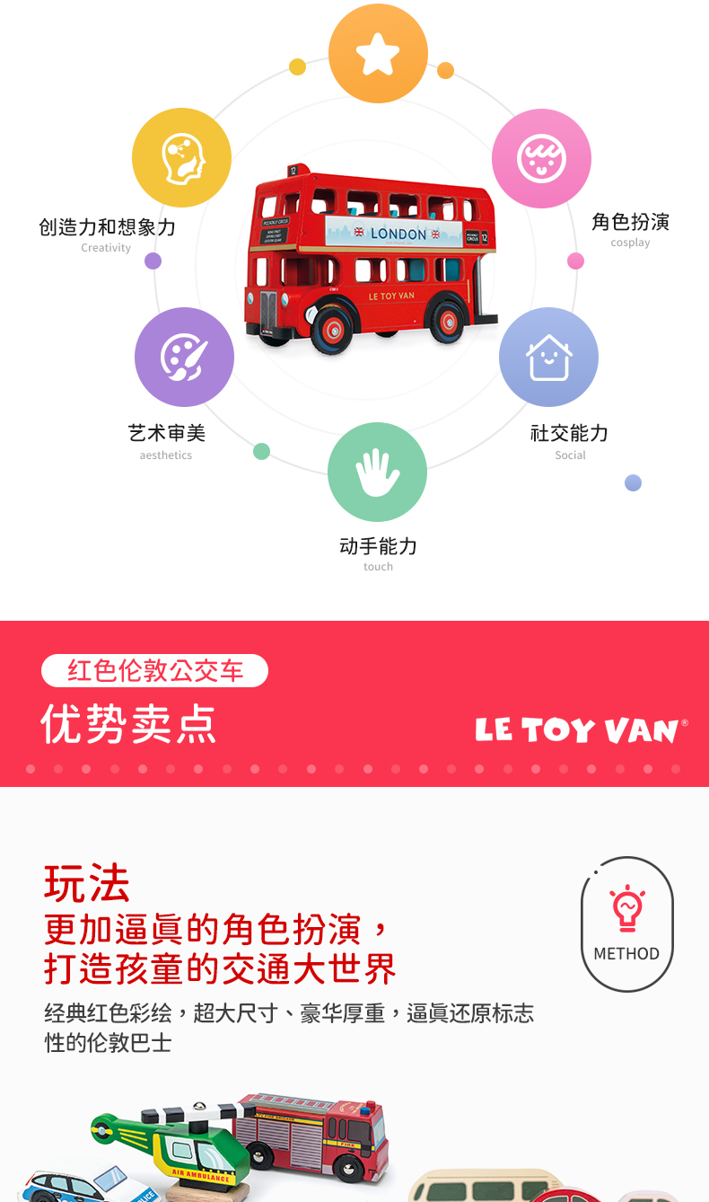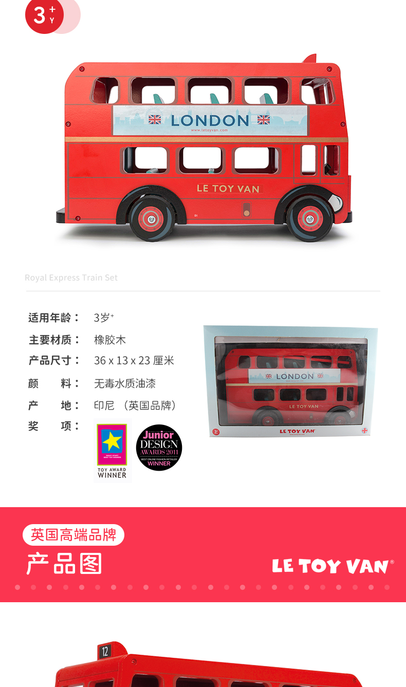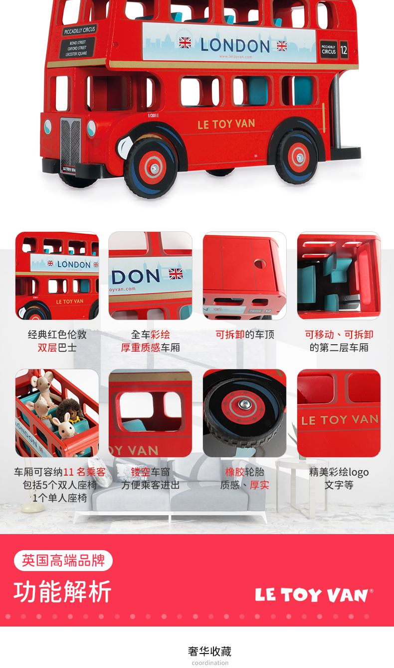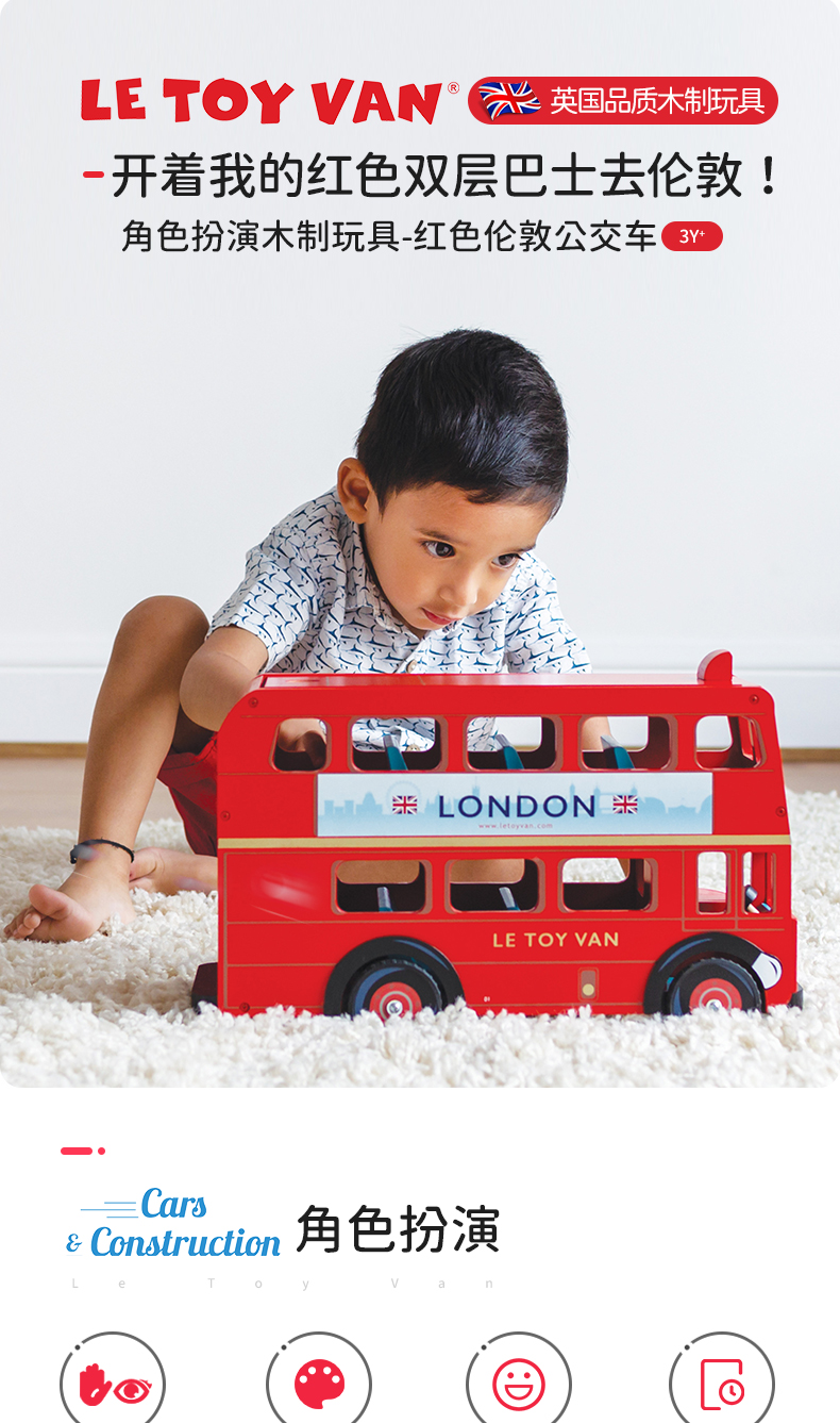 LE TOY VAN品牌 角色扮演木制玩具-红色伦敦公交车 London Bus