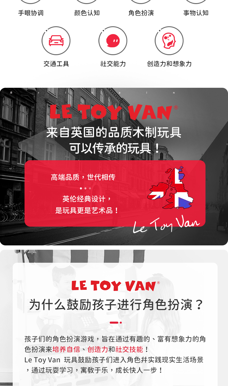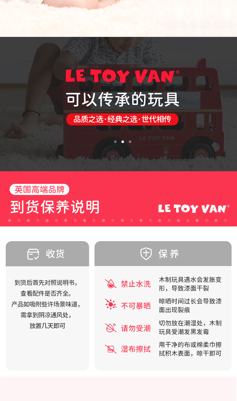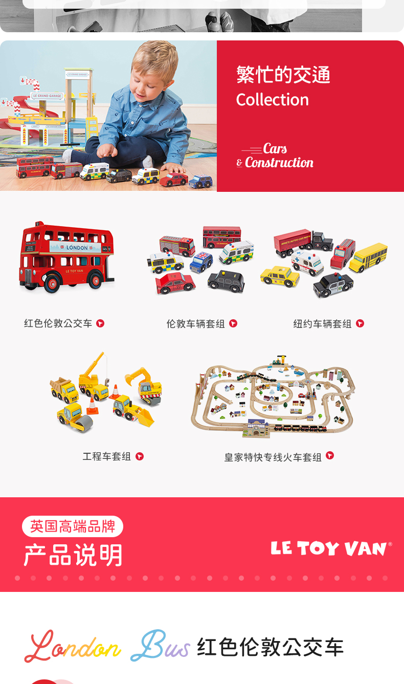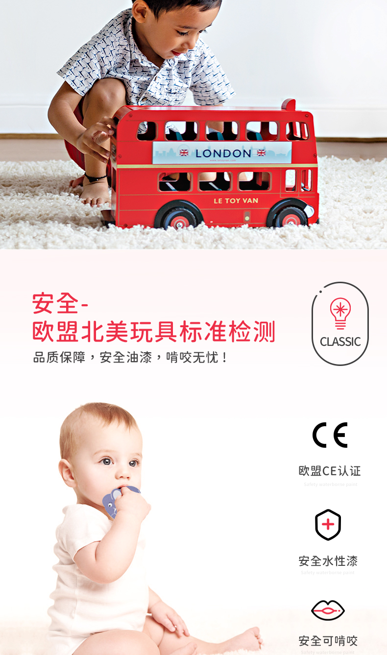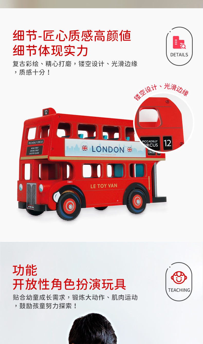 LE TOY VAN品牌 角色扮演木制玩具-红色伦敦公交车 London Bus
