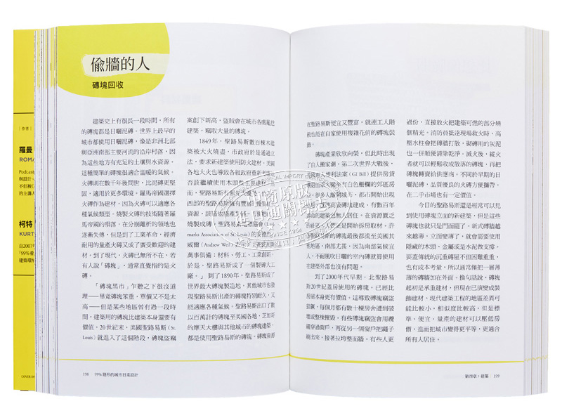 本書作者Roman Mars與Kurt Kohlstedt是Podcast節目99% Invisible的主持人與製作人,他們藉由對城市的深入研究與觀察,搭配貫穿全書、充滿溫度又時尚精緻的手繪插畫,完成這本俐落的城市探險指南。本書將吸引任何對設計、城市環境、都市規劃以及熱愛觀察城市中不為人知風貌的宅宅(Nerd)們!。