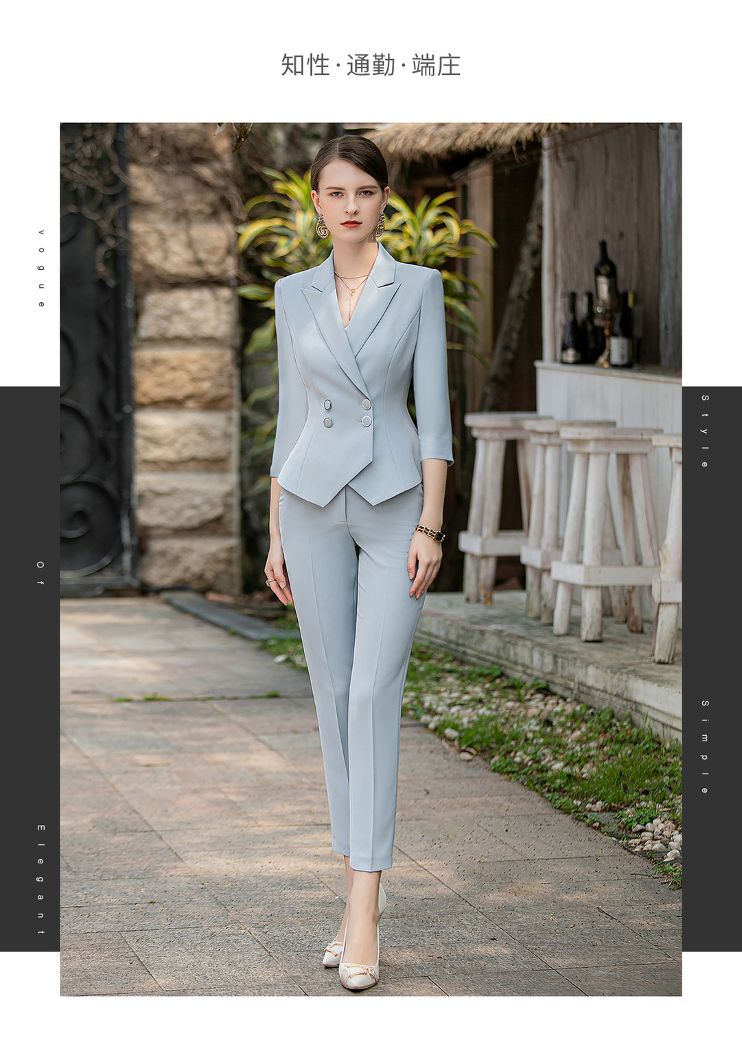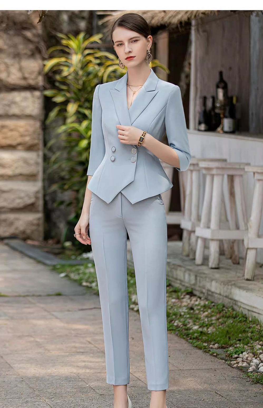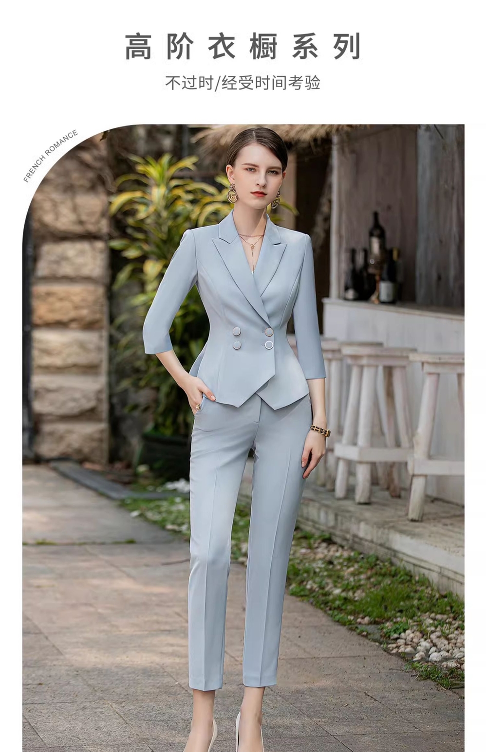 IWY/秋款七分袖蓝色西装九分裤套装正式场合招待通勤干练OL职业装CP1854