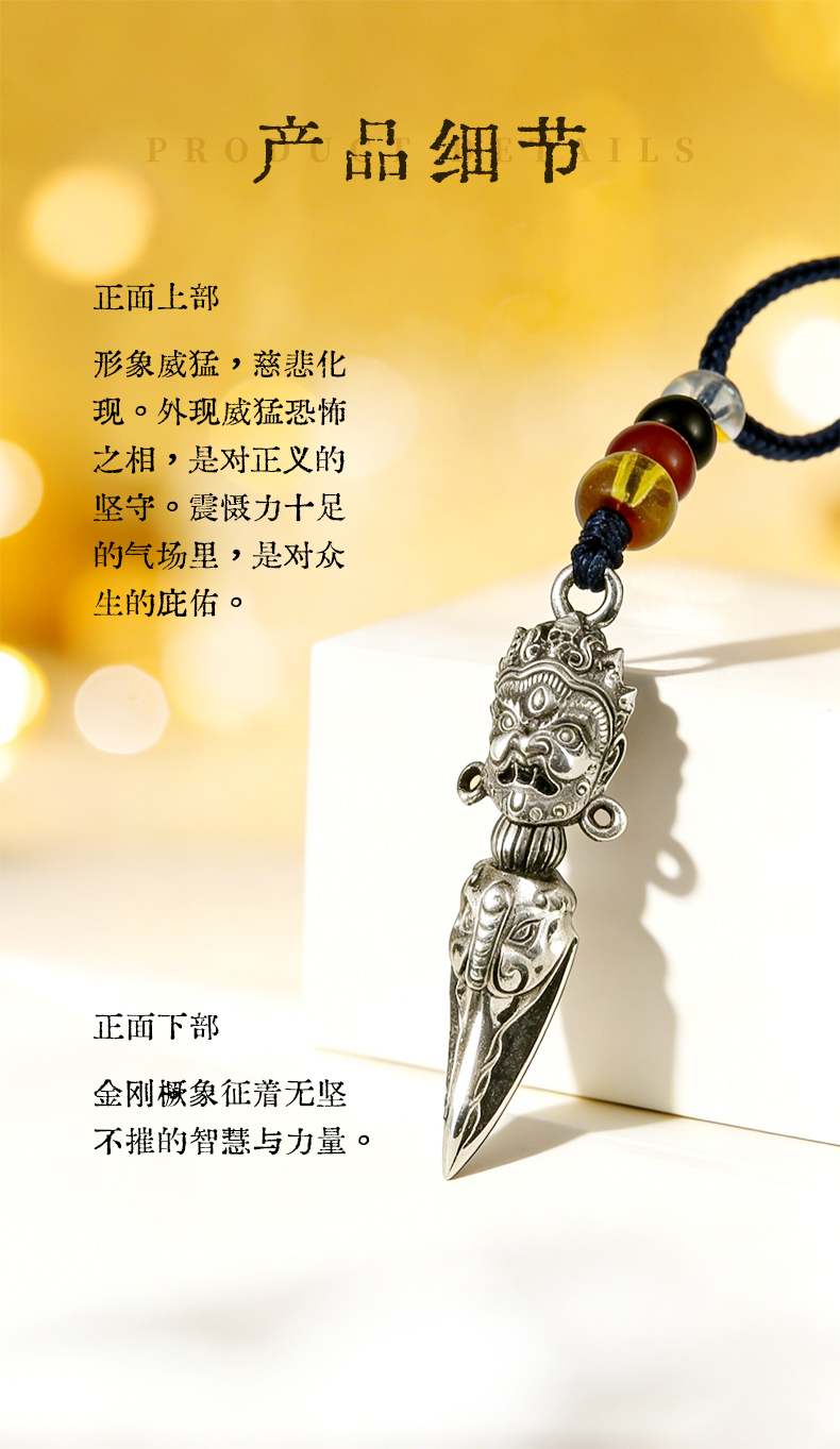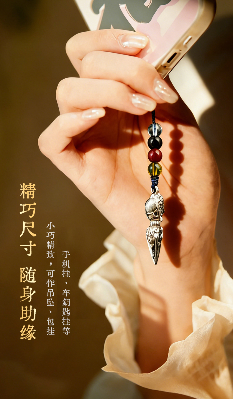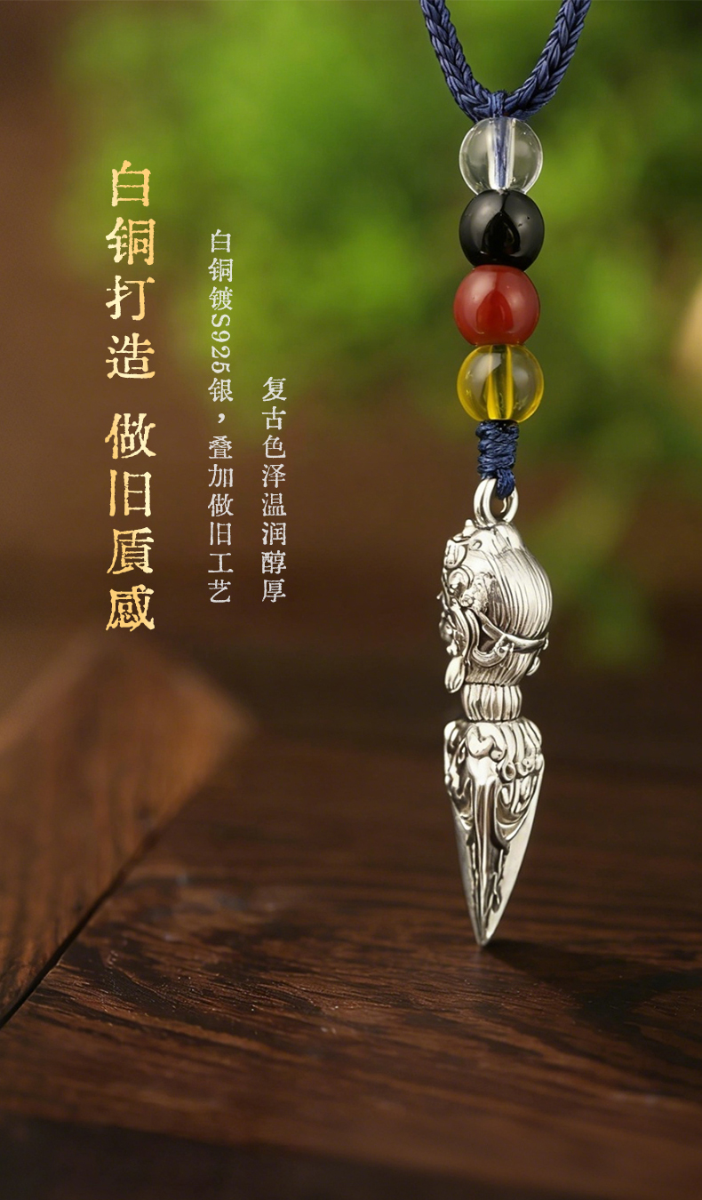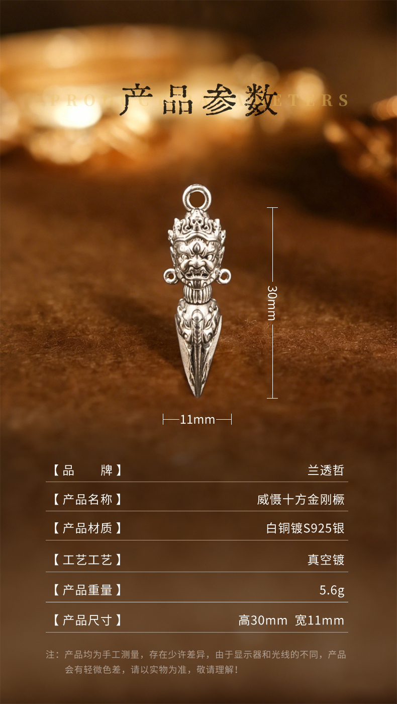 兰透哲 纯铜镀银大黑天威慑十方金刚橛挂件吊坠白铜镀s925银叠加做旧工艺