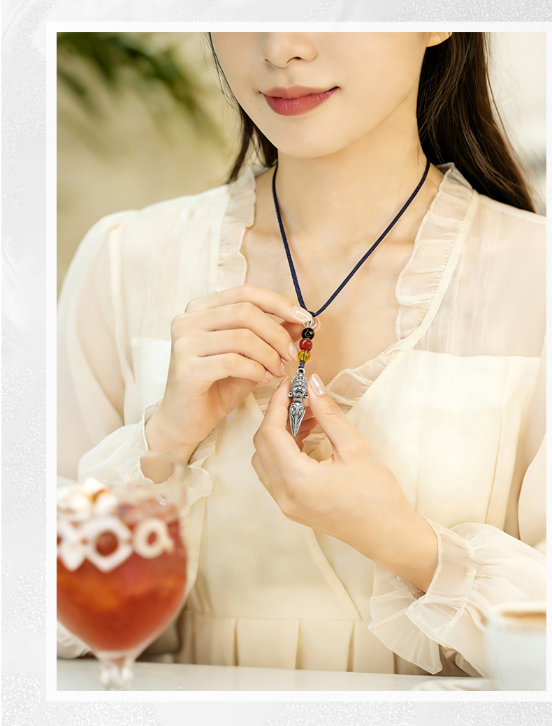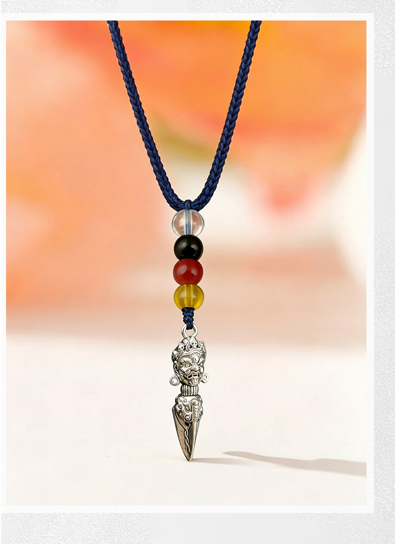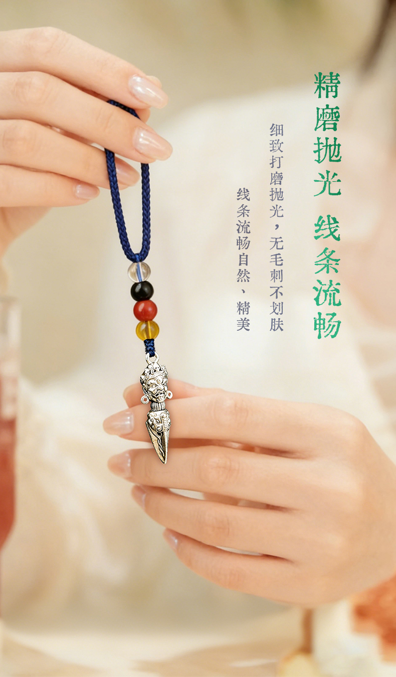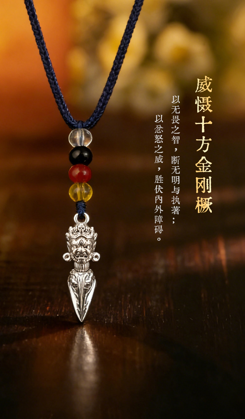 兰透哲 纯铜镀银大黑天威慑十方金刚橛挂件吊坠白铜镀s925银叠加做旧工艺