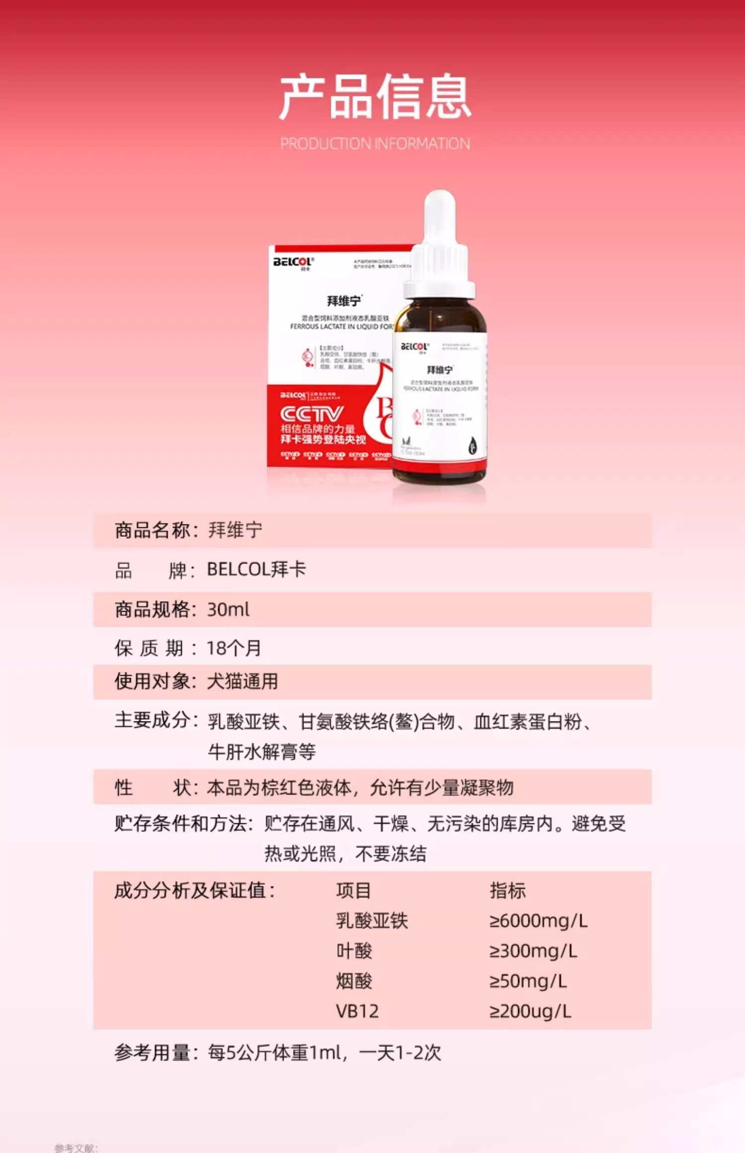 拜卡拜维宁补血肝精 猫补血猫咪贫血宠物狗狗术后生血补血肝精猫