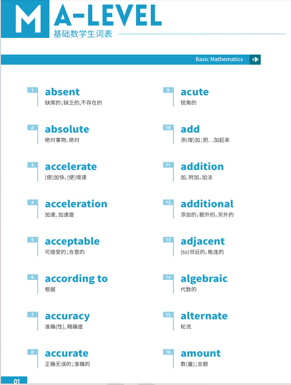 文蓝名师独家整理《Alevel必备词汇》包含科目:进阶数学、数学、物理、化学、生物、经济,共计213张。