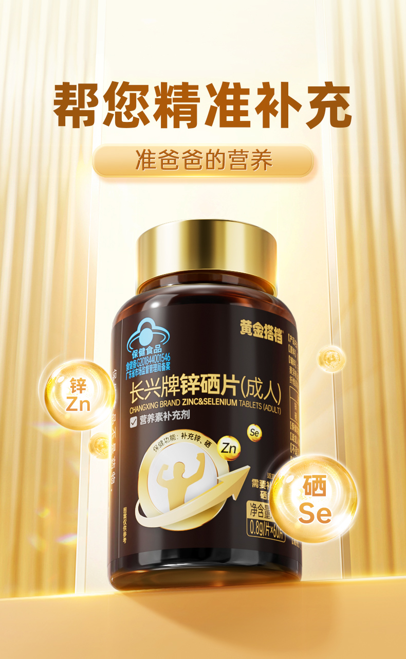 【补充锌、硒】黄金搭档锌硒片成人男性补锌补硒 60片/瓶