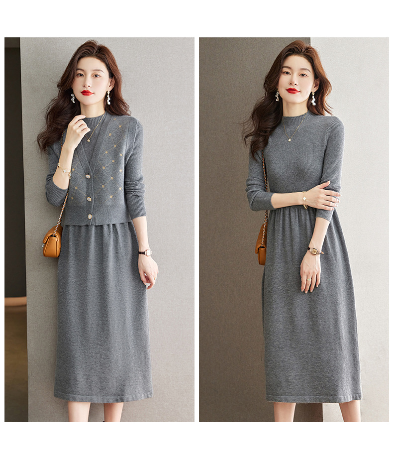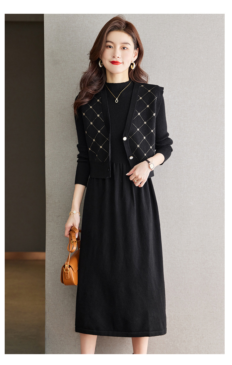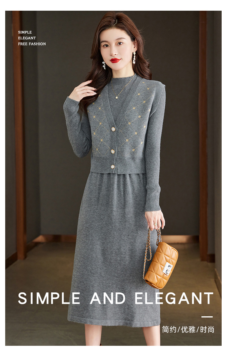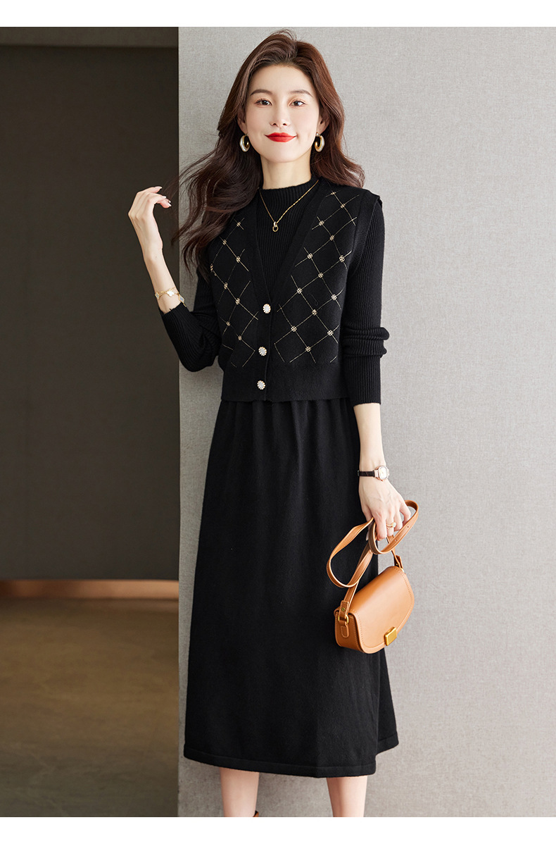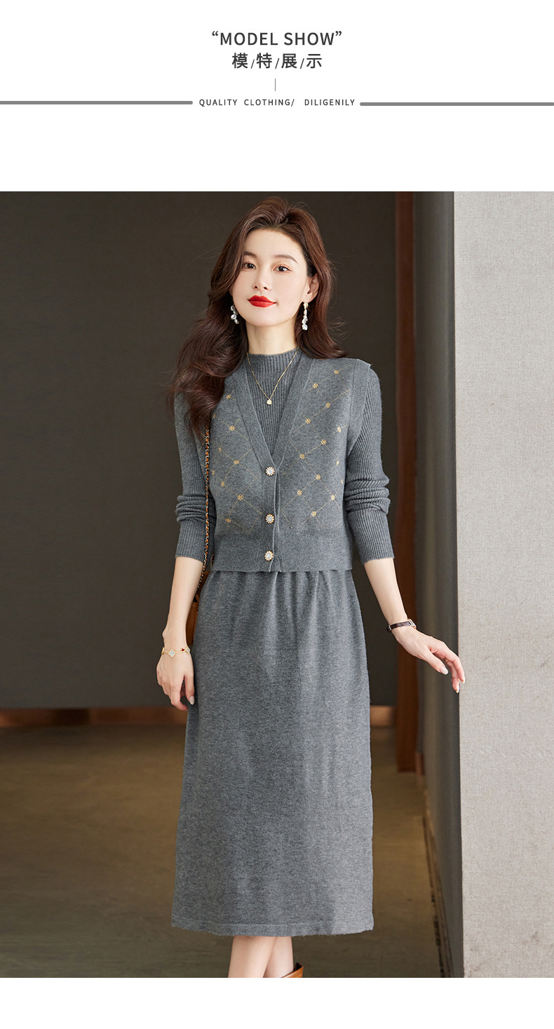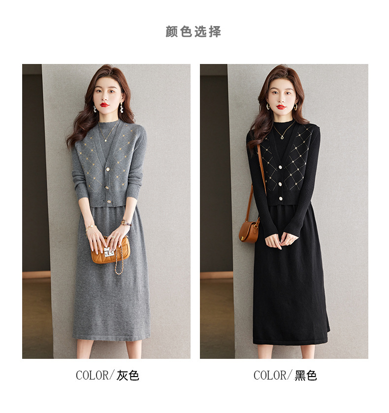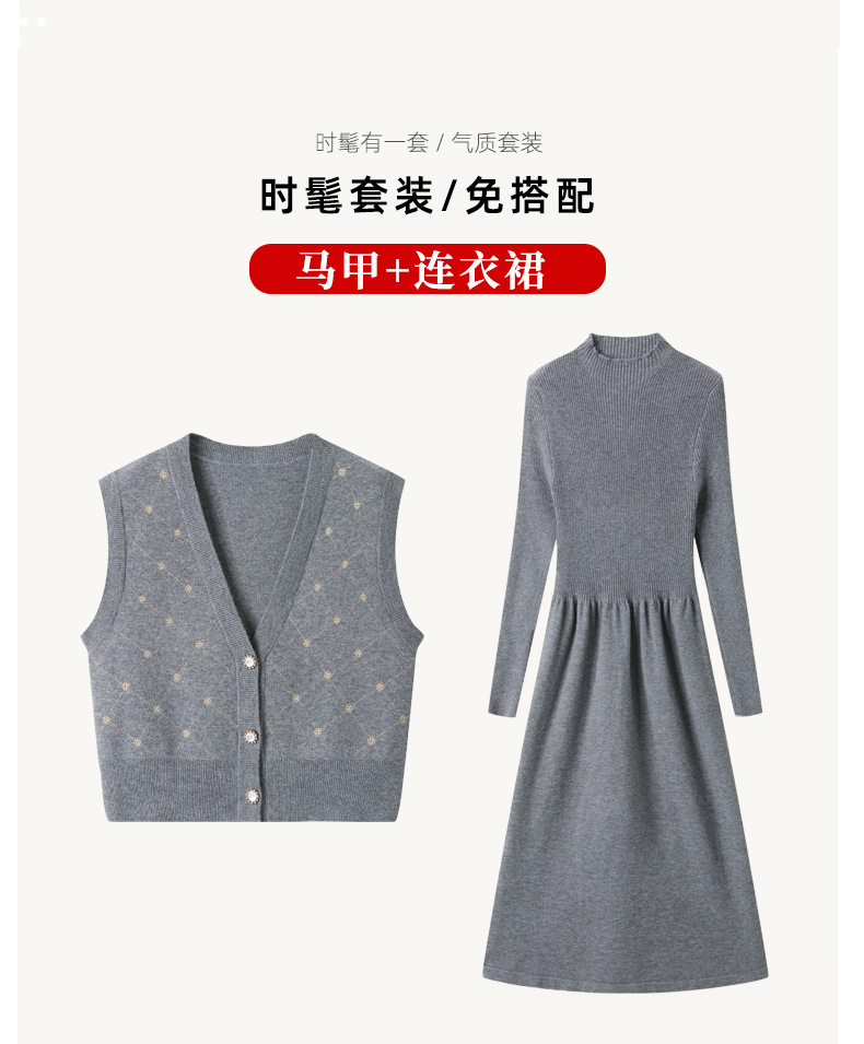 针织马甲配连衣裙两件套,洋气质毛衣裙子套装CC-22-8283