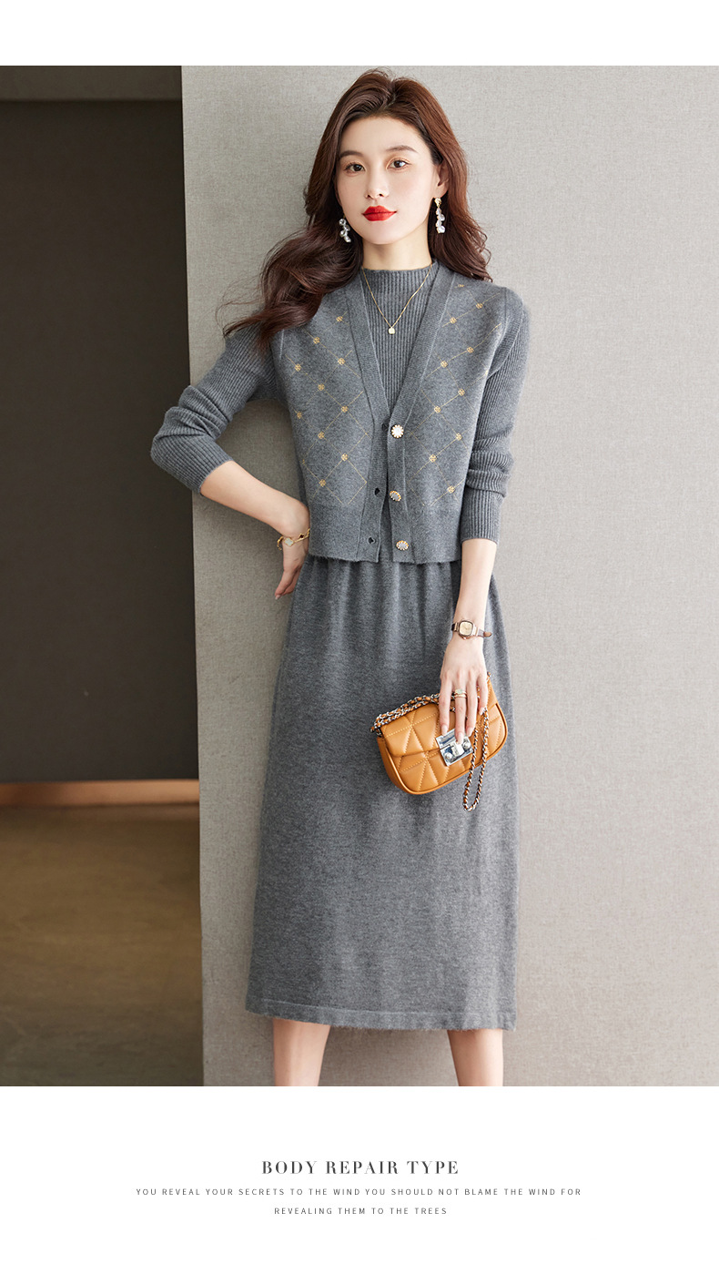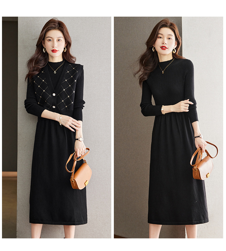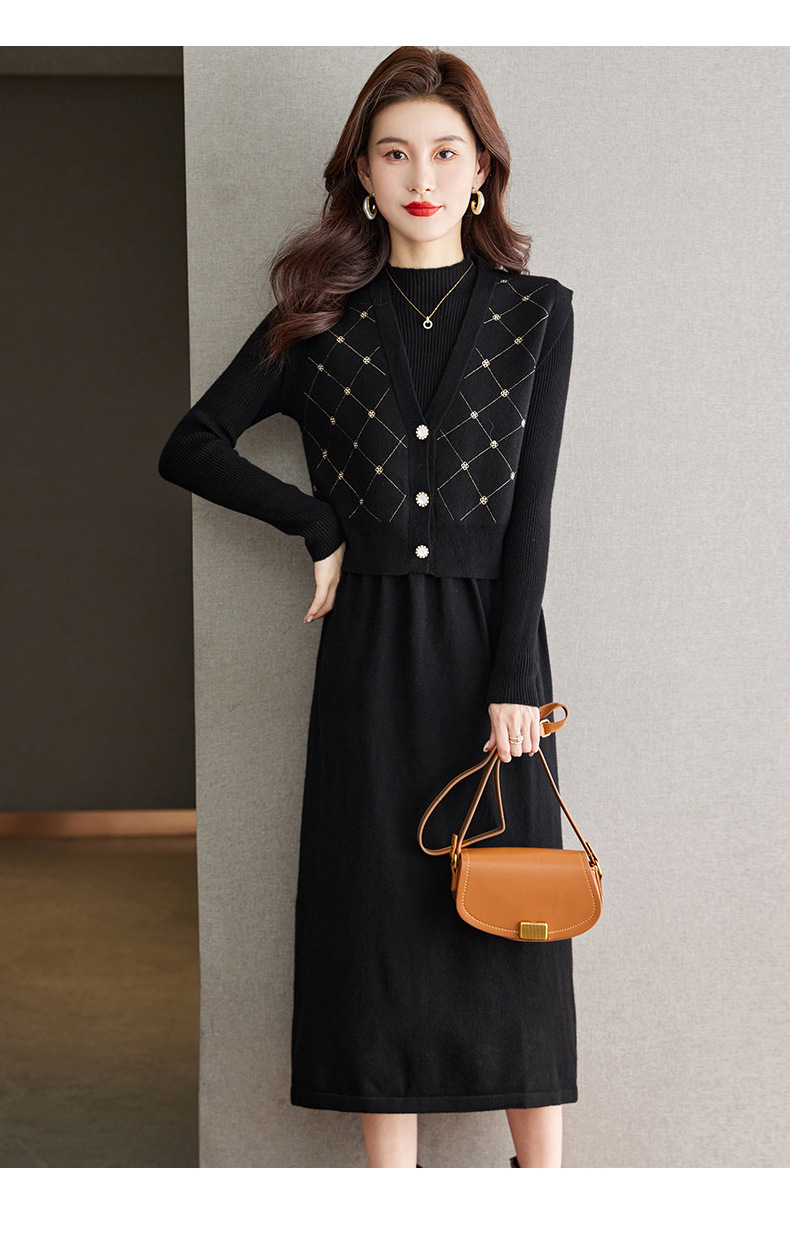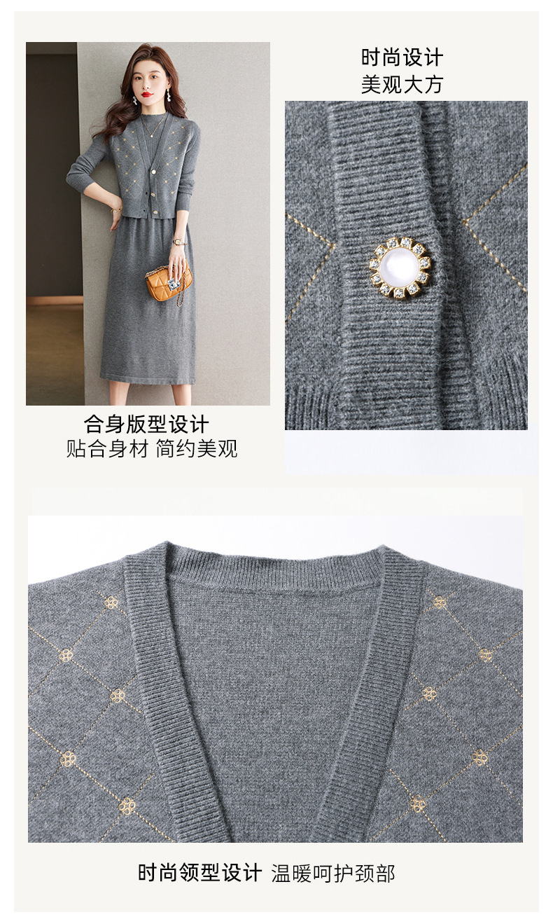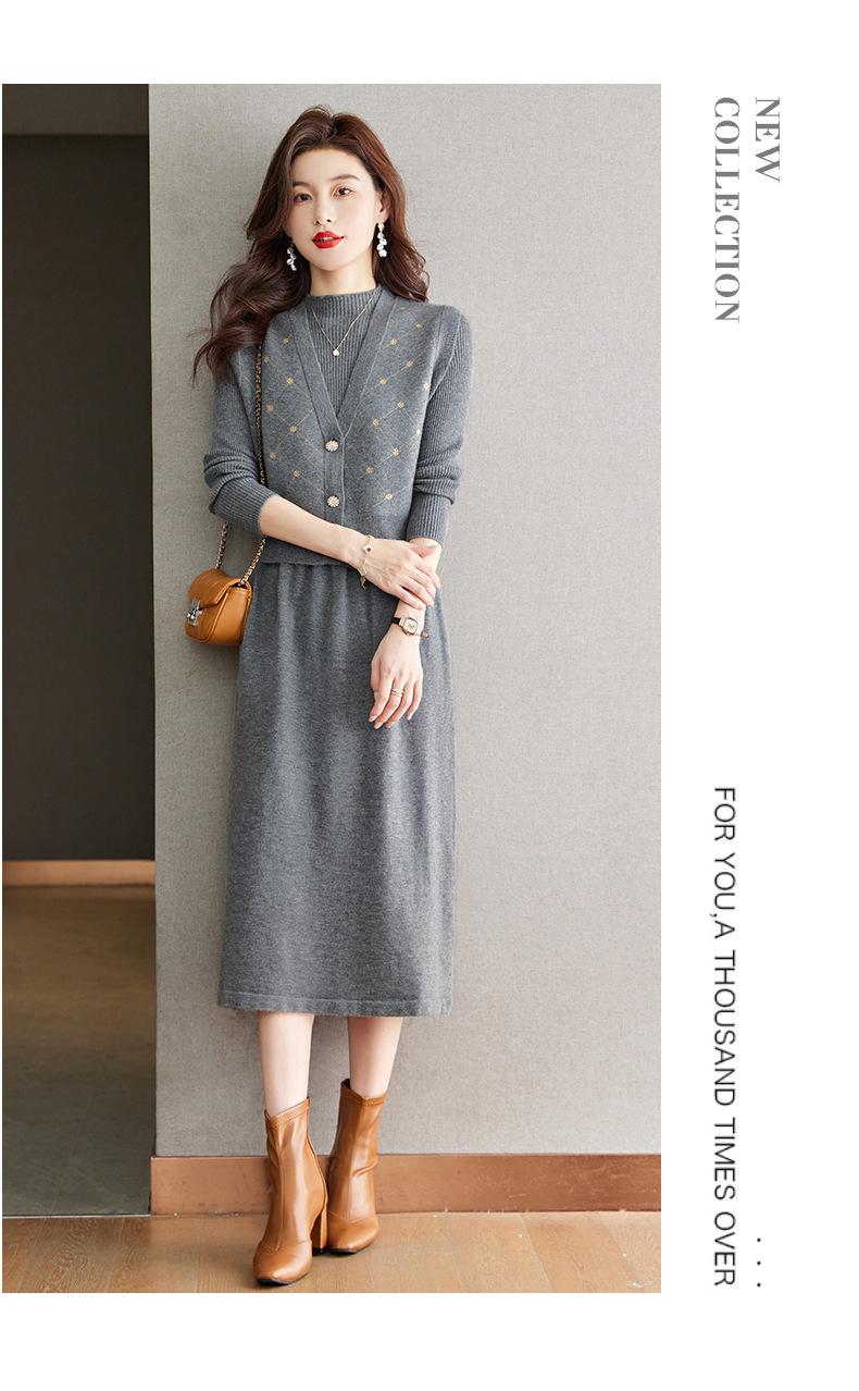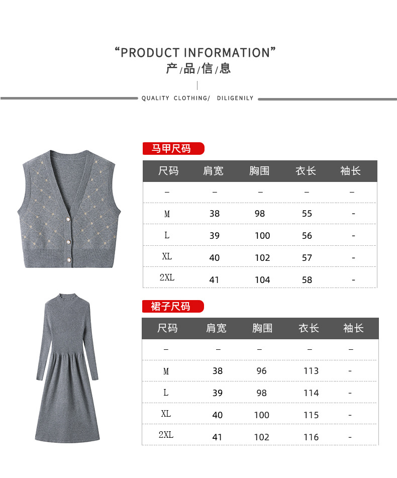 针织马甲配连衣裙两件套,洋气质毛衣裙子套装CC-22-8283