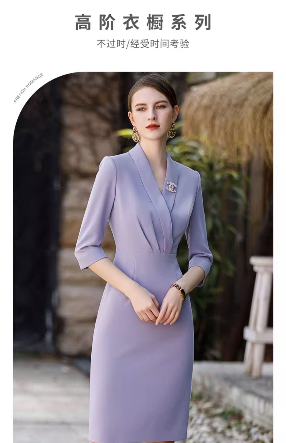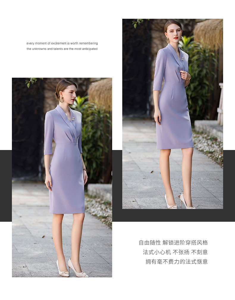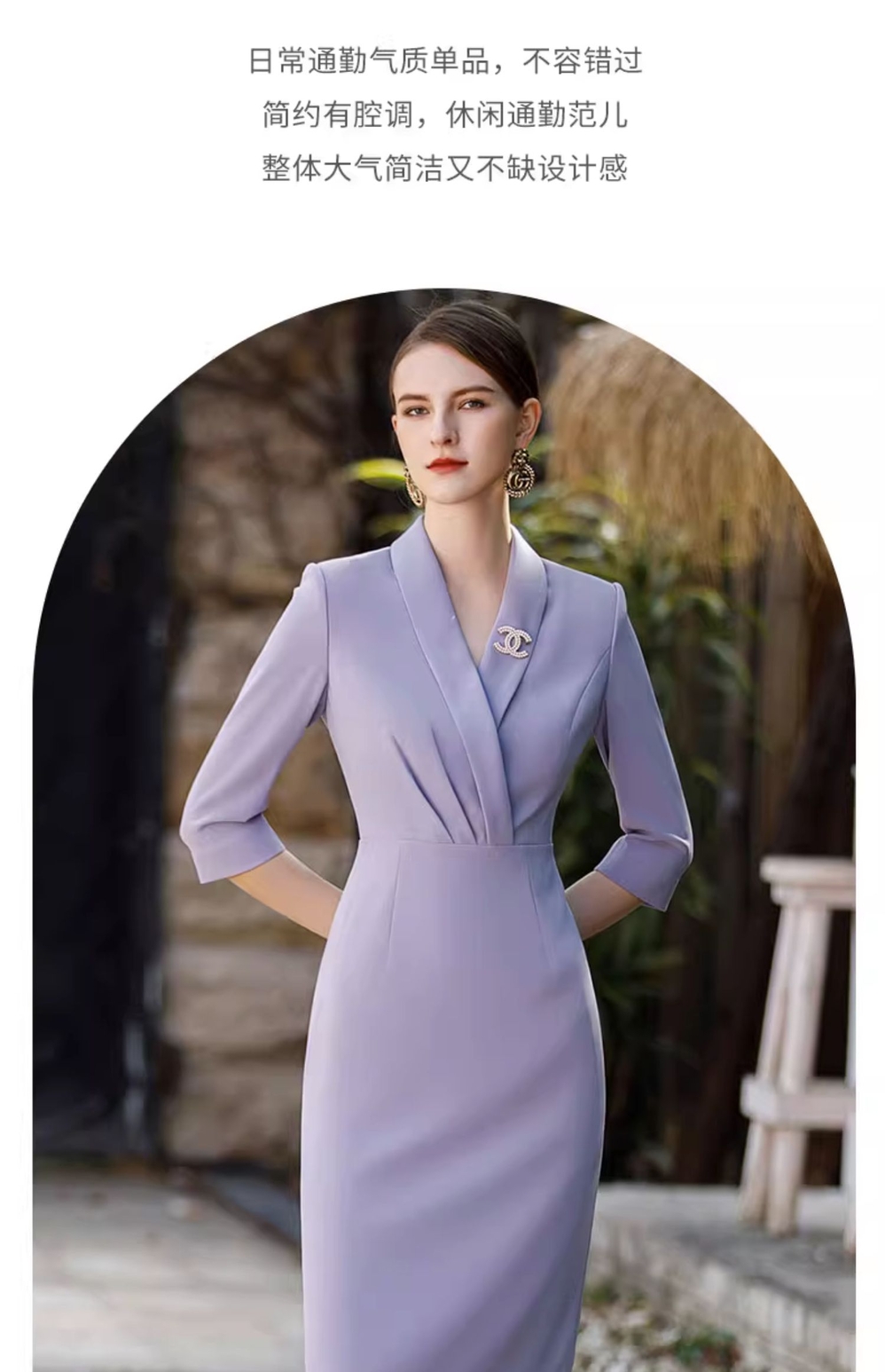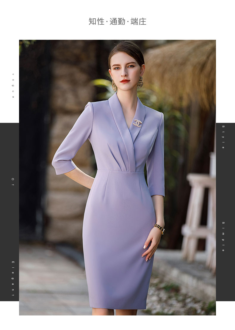 IWY/洋气紫色职业连衣裙女御姐范V领气质中袖西装裙子职场通勤服装Q886