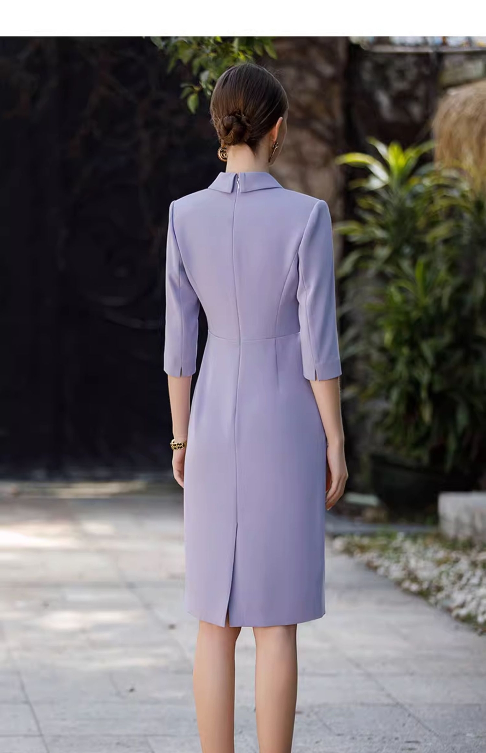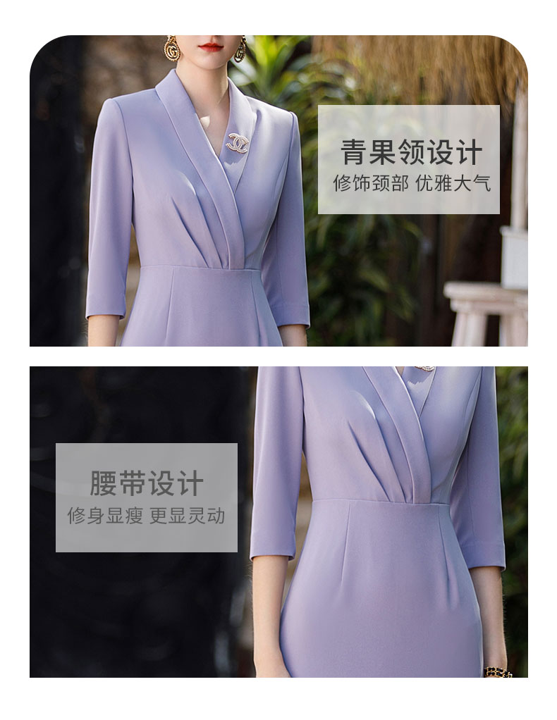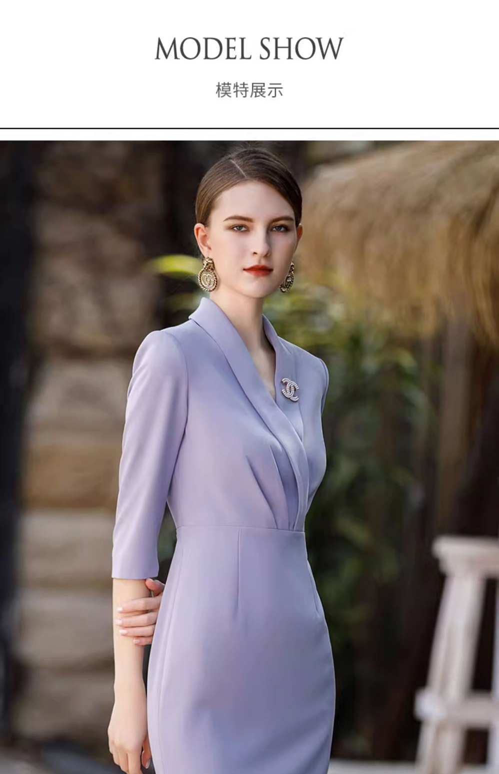 IWY/洋气紫色职业连衣裙女御姐范V领气质中袖西装裙子职场通勤服装Q886