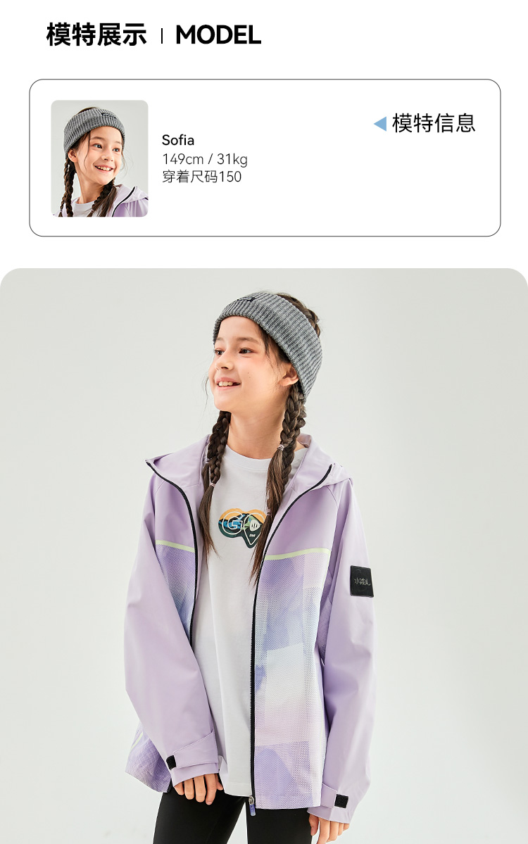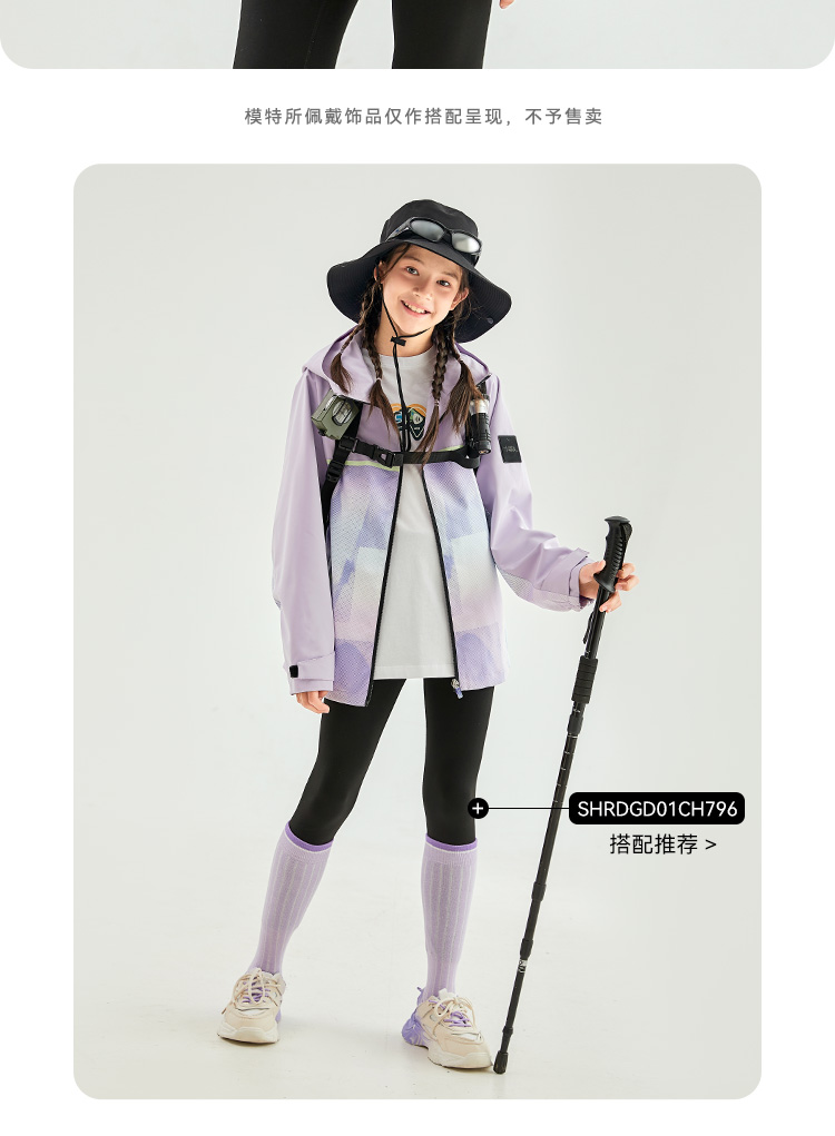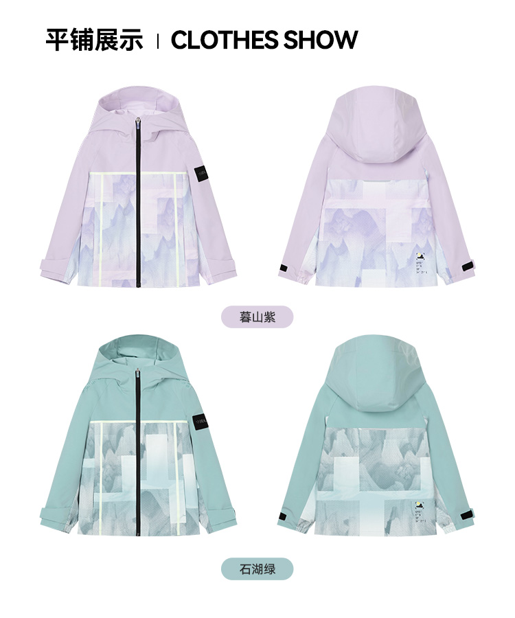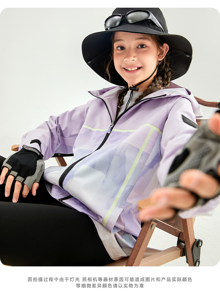 水孩儿童装24春季新款儿童三防外套男童时尚轻户外运动薄上衣女童拼色连帽衫
