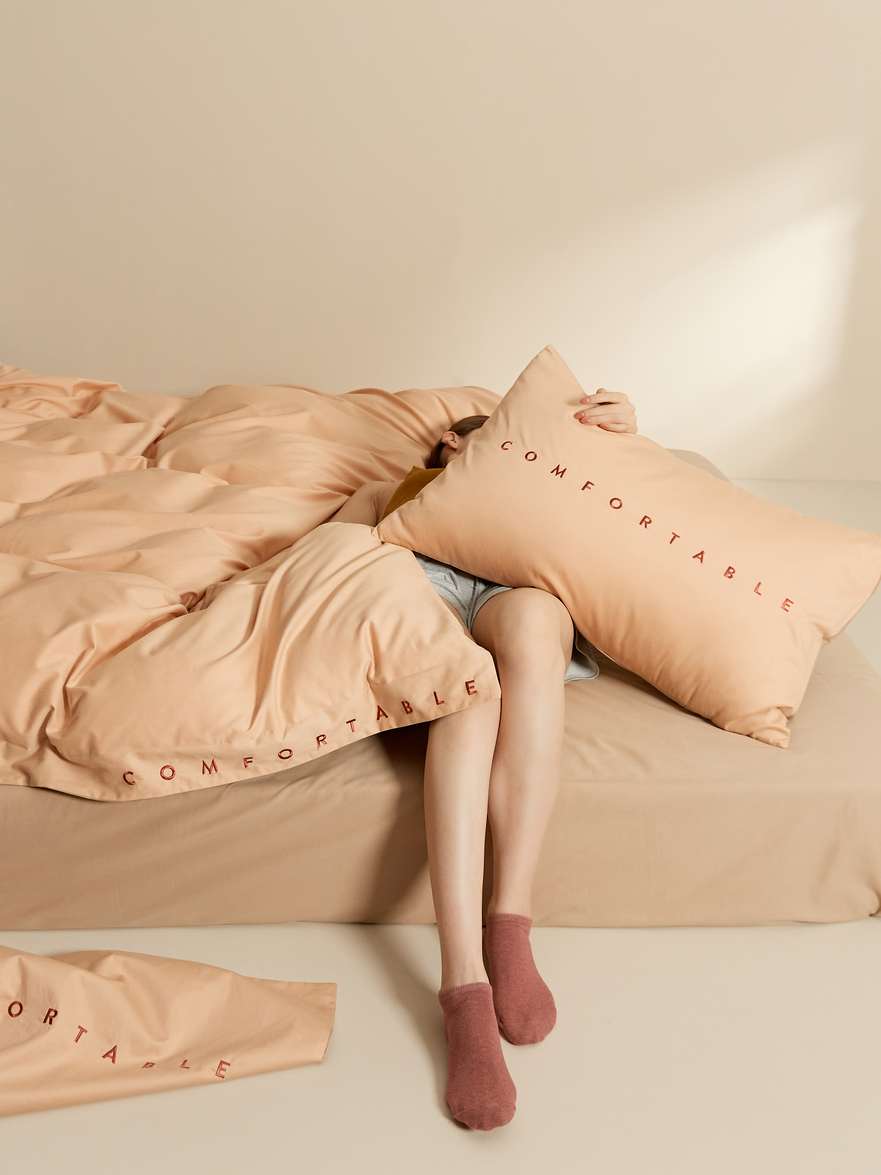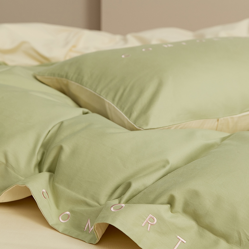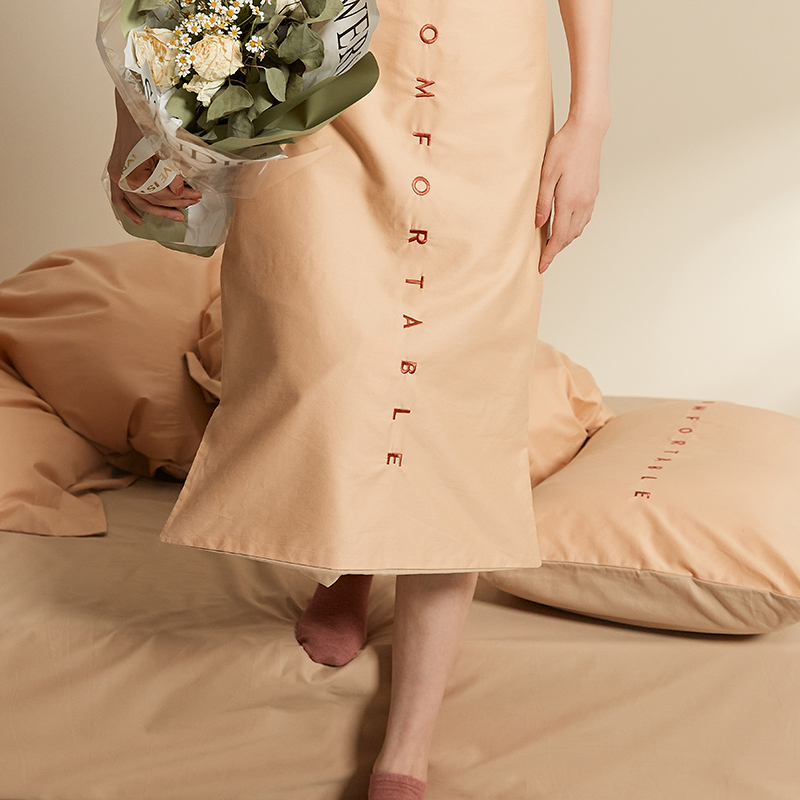 面料采用Pima棉(匹马棉),经染色后,色泽鲜明和光亮;质地自然柔软,手感顺滑,悬垂感特别强,织出来出来的布料韧性十足,而且棉的长度比一般棉花长35%、韧度比一般的棉花强45%,是高级磨毛床品极佳的原料。100支高密度纱线织造,碳素磨毛工艺处理,面料细腻柔软,缎纹交织提升面料的厚实度。比普通纤维更细长,耐磨、透气、柔软亲肤。重点是不掉毛哦!每一根纱线都是大自然的馈赠,精心提炼每一株棉花,还原真实棉的质感。