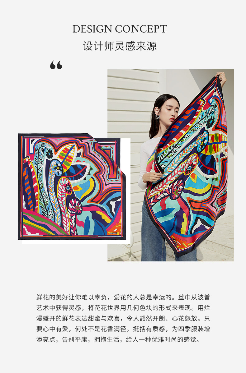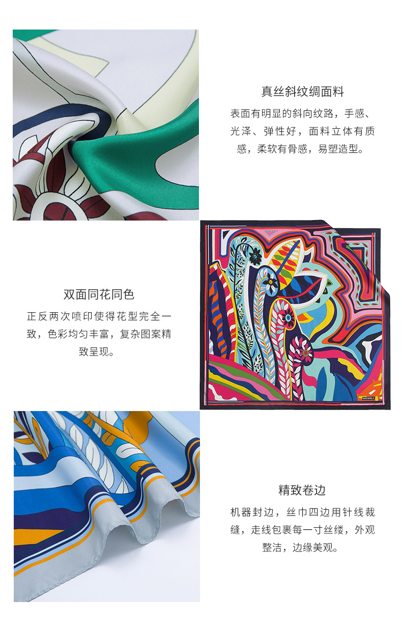 万事利“春和景明”63厘米双面印花真丝中方巾