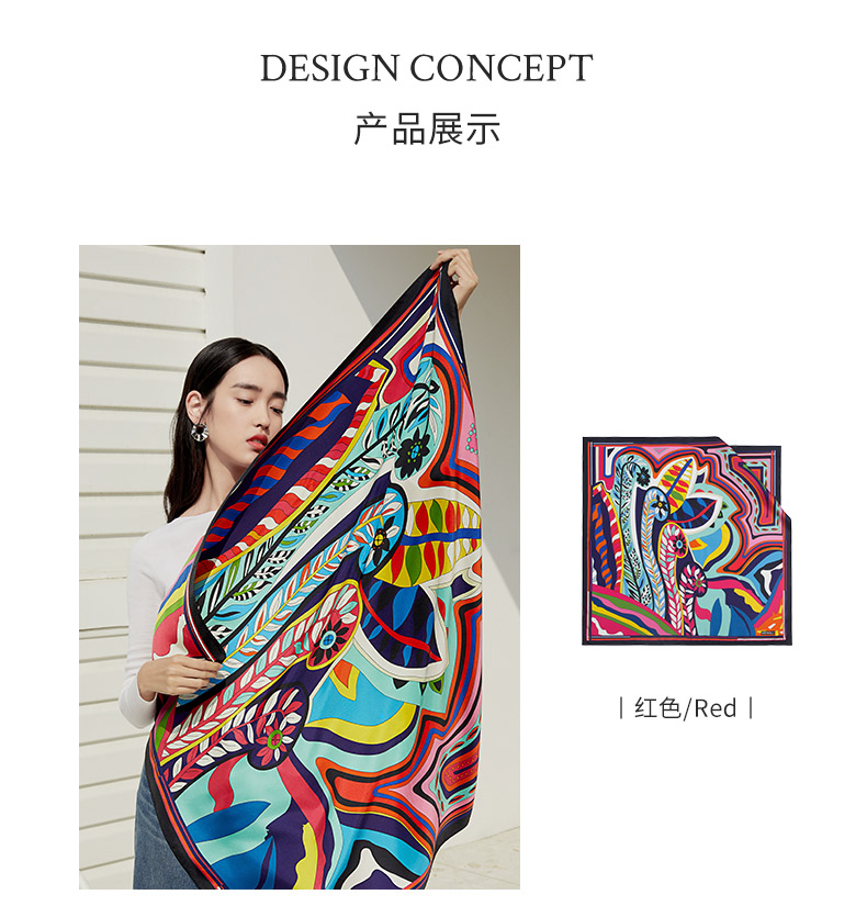 万事利“阑珊”88厘米双面印花真丝大方巾