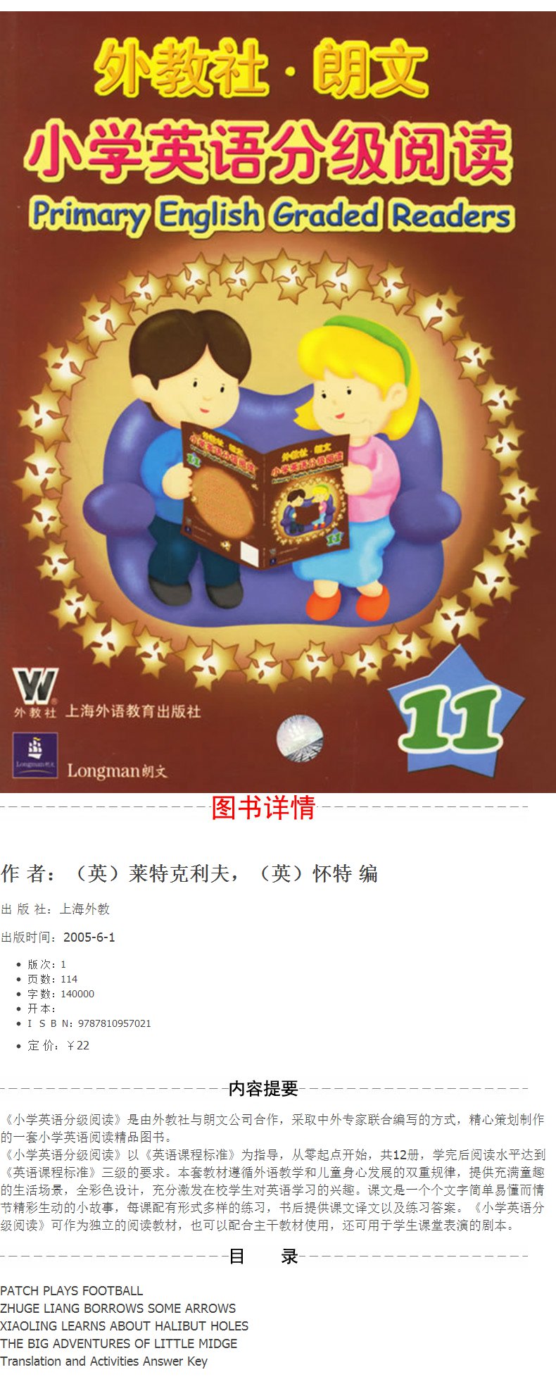 正版 外教社.朗文 小学英语分级阅读11(含光盘) 上海外语教育出版社(含光盘)