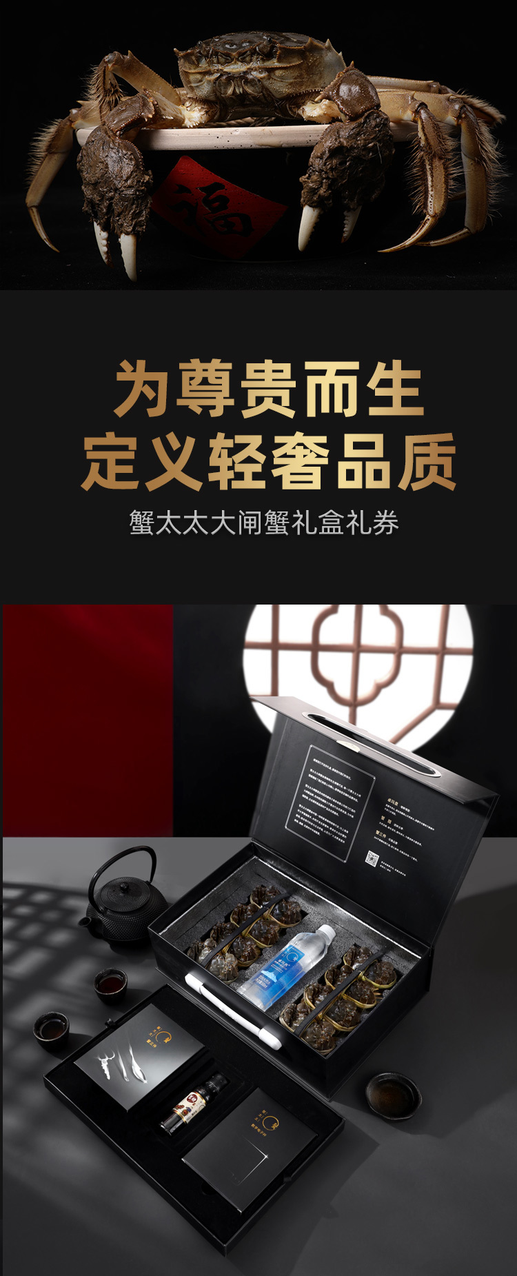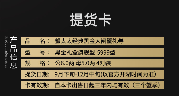 蟹太太——黑金礼盒旗舰5999型(蟹卡)内配:公6.0两*4只+母5.0两*4只