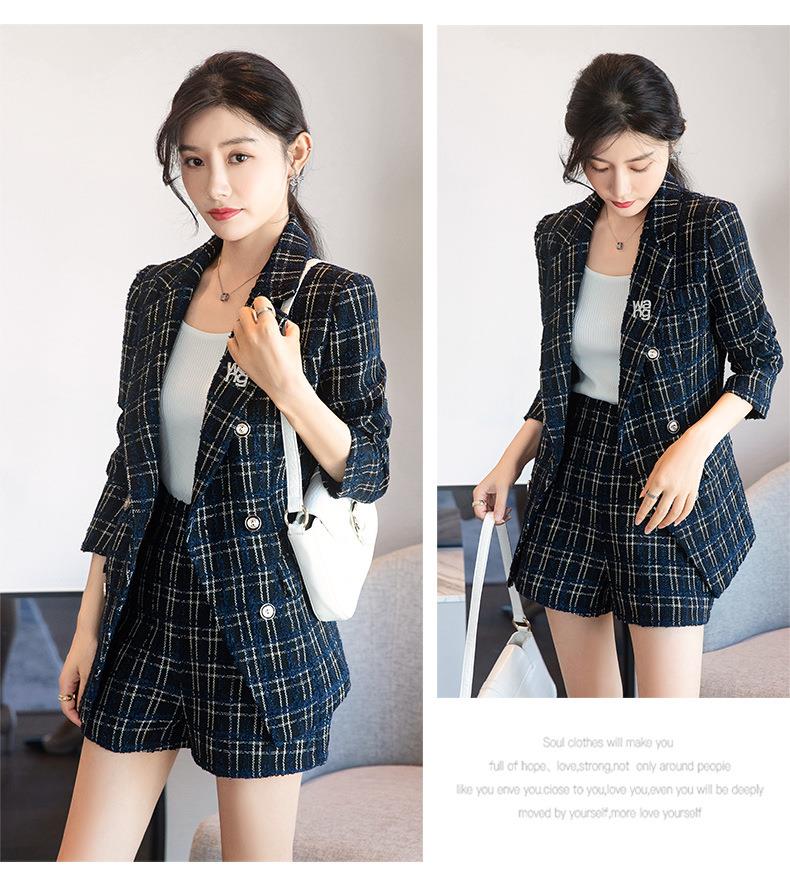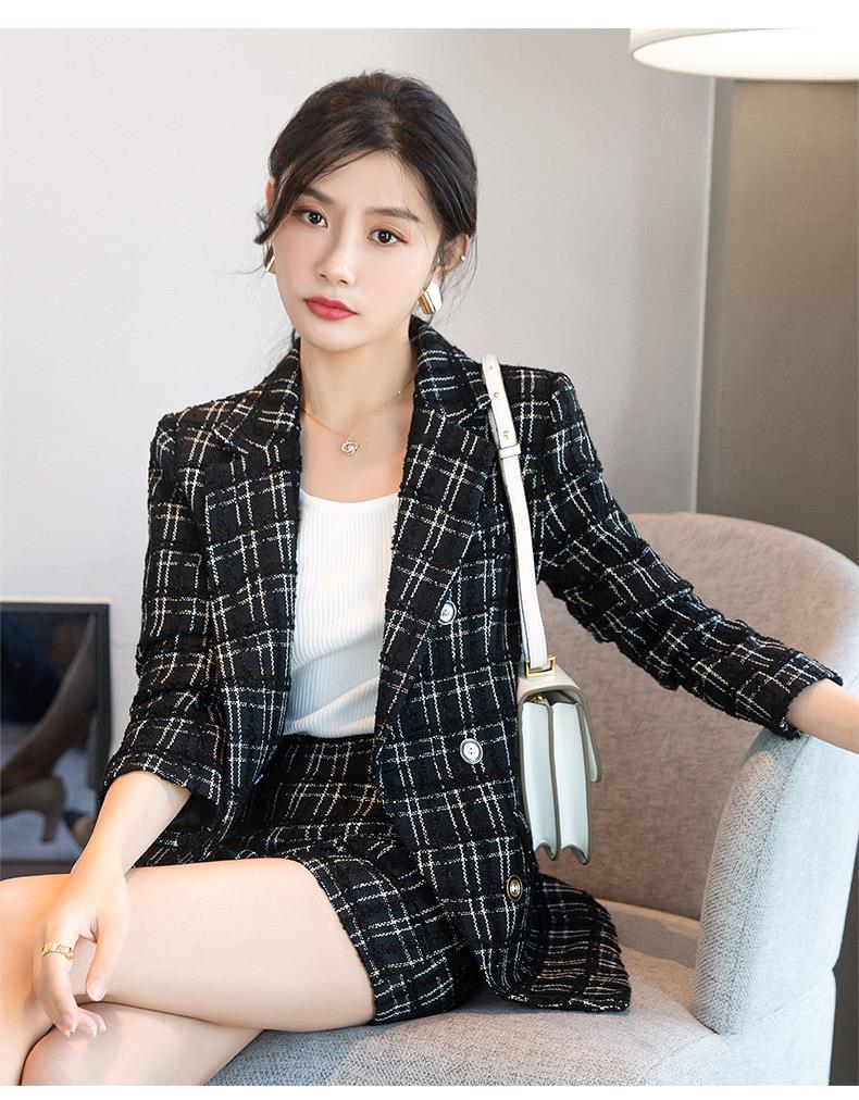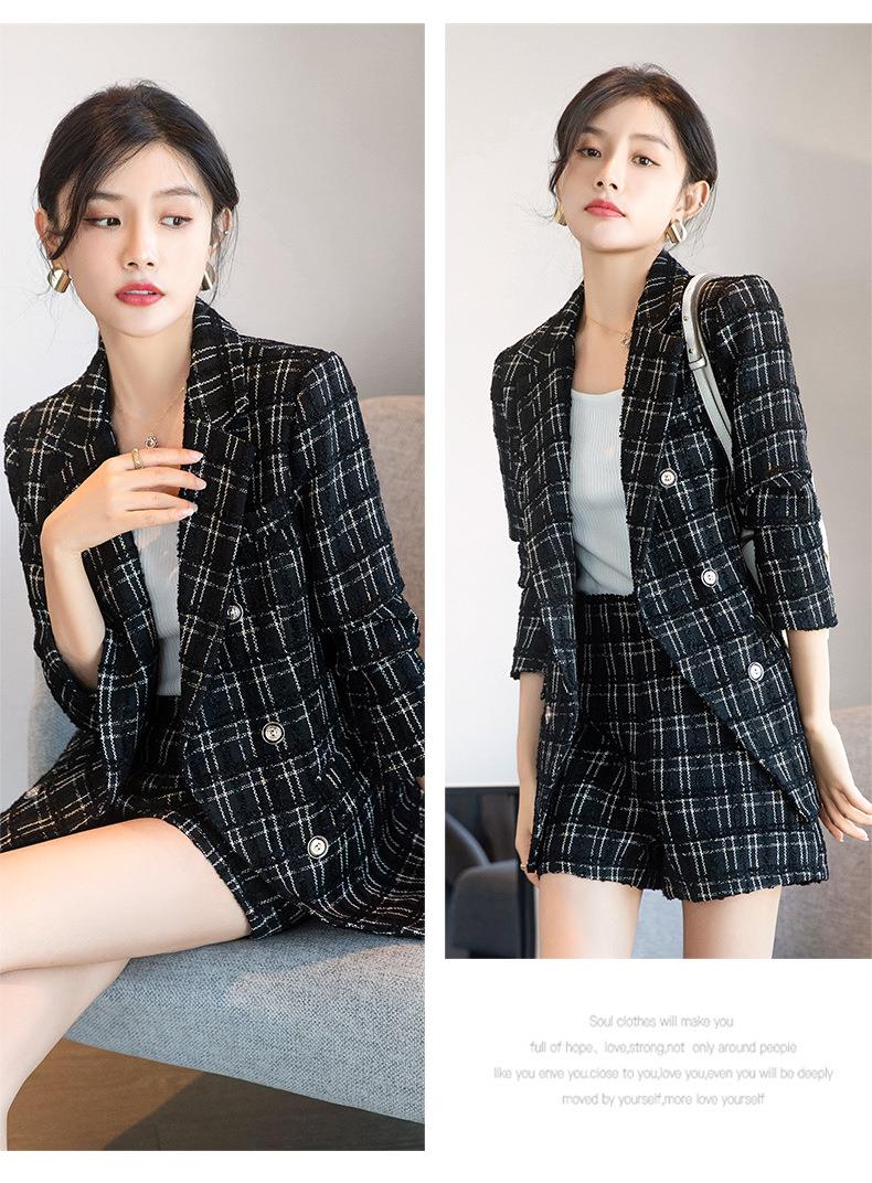 娜璐多 时尚套装女2022秋季新款西装外套纯色休闲西装通勤正装两件套套装