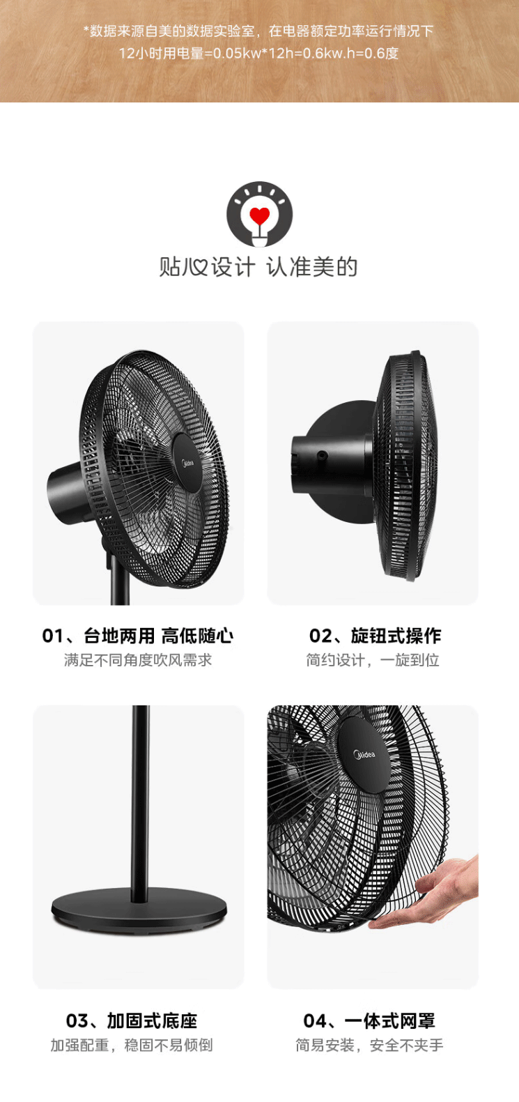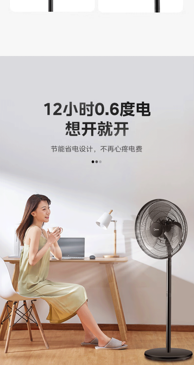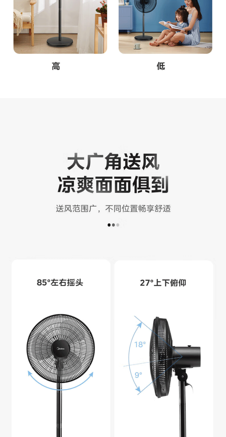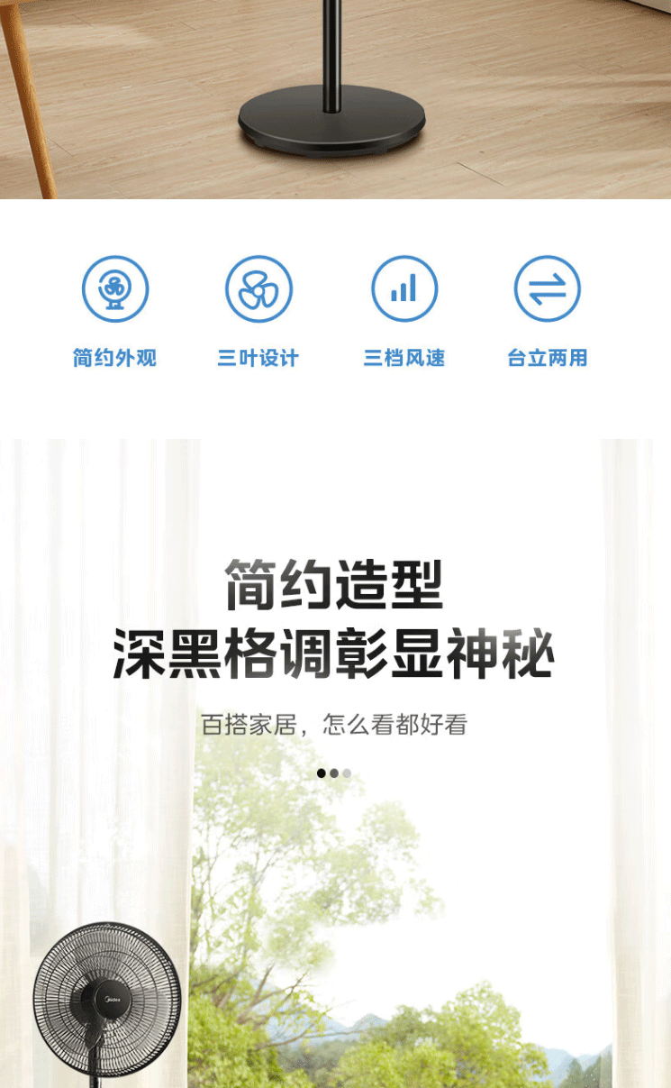美的(Midea)落地电风扇 机械式 强风轻音 16吋 台立两用 3档风速 可调大角度 左右送风 3档强劲送风FSA40UC