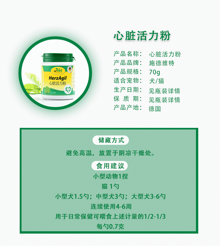 德国cdvet施德维特心脏活力粉增强免疫强健心脏心脏肥大血管回流异常70g