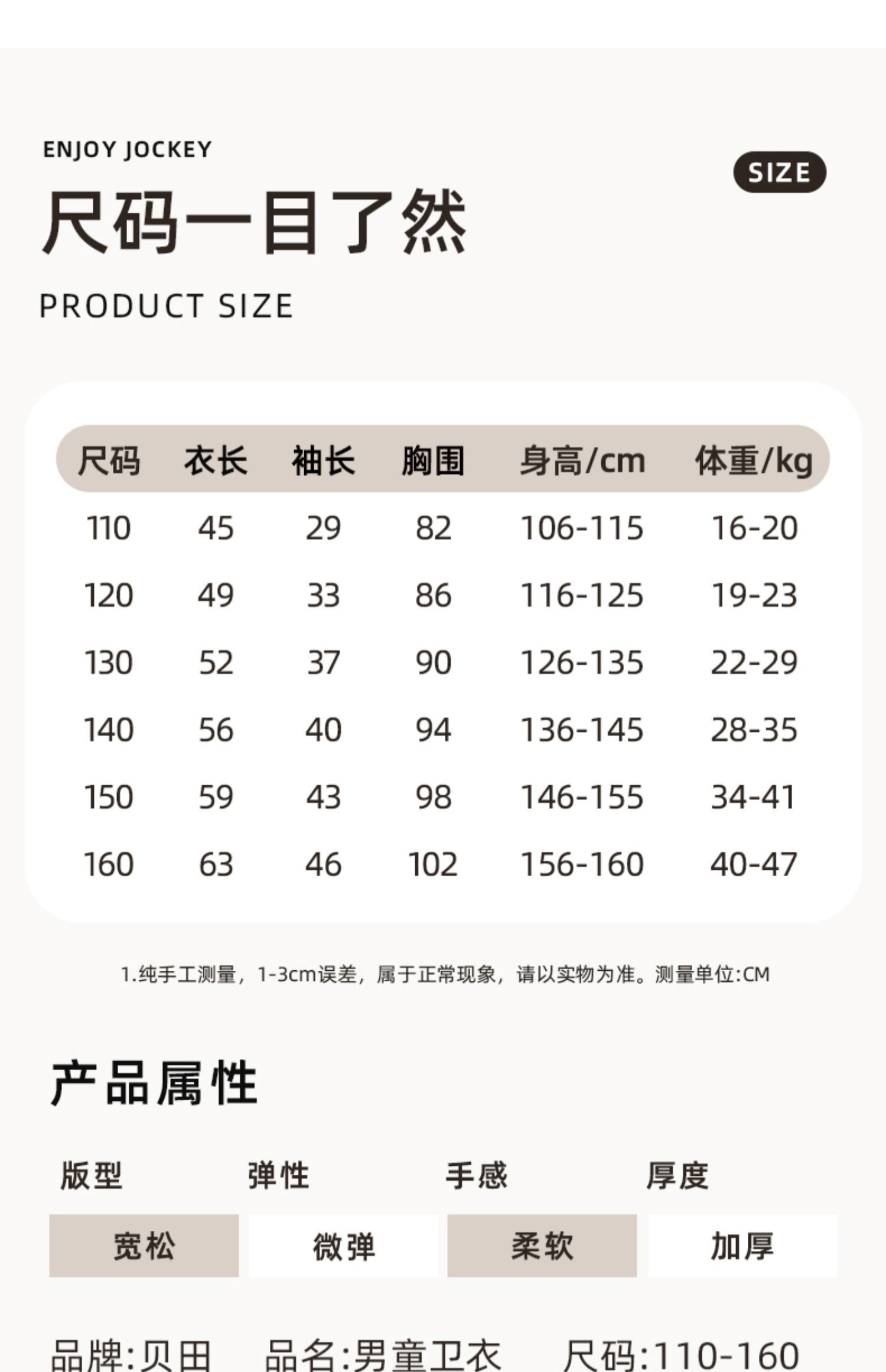 贝田童装男童卫衣加绒加厚冬季儿童帅气炸街男孩2024新款打底衫潮