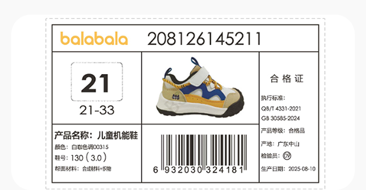 【balaOne】巴拉巴拉宝宝学步鞋男女童鞋2025新款春秋防滑户外鞋