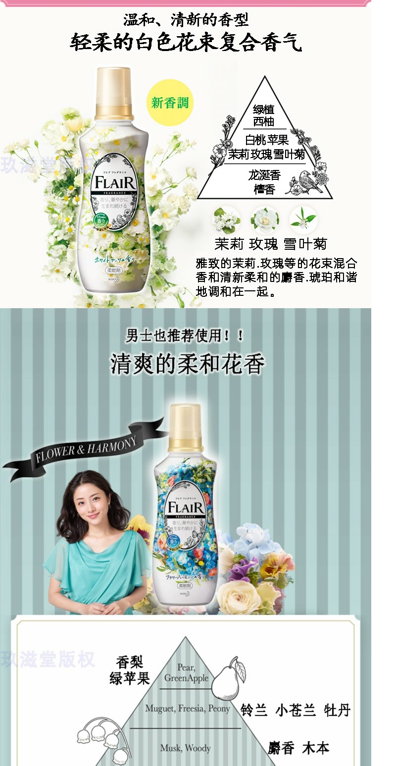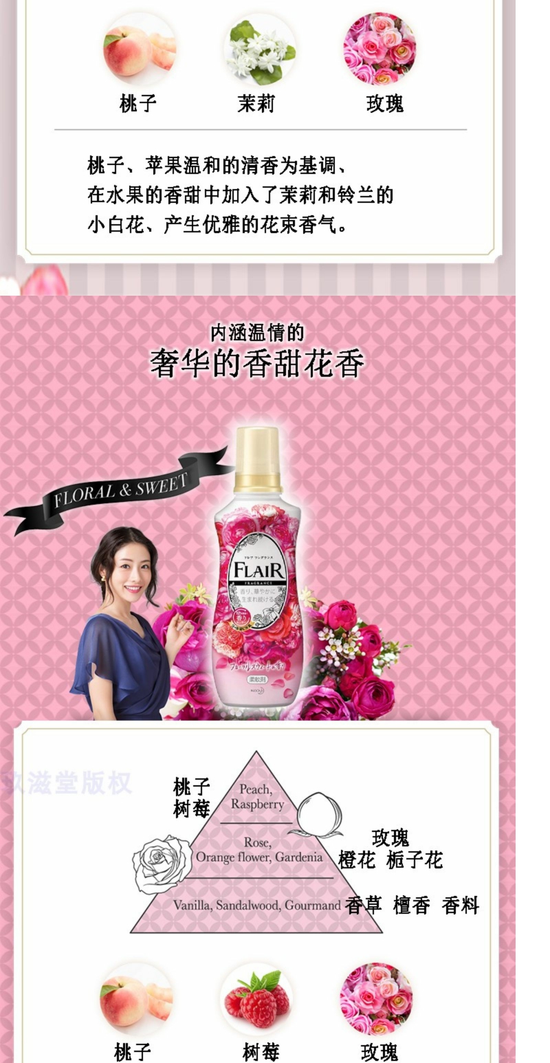 【YZ】日本原装KAO花王FLAIR衣物柔顺剂抗菌芳香抗皱防静电柔软剂540ML