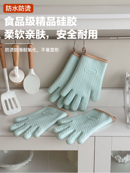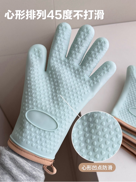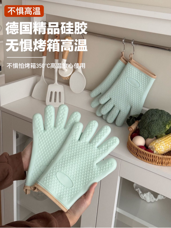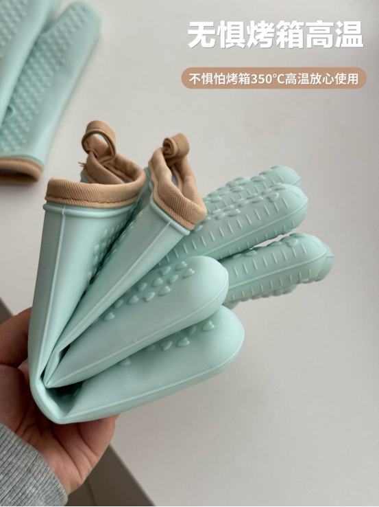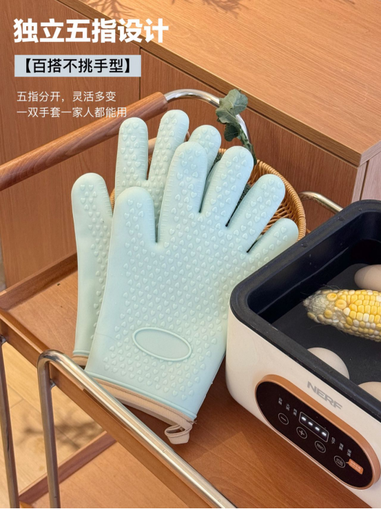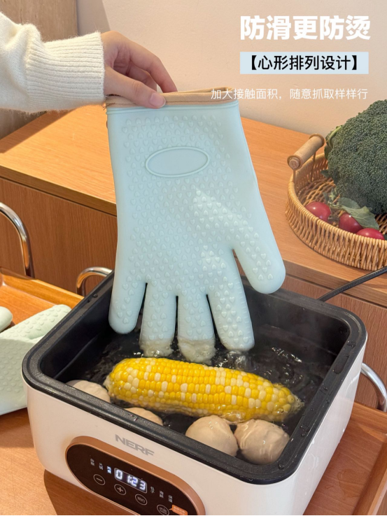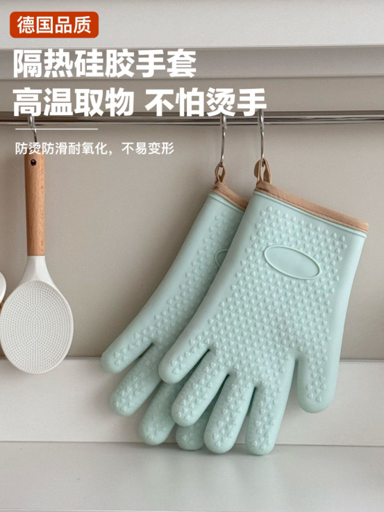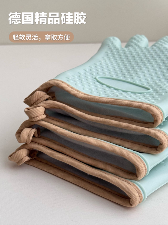 【为什么万千主厨都选SOOKIE®隔热手套?】 同样是隔热手套,我们用心更多一点! SOOKIE®不仅采用加厚防烫硅胶与内置隔热棉布打造双重防护,更在细节处见真章:独立五指设计让抓握灵活自如,防滑纹理确保取物稳如泰山,食品级材质遇油污一冲即净。 与传统手套相比,我们既避免了布艺易吸油难清洁的尴尬,又解决了普通硅胶手套易滑落的隐患。 经实验室测试,可抵御350℃高温,让您从容应对烤箱、蒸锅、空气炸锅等多种烹饪场景。 选择SOOKIE®,选择的不仅是一双手部护具,更是安心下厨的智慧之选!