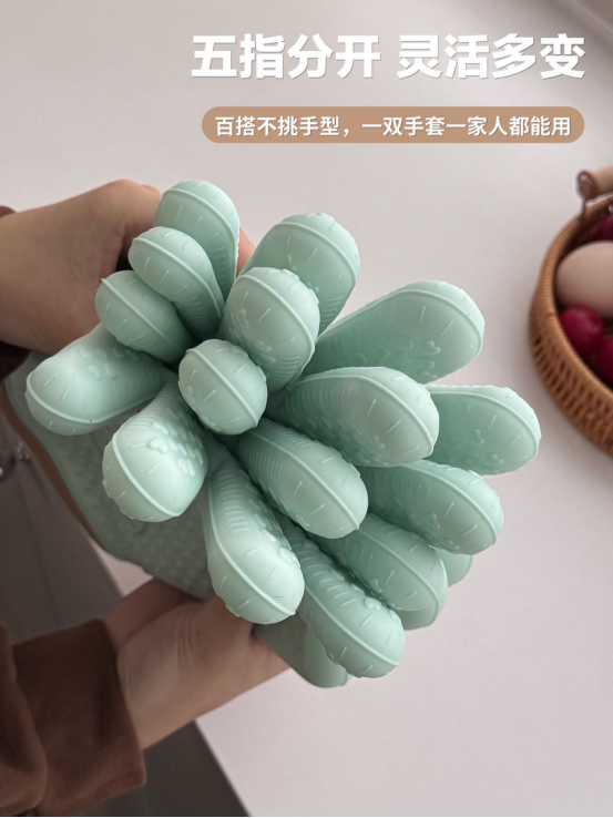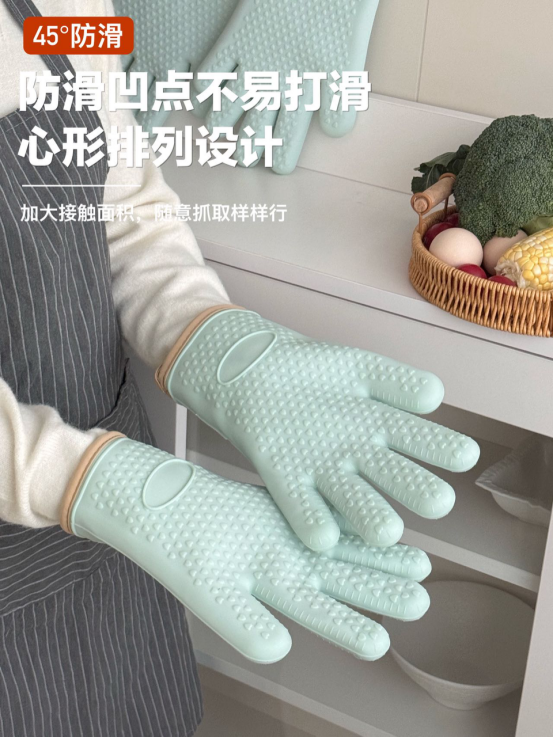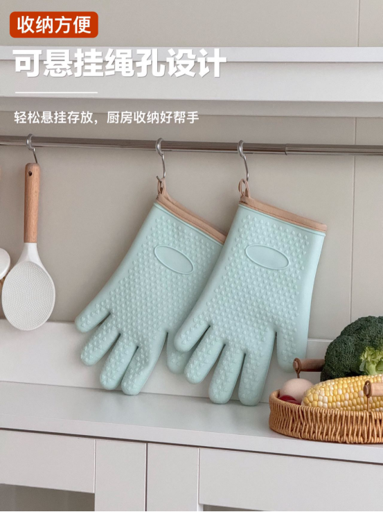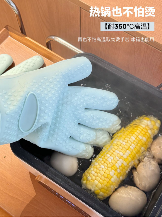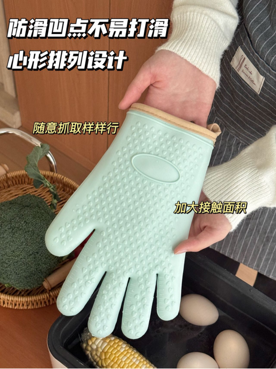 害怕油花四溅?担心蒸汽烫手? 这款隔热手套给你满满安全感! 优质硅胶材质耐高温达350℃ 加厚内里贴心守护 无论是蒸锅炖盅还是煎炒烤盘 都能从容应对,让你在厨房里游刃有余。