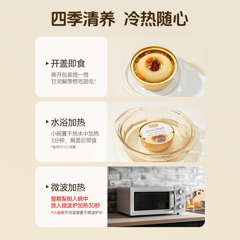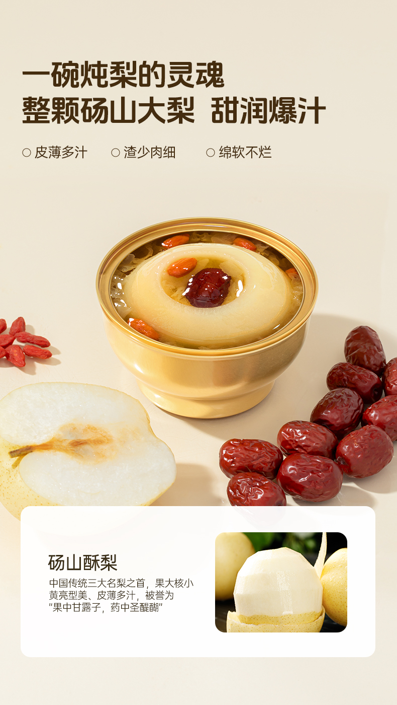 每碗炖梨采用铝制碗密封式包装,免去炖煮的麻烦,开盖就能吃