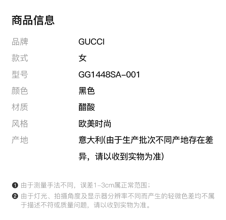GUCCI 黑色女士方形太阳镜
